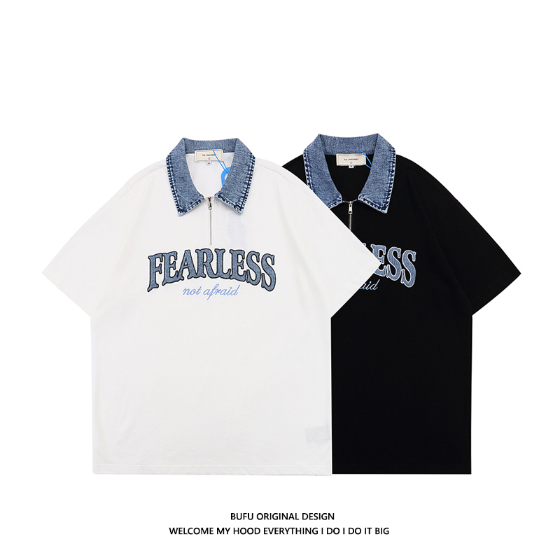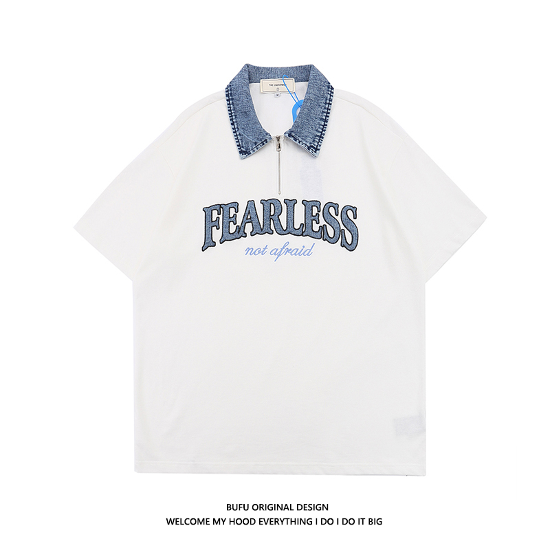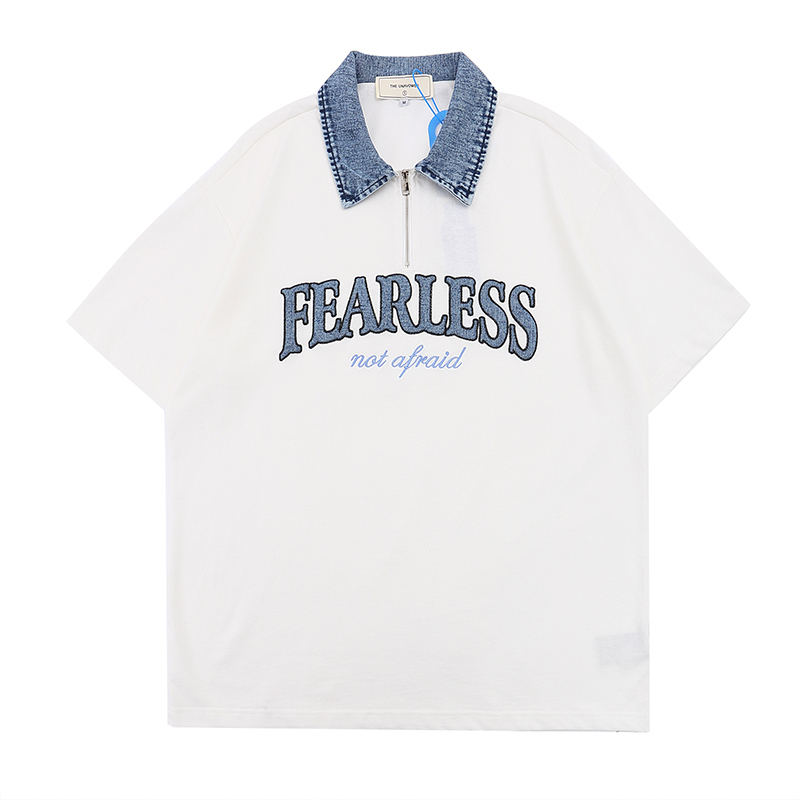 億萬少年美式復古刺繡POLO衫短袖男寬鬆情侶小眾設計感學院風上衣