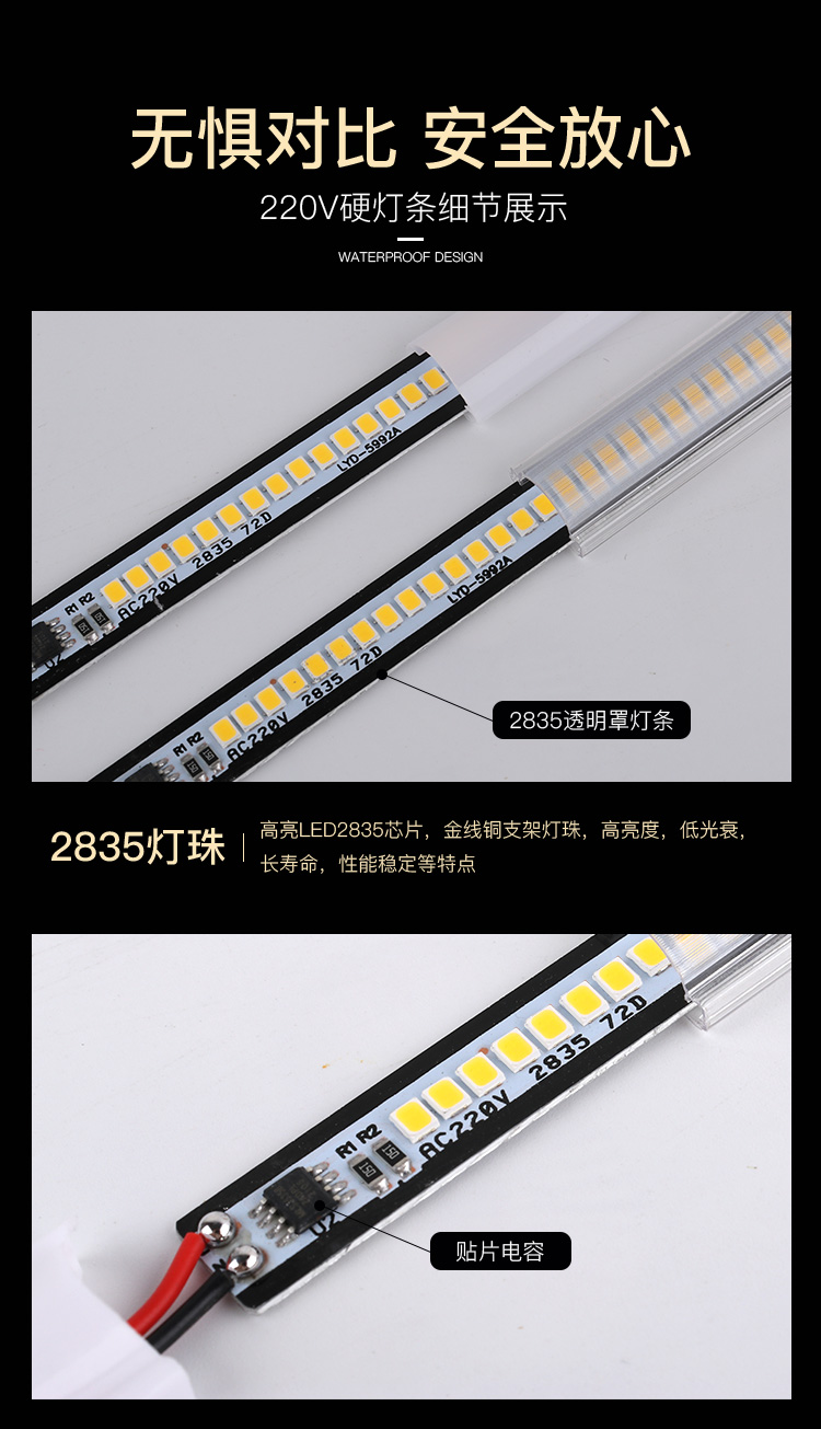 K6WY批发220V硬灯条柜台货架衣柜家用展示柜商超商场串联led照明