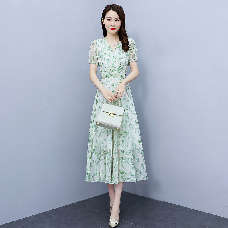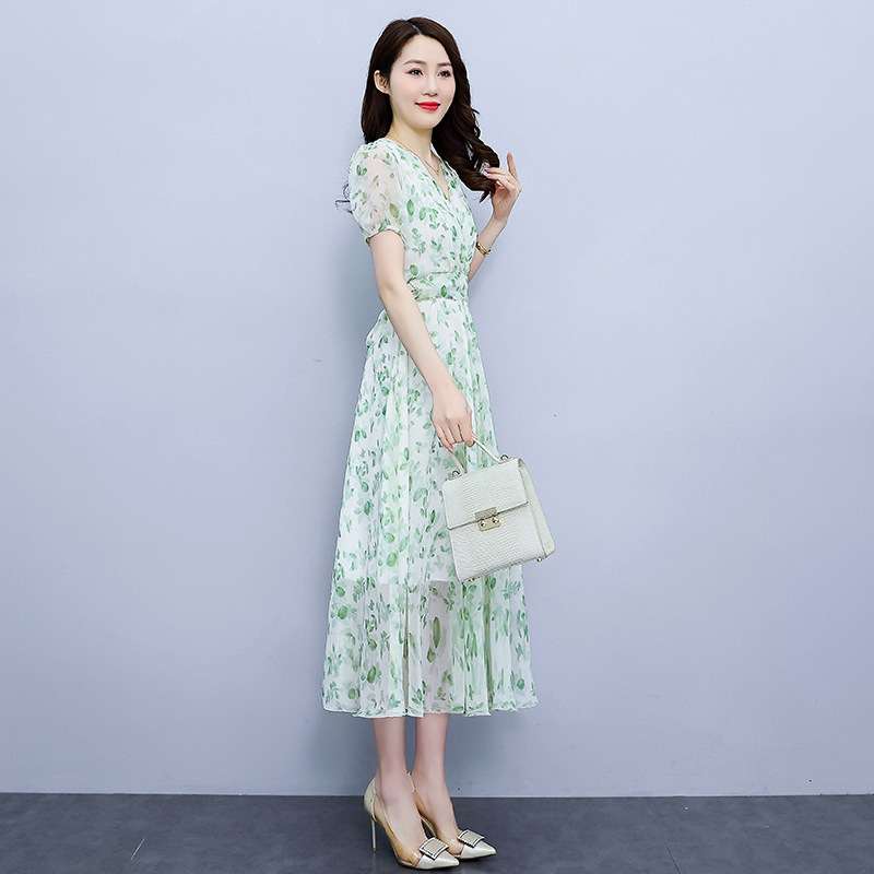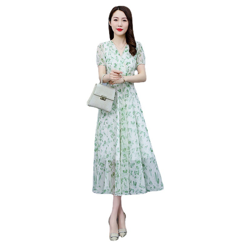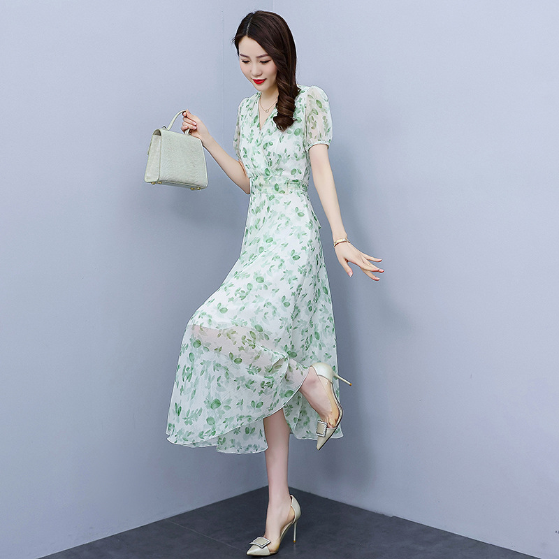 设计感碎花连衣裙女夏2023新款气质收腰修身显瘦法式雪纺仙女裙子