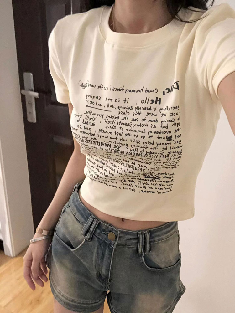 美式y2k復古正肩短袖t恤女夏季純棉修身顯瘦甜酷辣妹露臍短款上衣