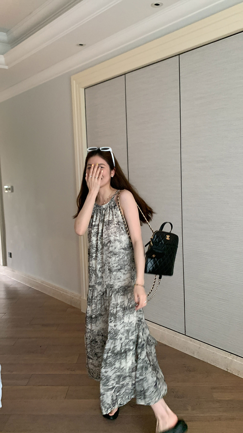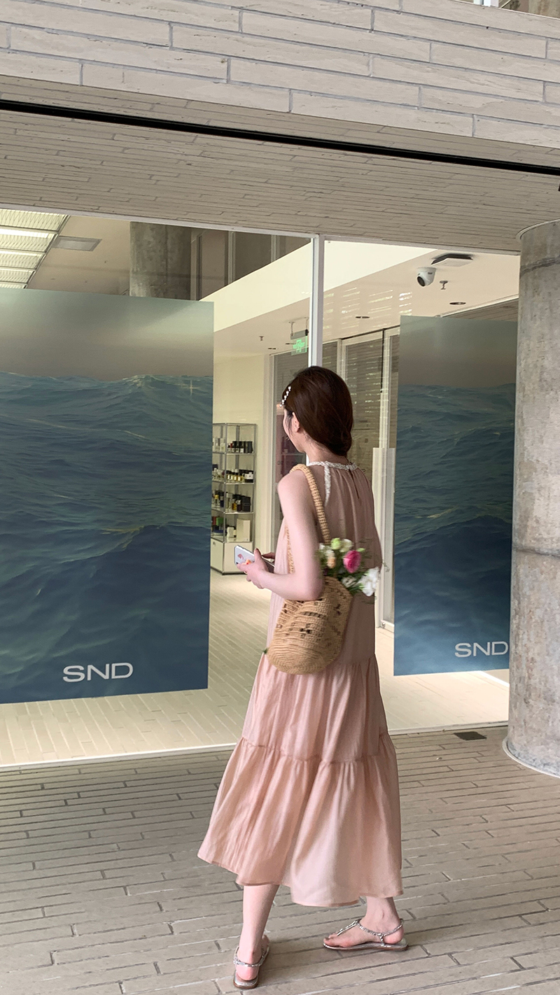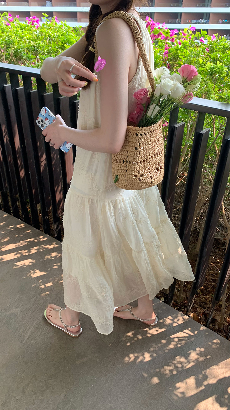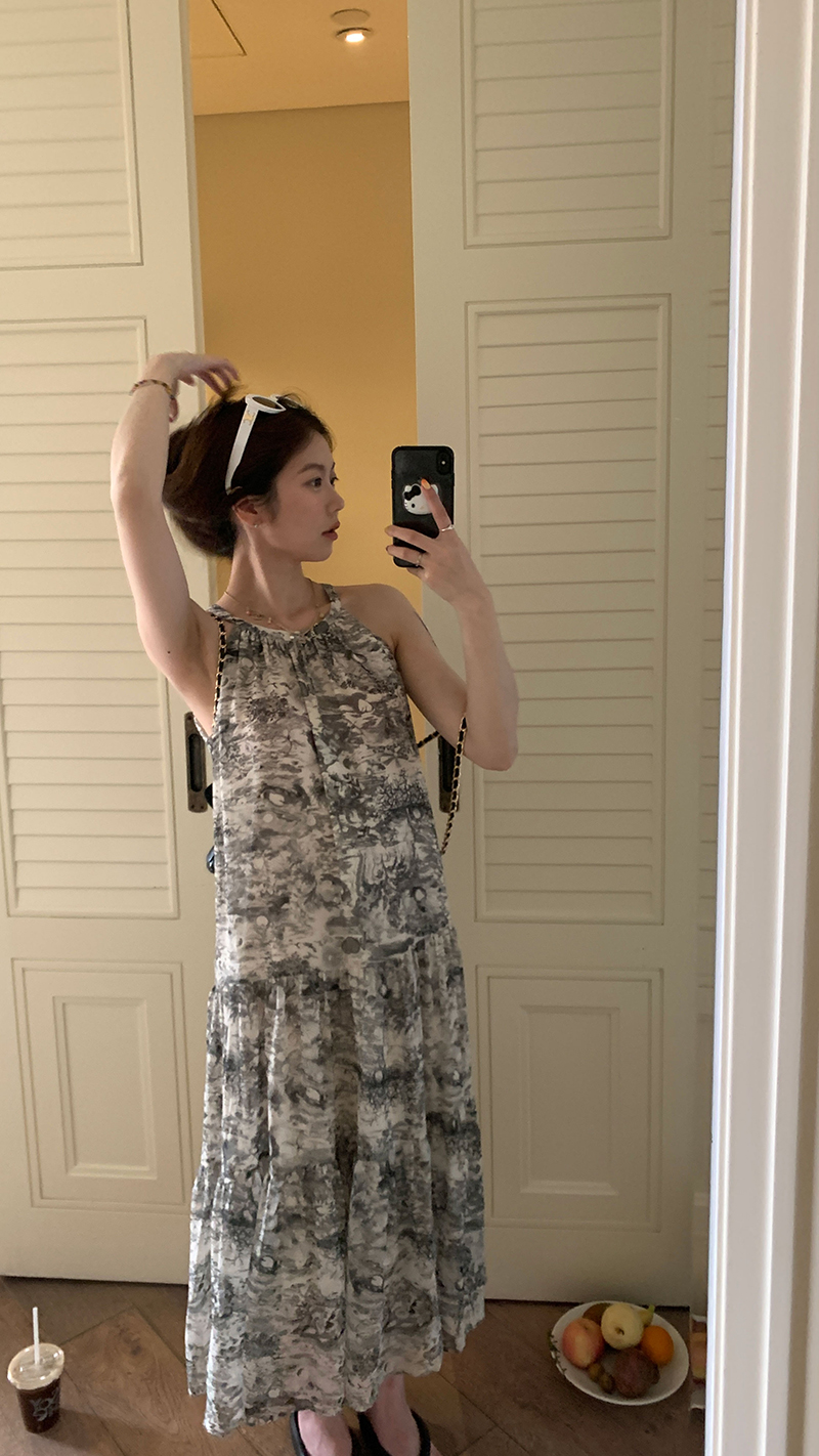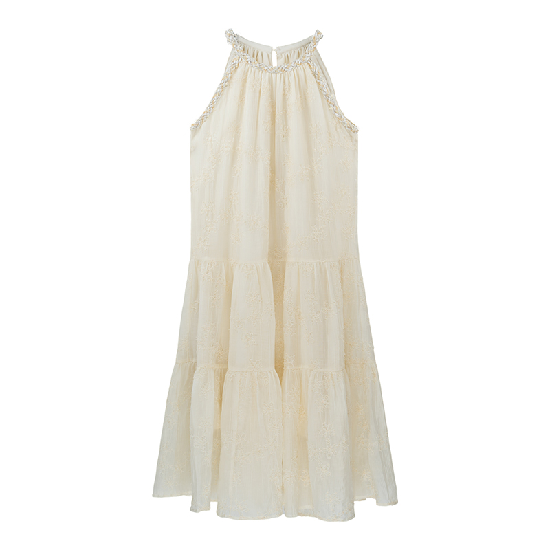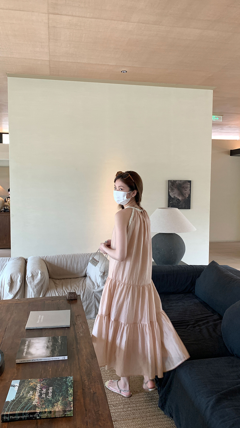 【現貨】im向帕尼達下午茶慵懶風掛頸削肩洋裝度假風織帶吊帶裙