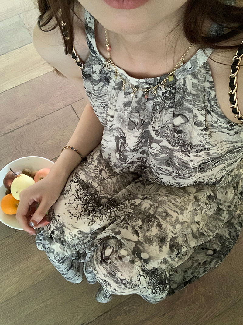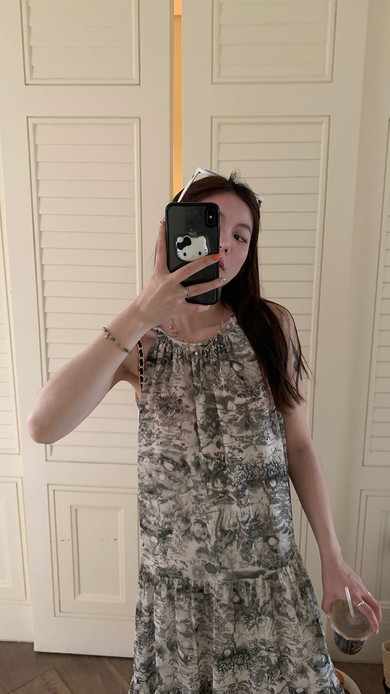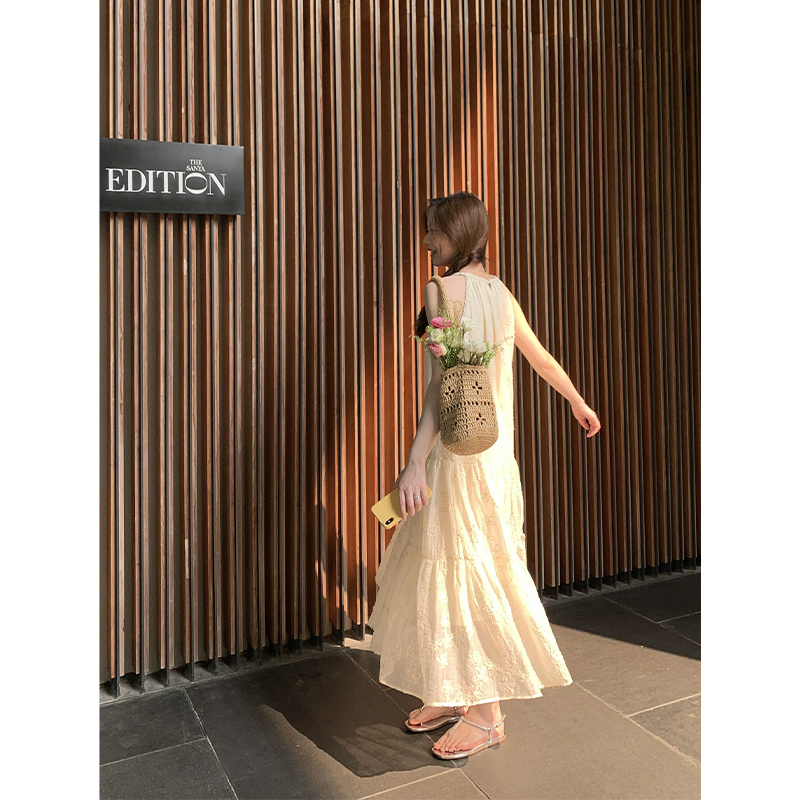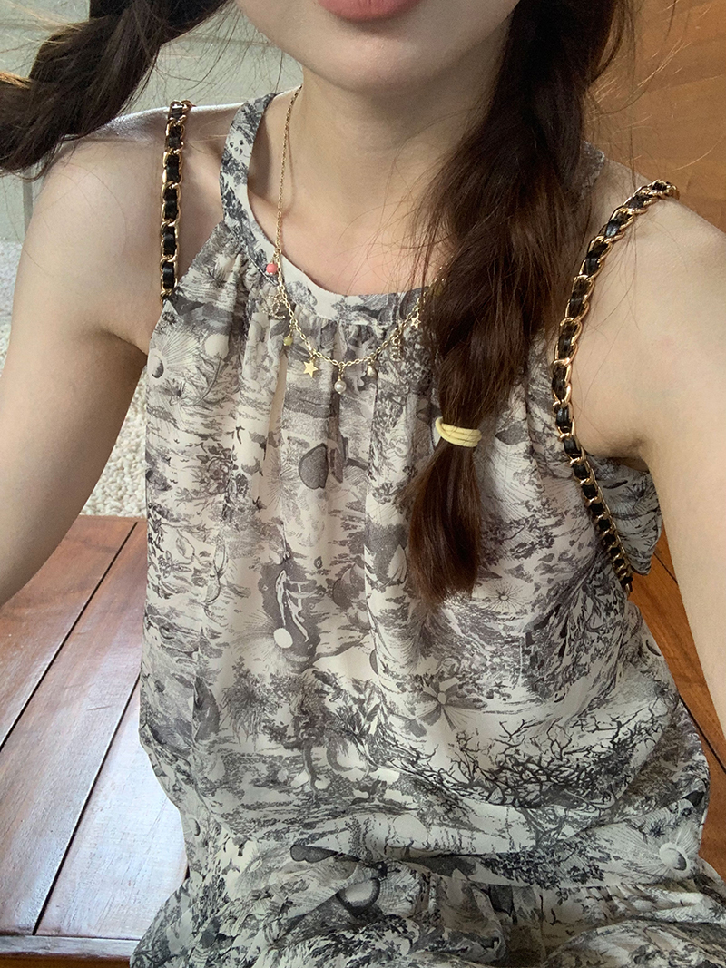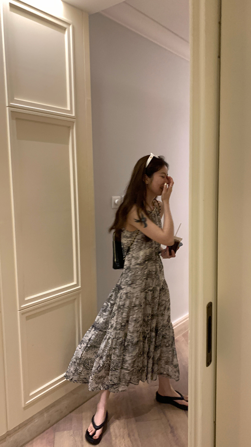 【現貨】im向帕尼達下午茶慵懶風掛頸削肩洋裝度假風織帶吊帶裙