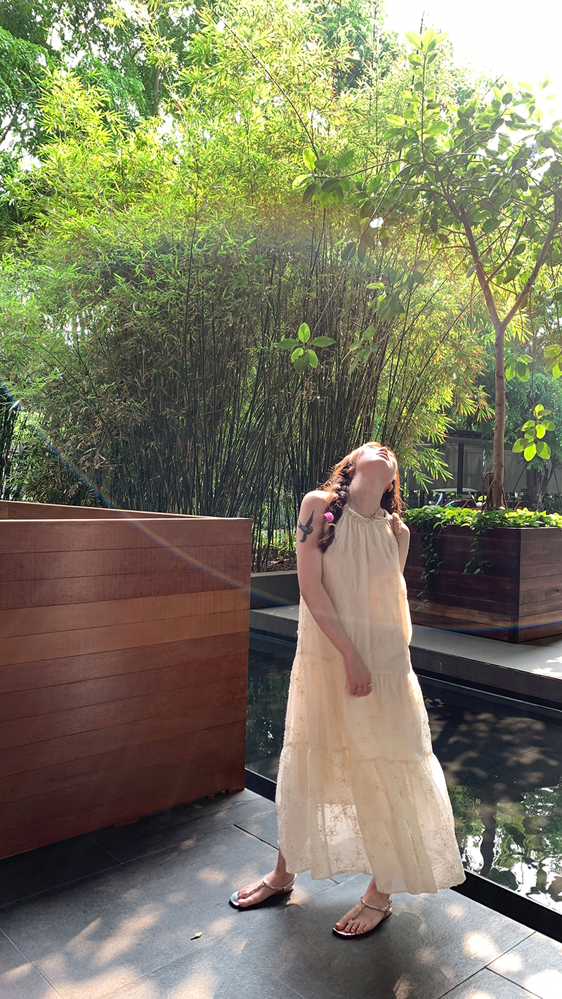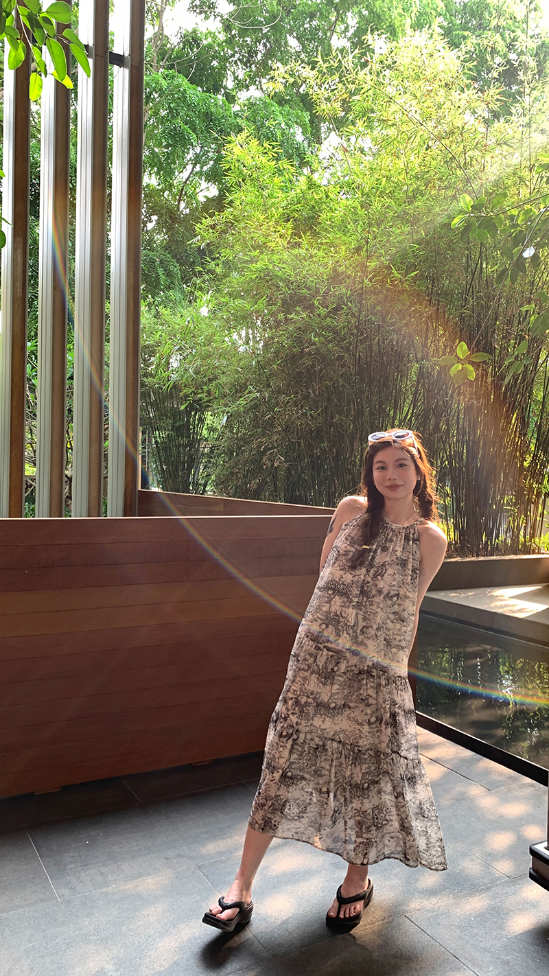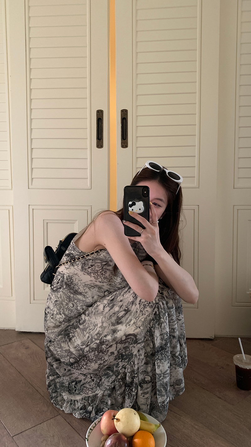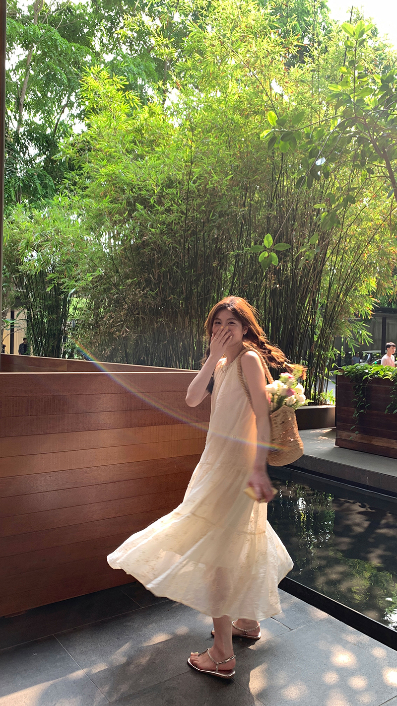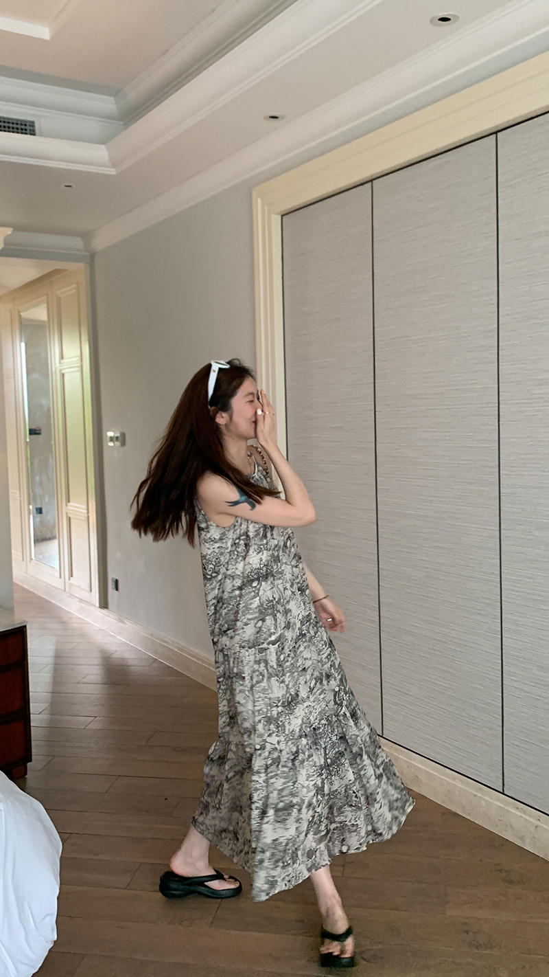 【現貨】im向帕尼達下午茶慵懶風掛頸削肩洋裝度假風織帶吊帶裙
