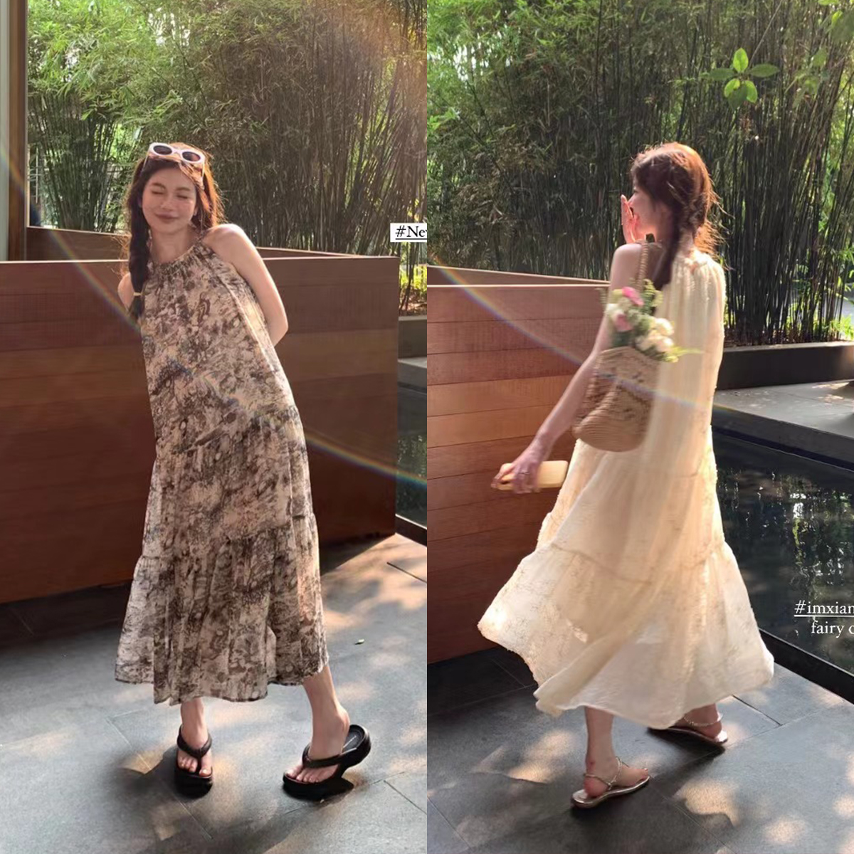 拿捏今年春夏出游的look怎么能少的了挂脖连衣裙~