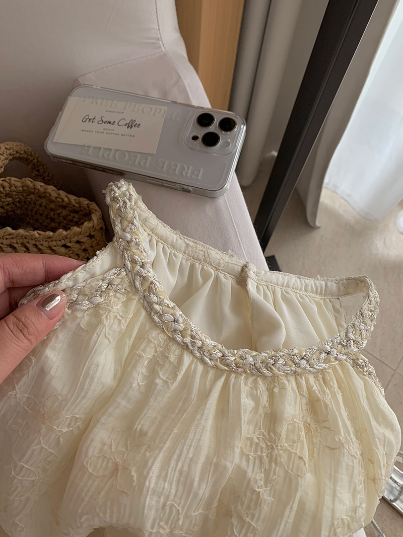 奶酪刺绣花和醺光粉搭配编织感的小香织带设计