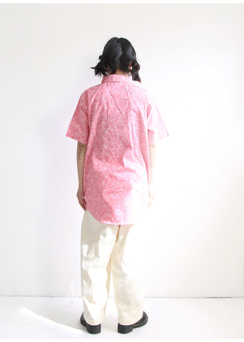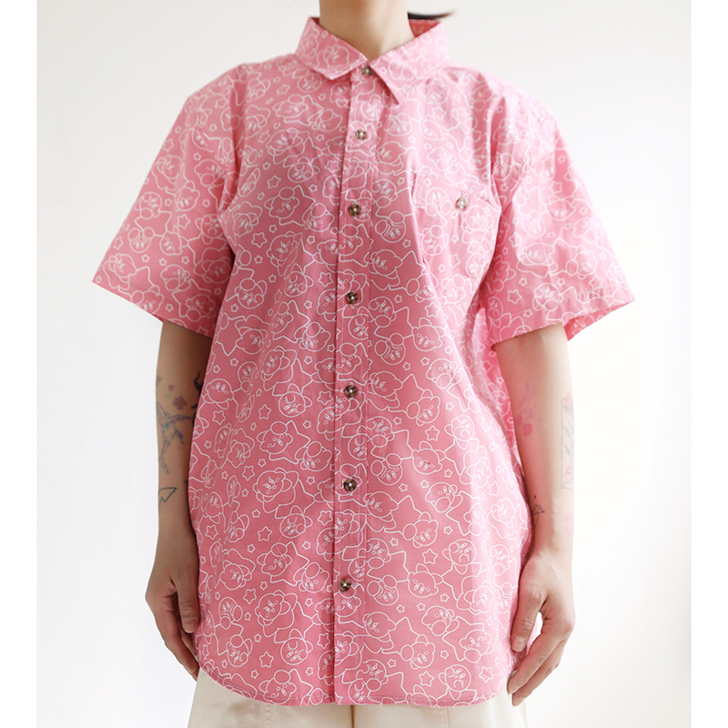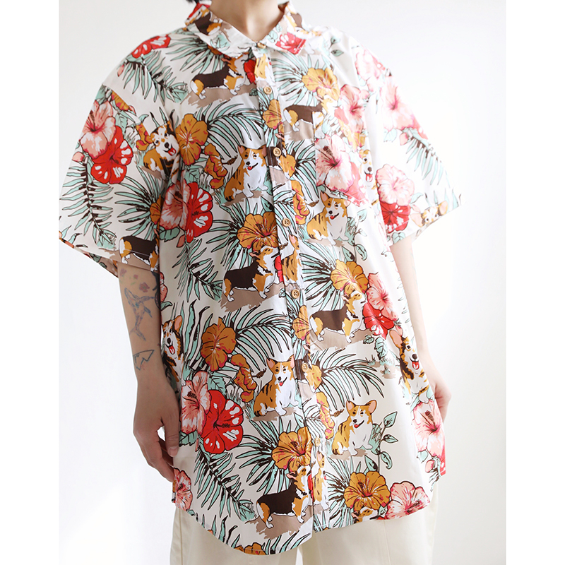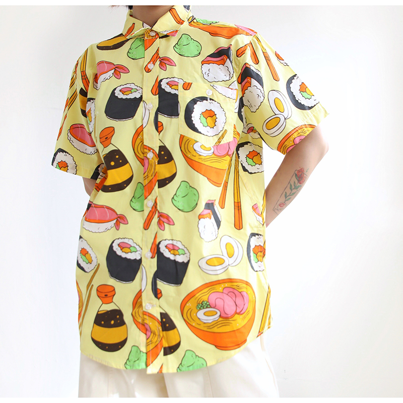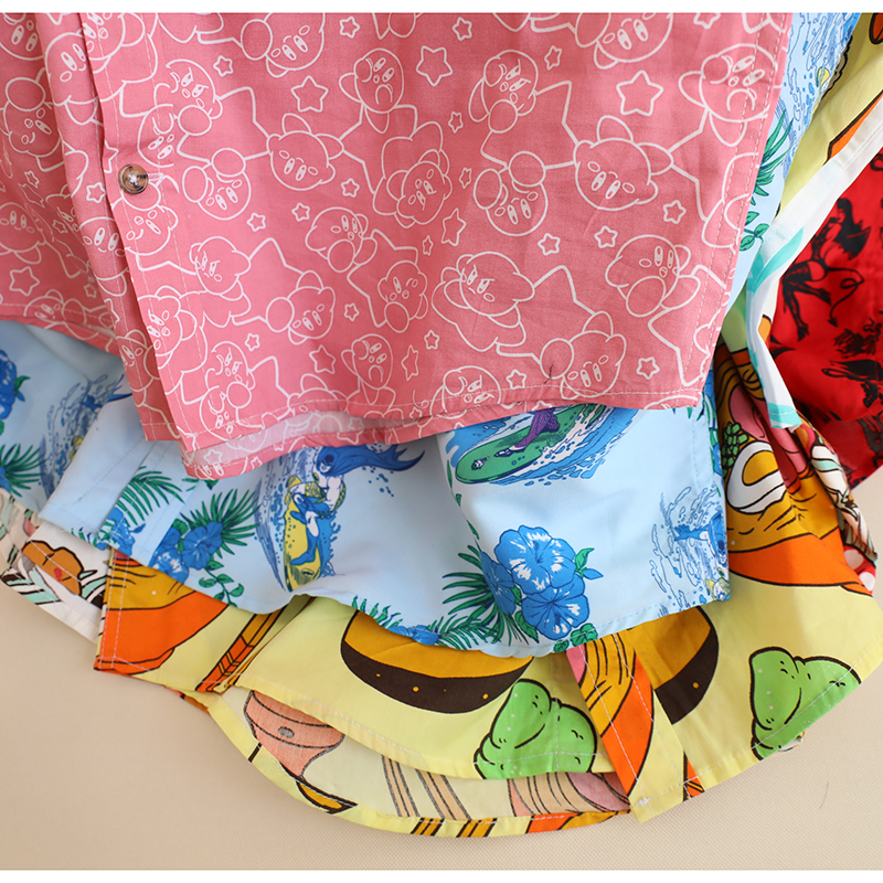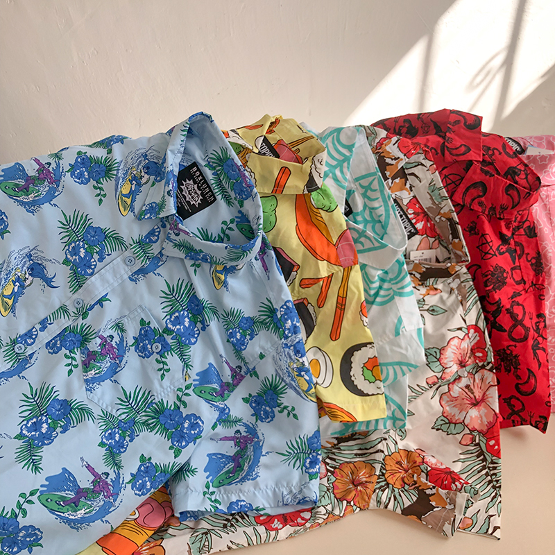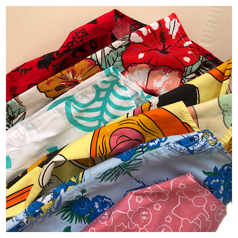 三叔 2022夏季新花襯衫外單可愛卡通印花寬鬆短袖男女上衣