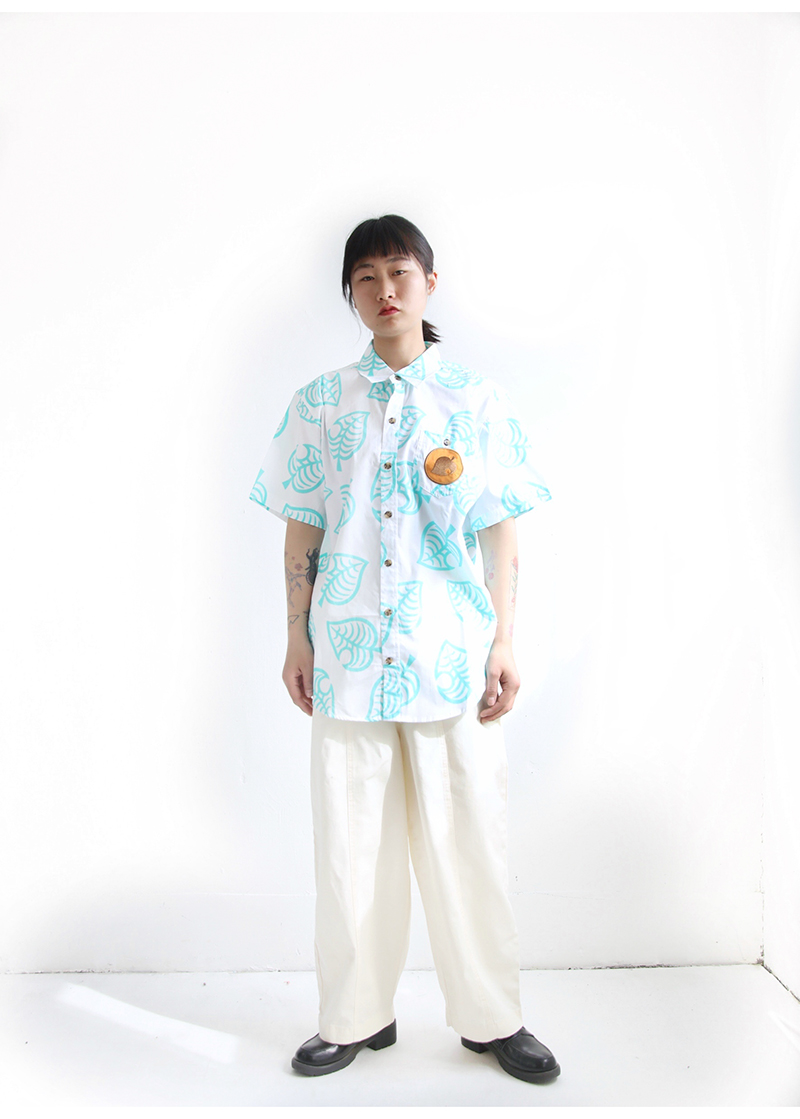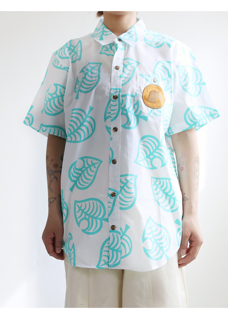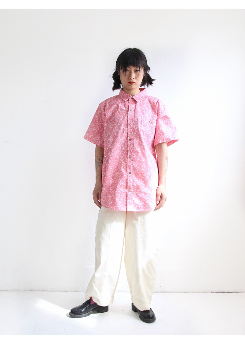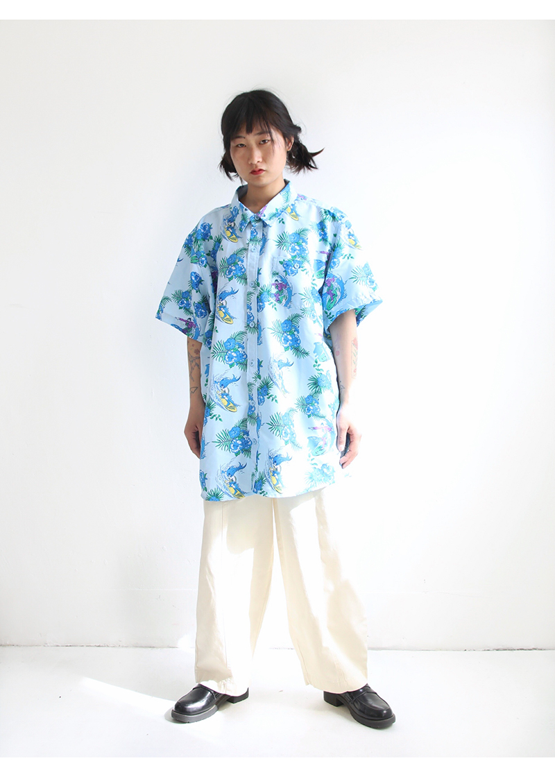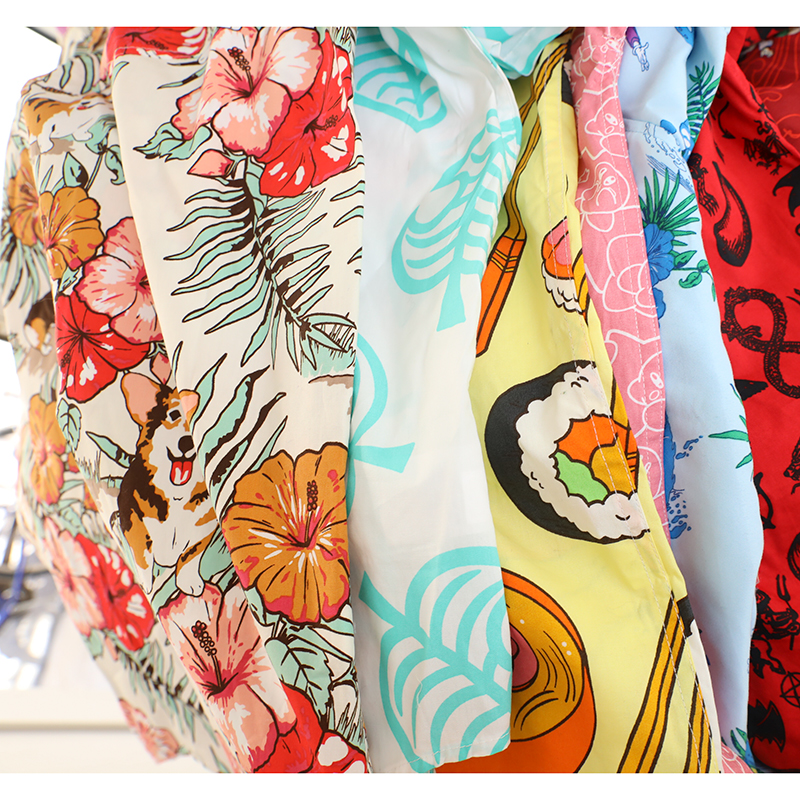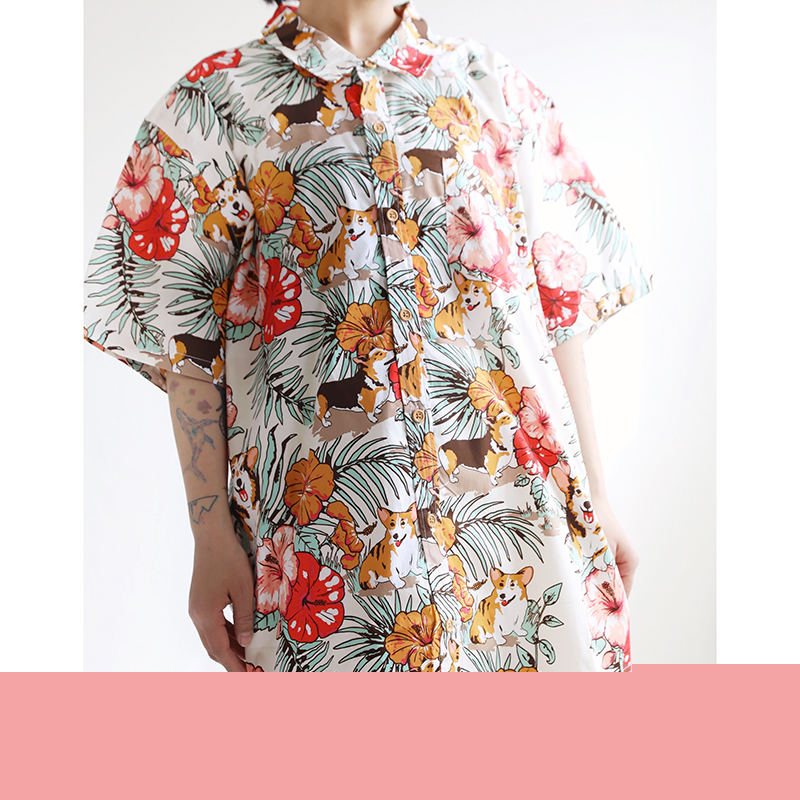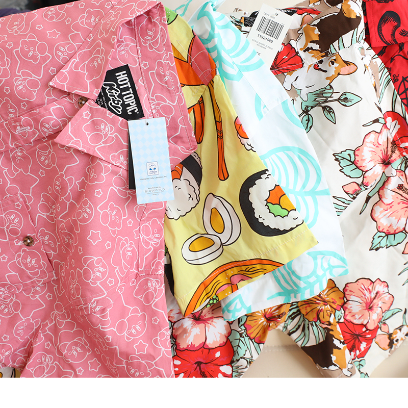 三叔 2022夏季新花襯衫外單可愛卡通印花寬鬆短袖男女上衣