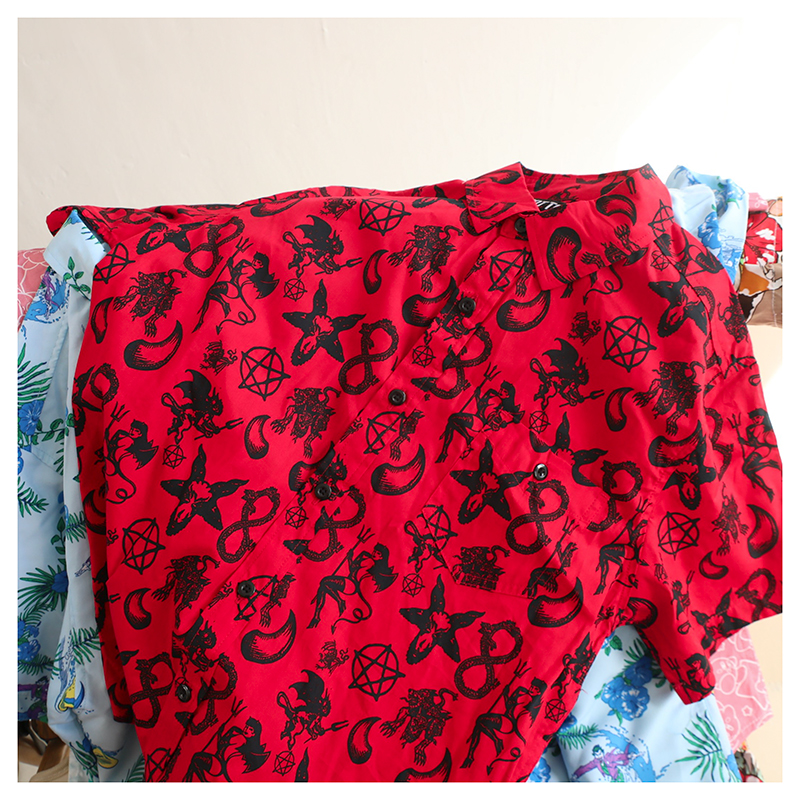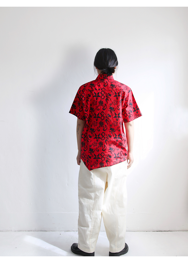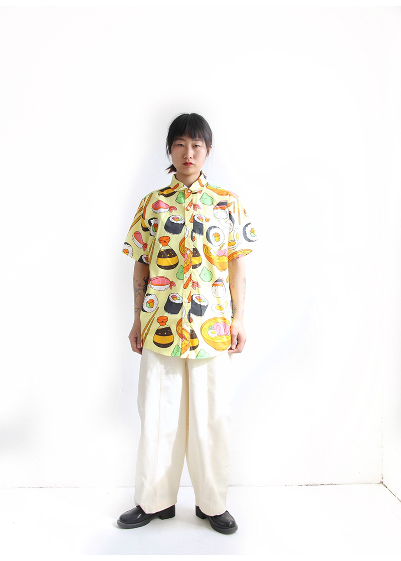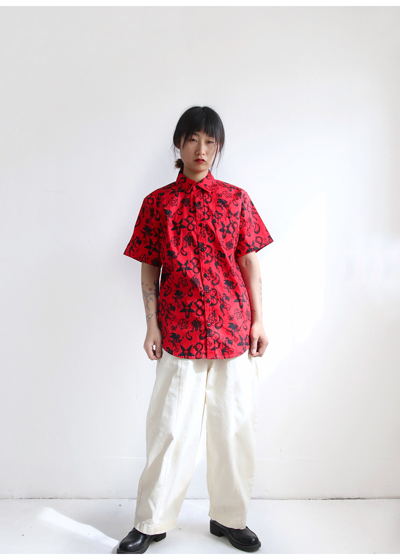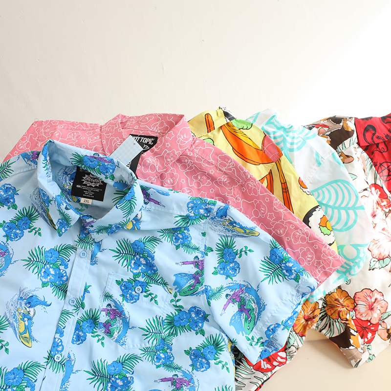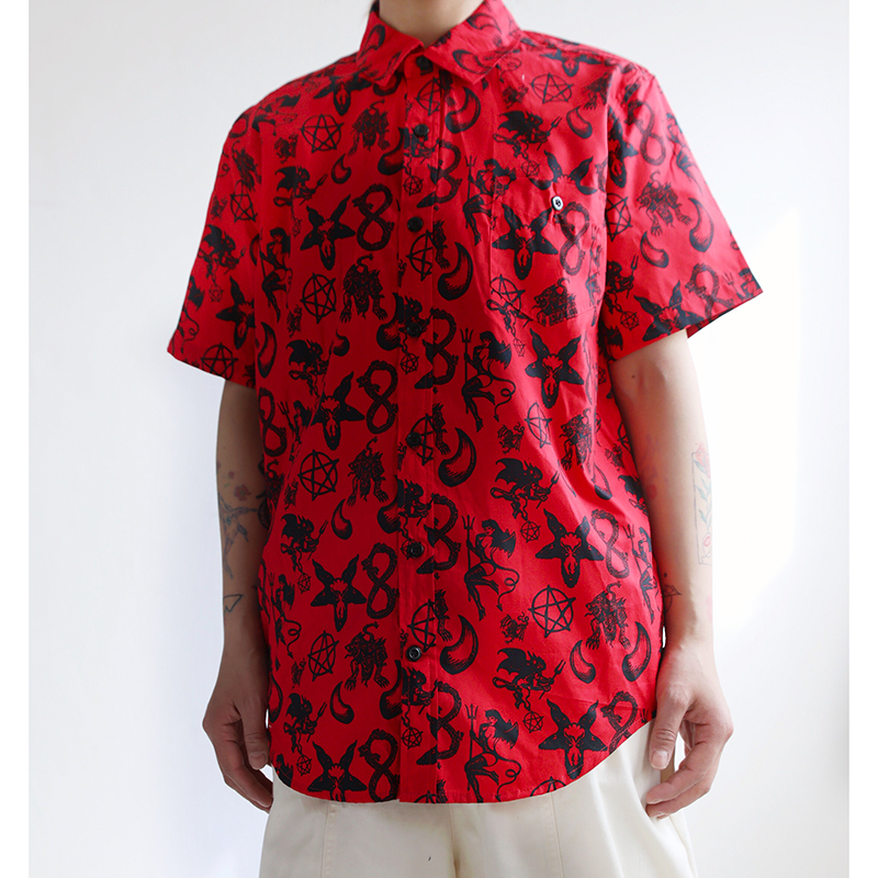 三叔 2022夏季新花襯衫外單可愛卡通印花寬鬆短袖男女上衣