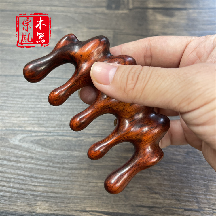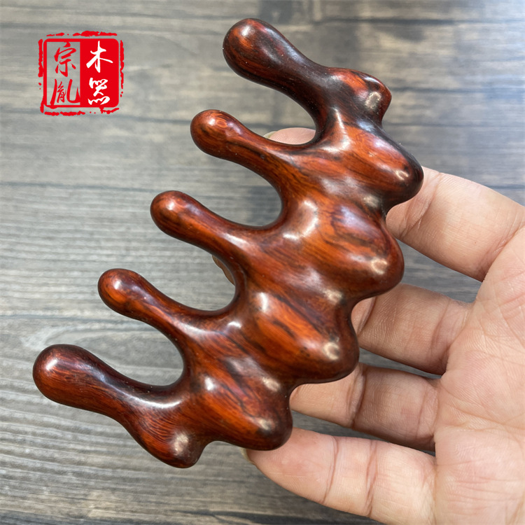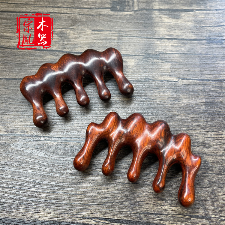 光面头部经络拢背宽五齿按摩梳子 犀牛角紫檀头疗刮痧檀木保健梳