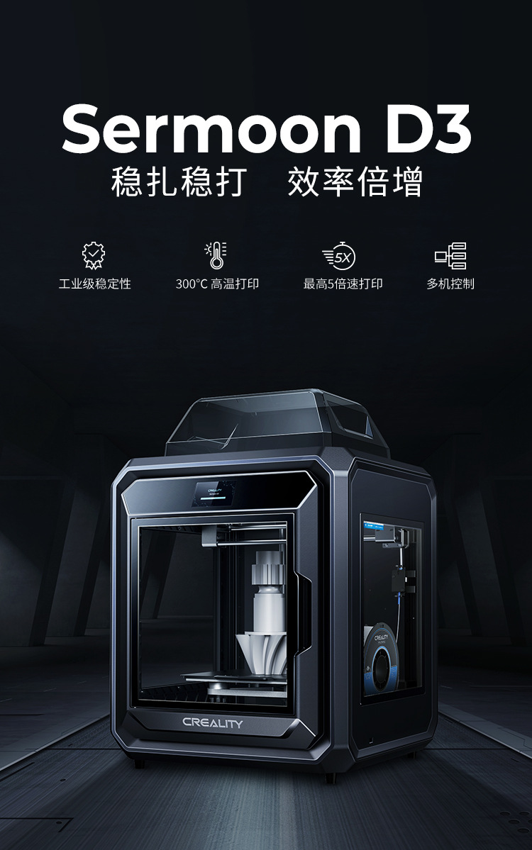 创想三维新品sermoon D3高精度智能高温倍速工业设计专用3D打印机