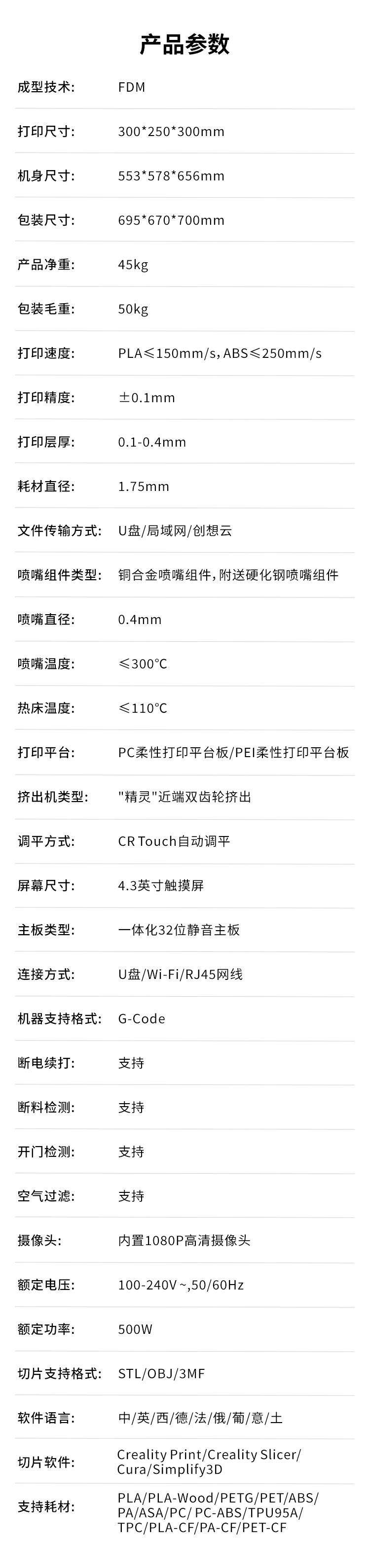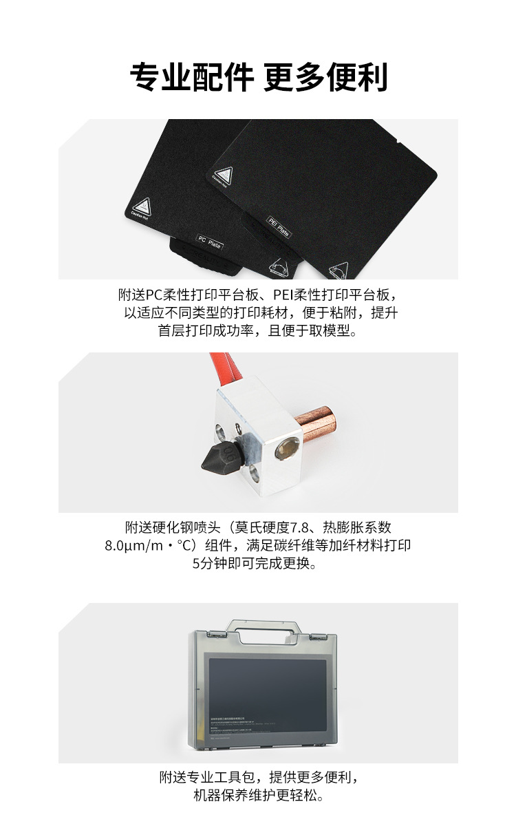 适用原材料 PLA/ABS/PETG/ASA/TPU/PC/PLA-CF