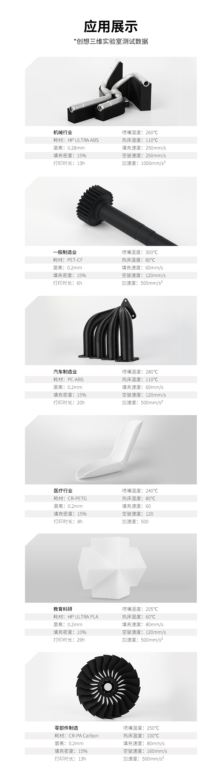 适用场景 教育科研 结构设计、夹治具、艺术创作 手办模型制作 建筑 医疗