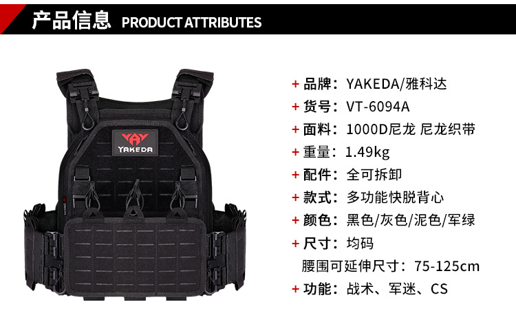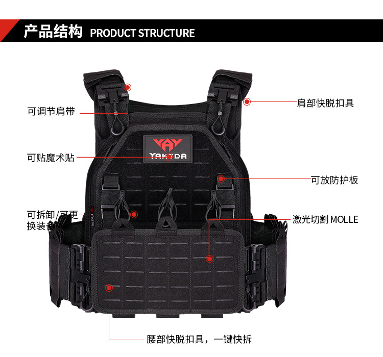 YAKEDA 6094A快拆戰術背心高配版彈力側圍激光MOLLE原品迷彩現貨