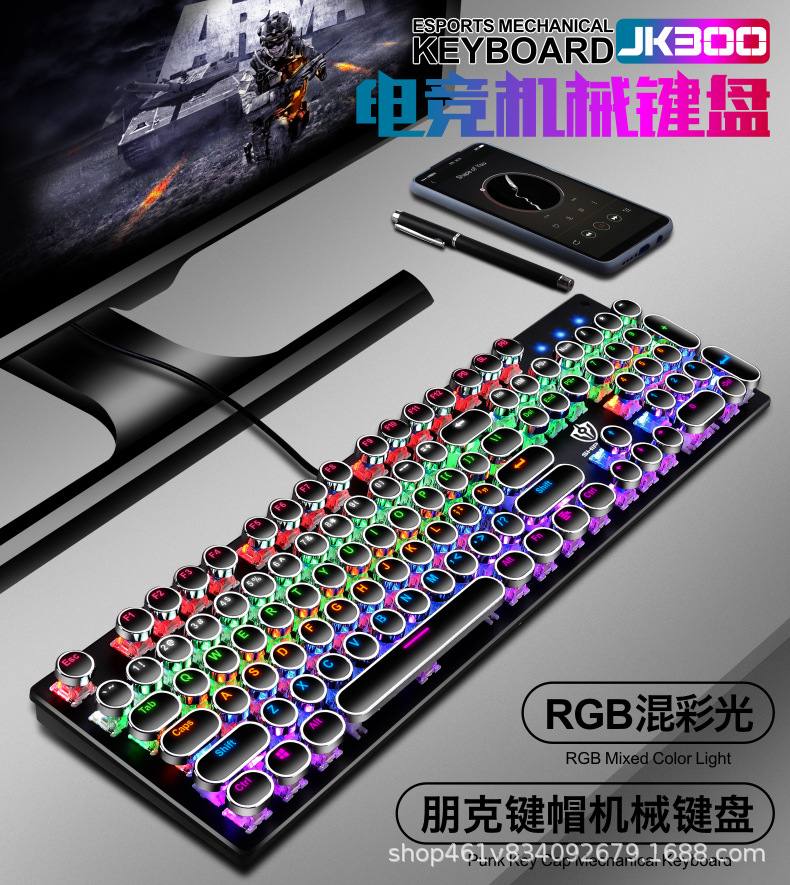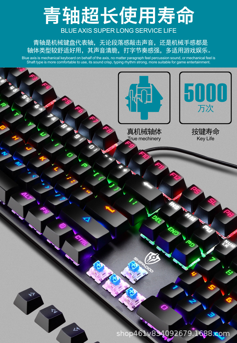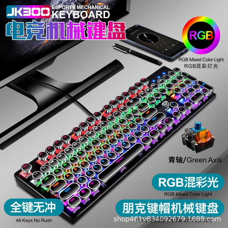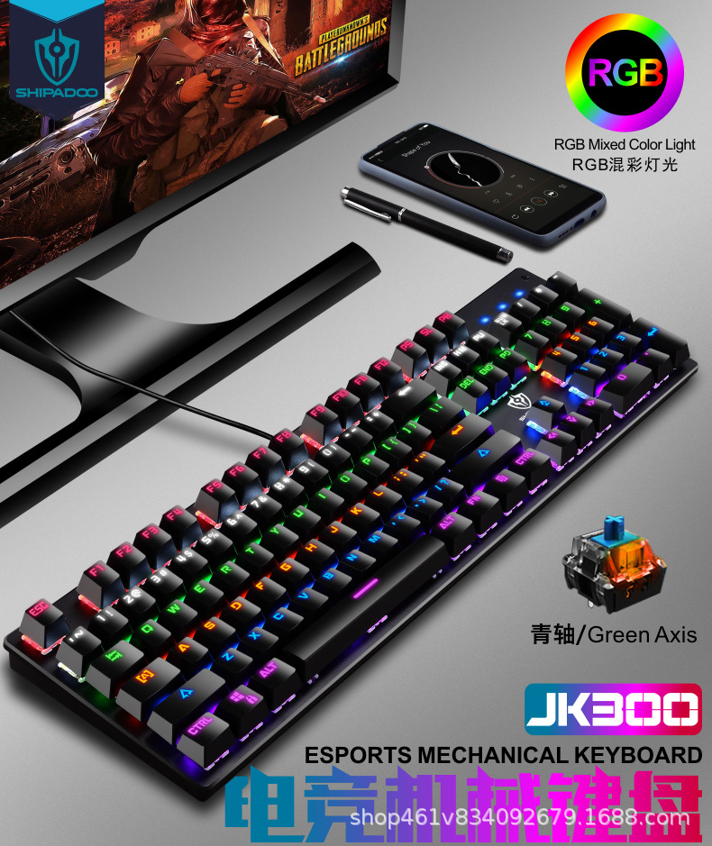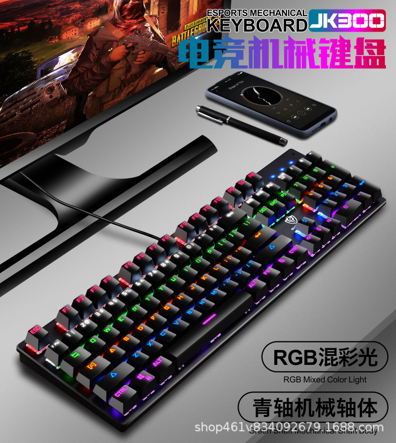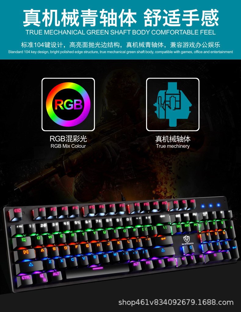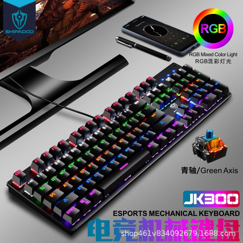 有线机械键盘 电竞游戏RGB樱桃真机械轴104键有线青轴键盘