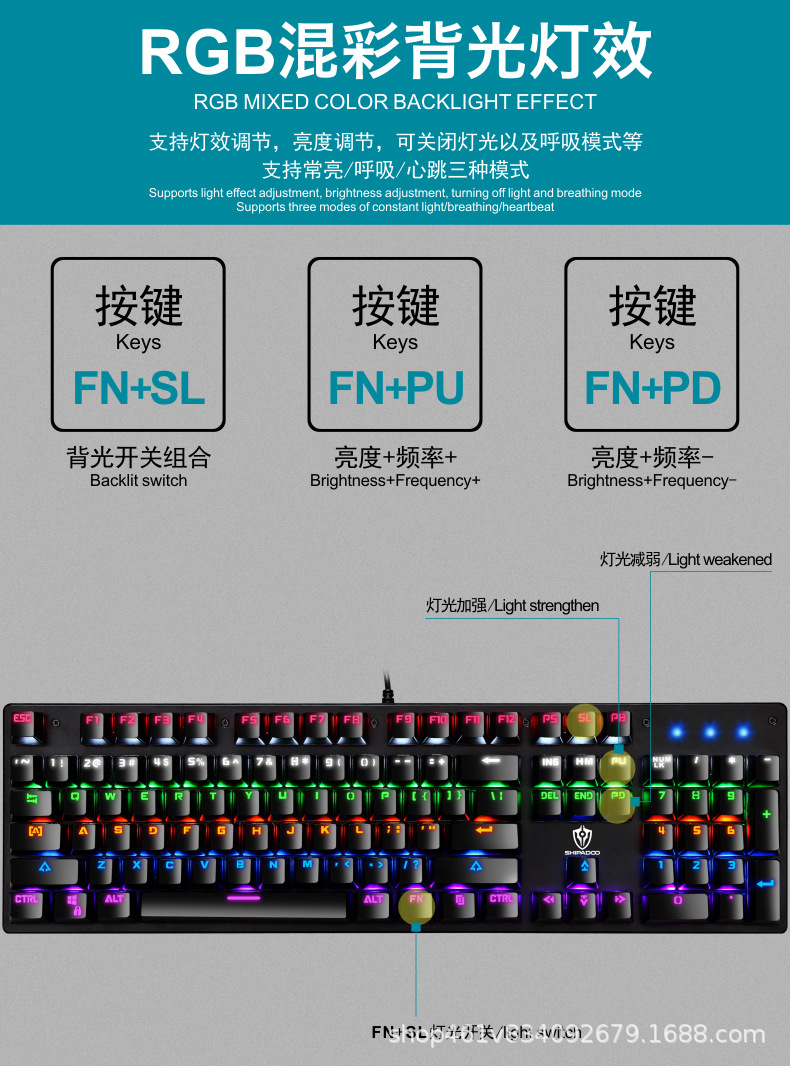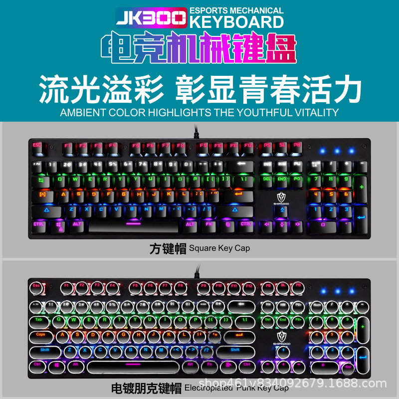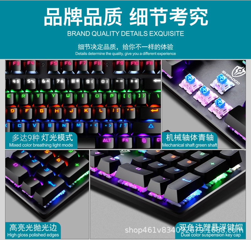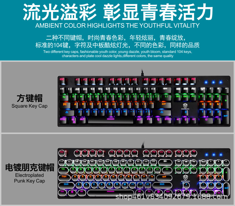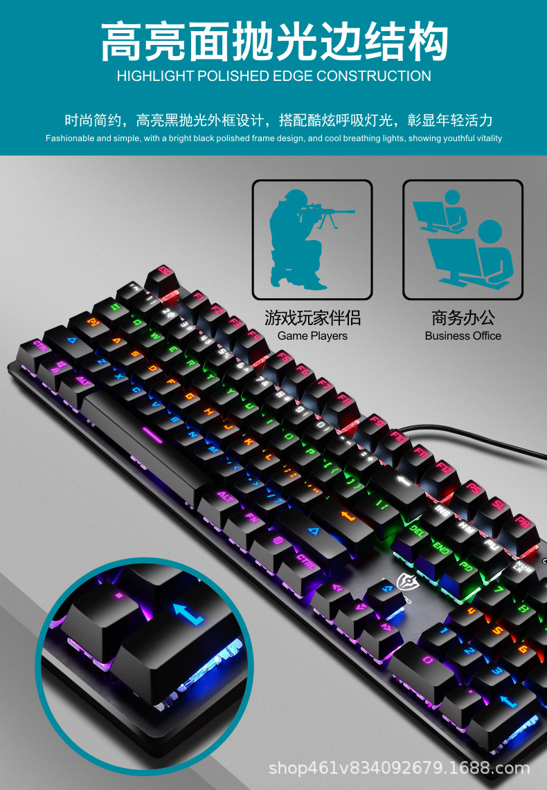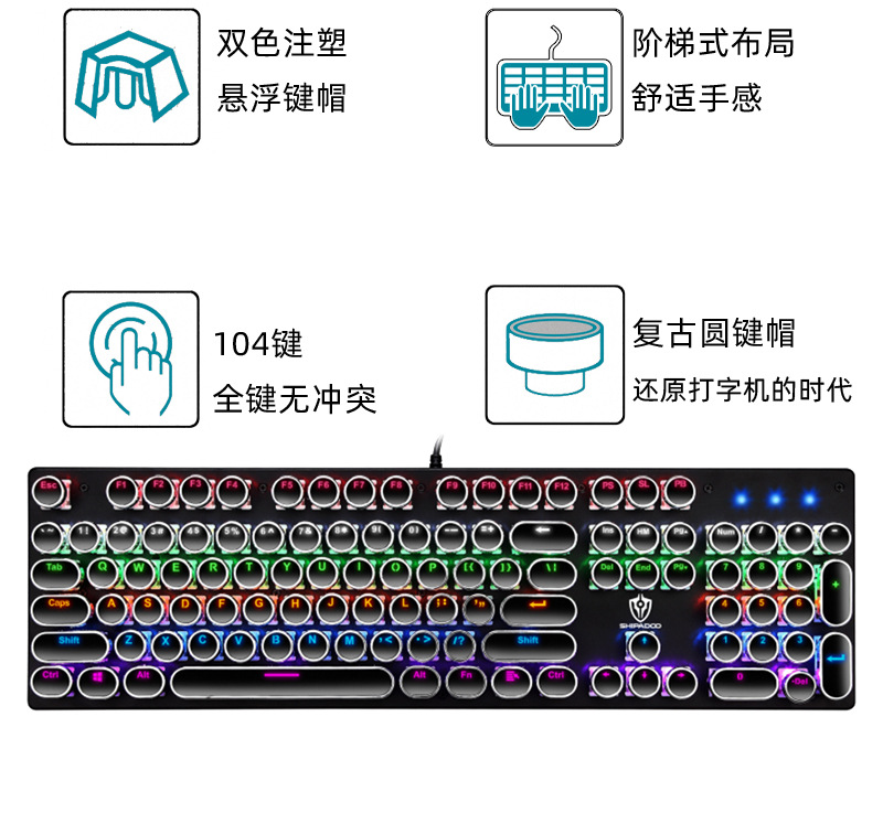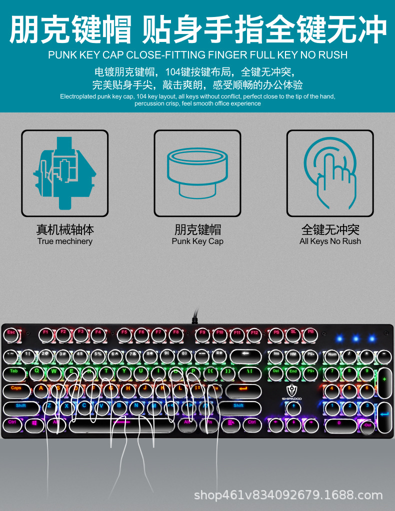 有线机械键盘 电竞游戏RGB樱桃真机械轴104键有线青轴键盘