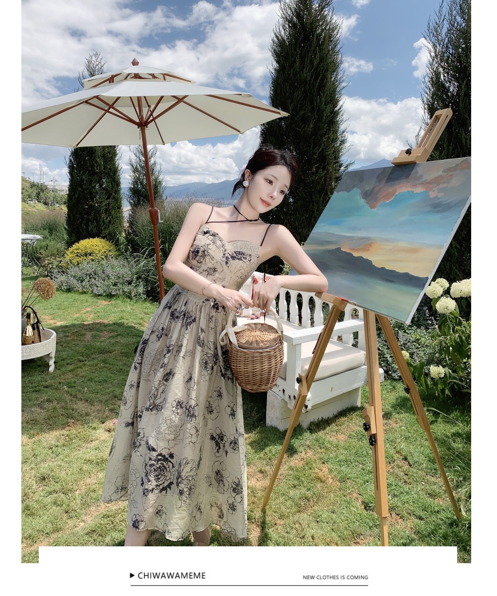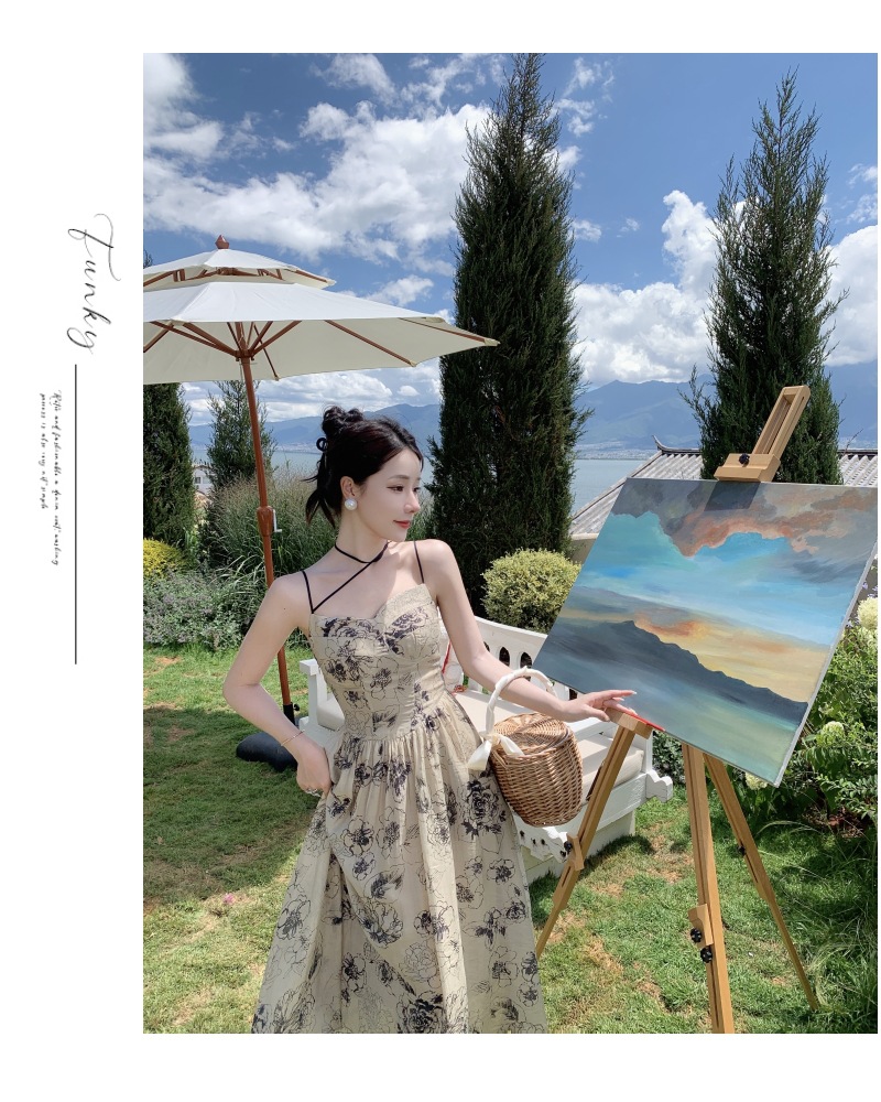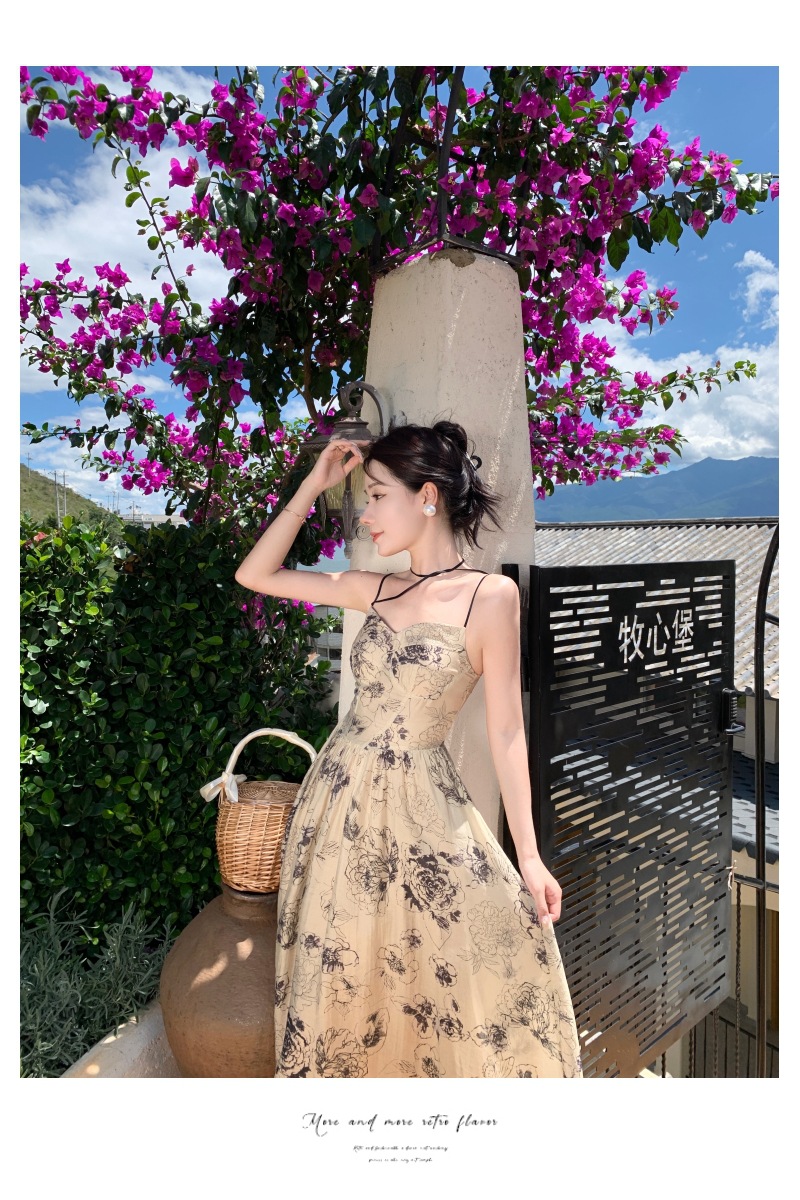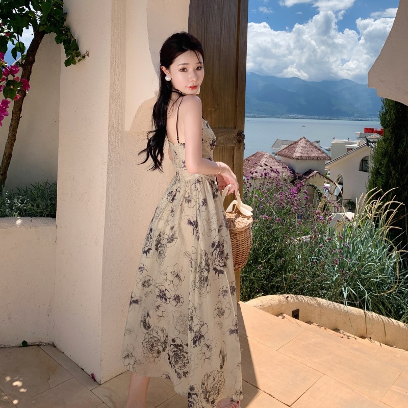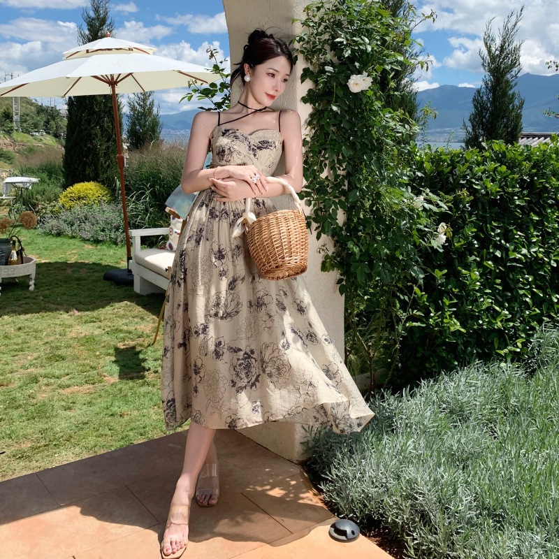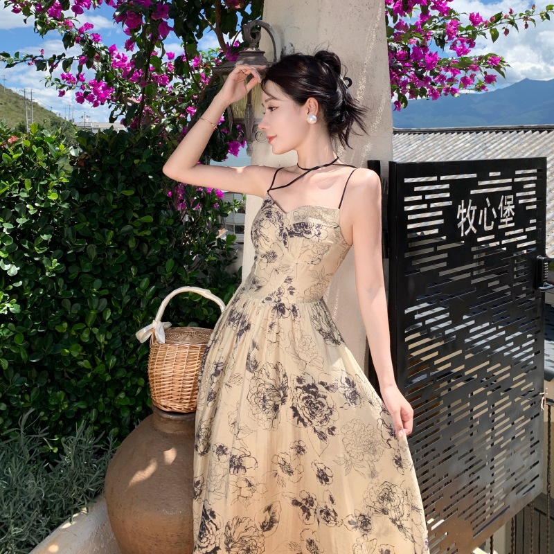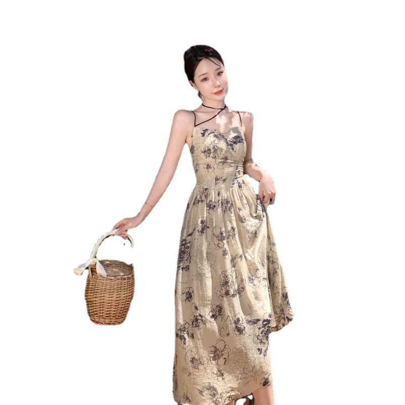 法式复古碎花吊带连衣裙夏季女装新款度假风大摆裙子高级感长裙子