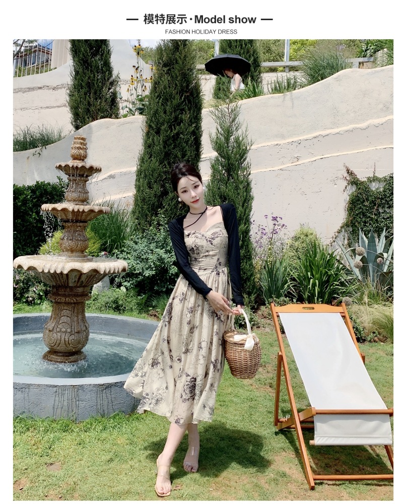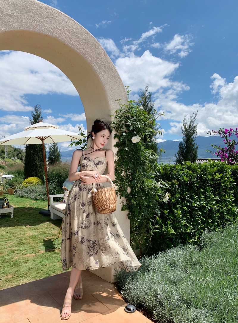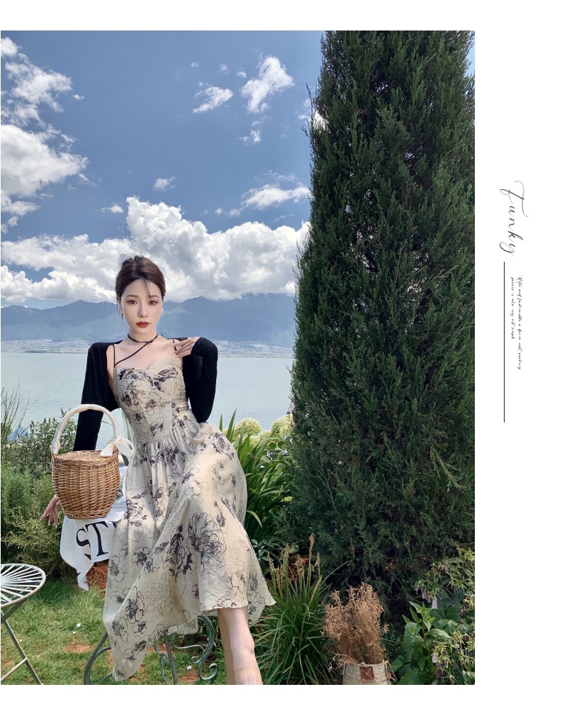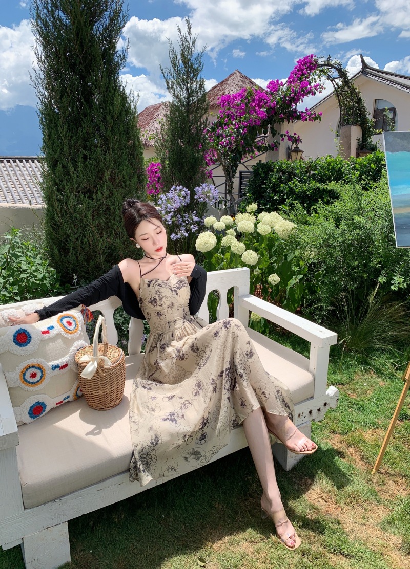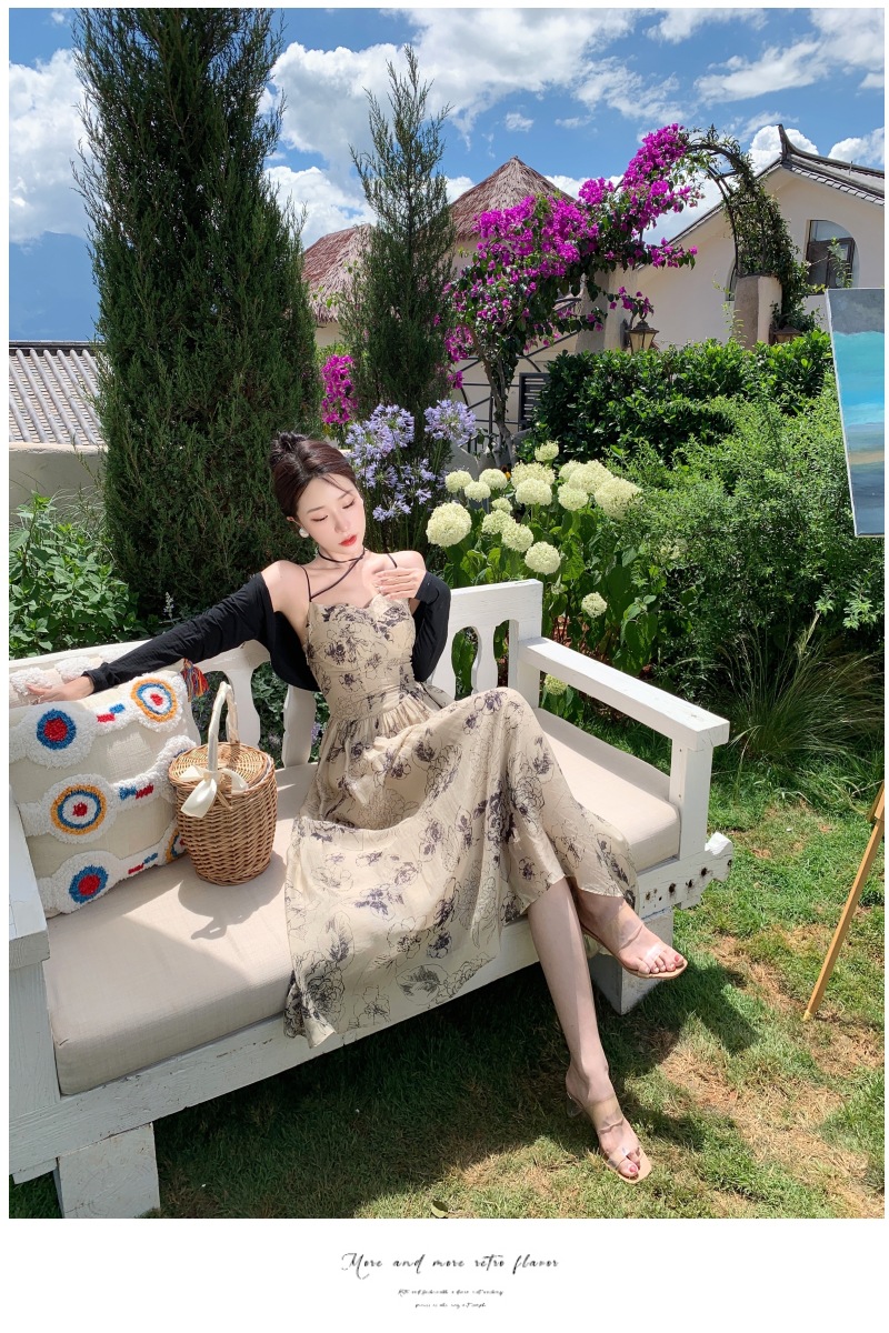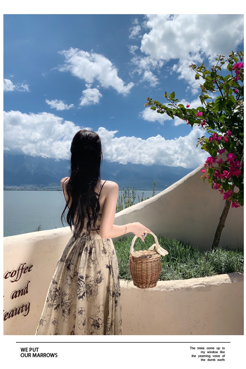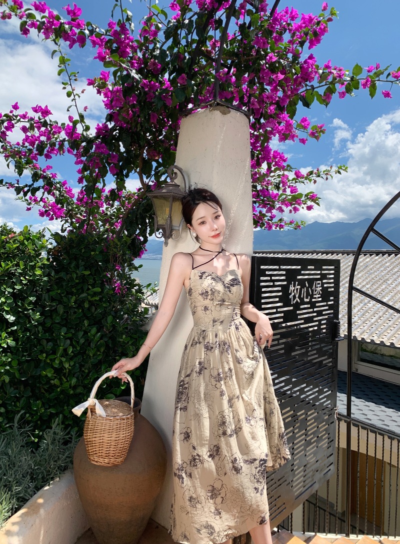 法式复古碎花吊带连衣裙夏季女装新款度假风大摆裙子高级感长裙子
