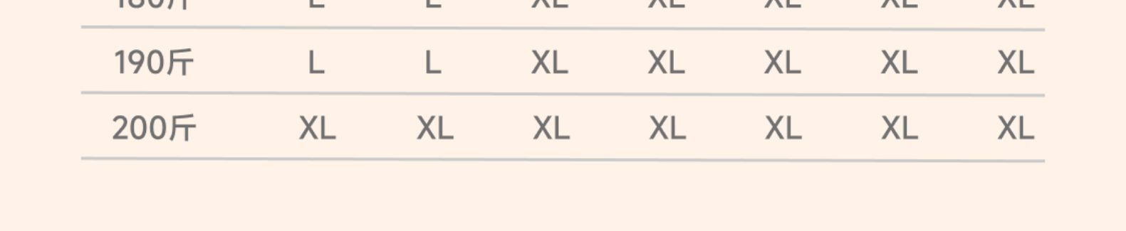 尺碼 XS S M L XL