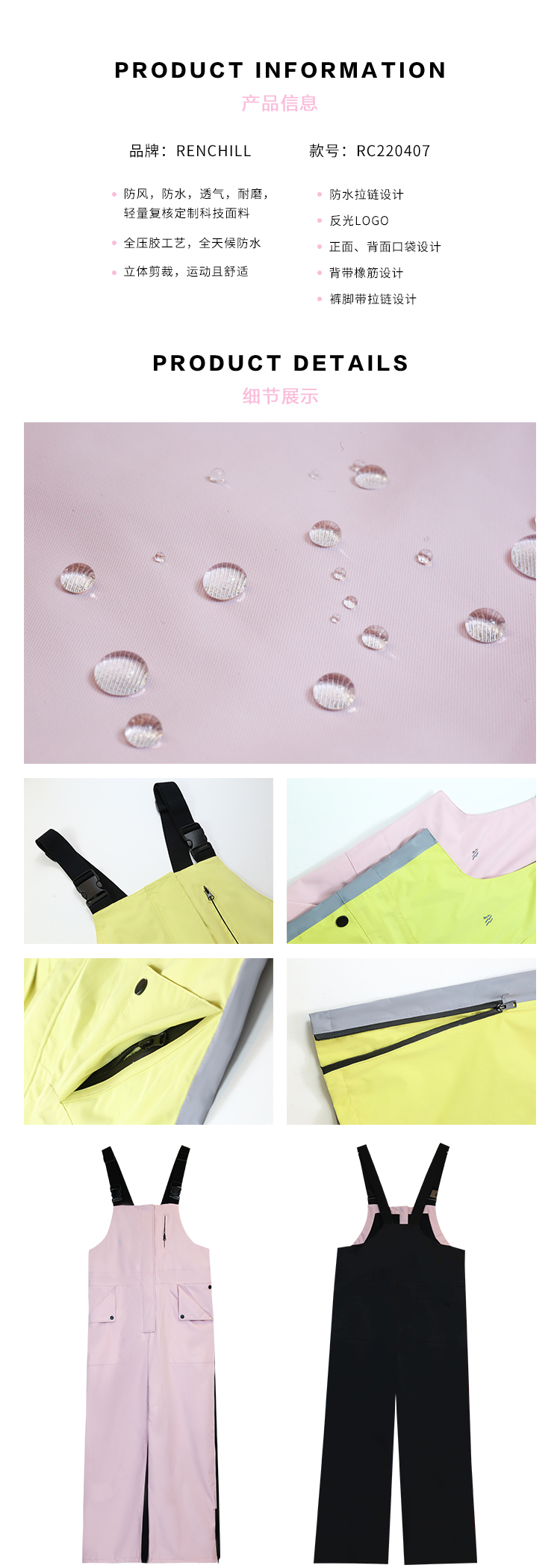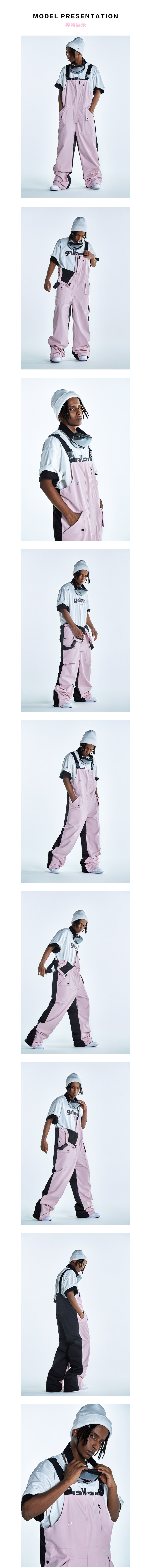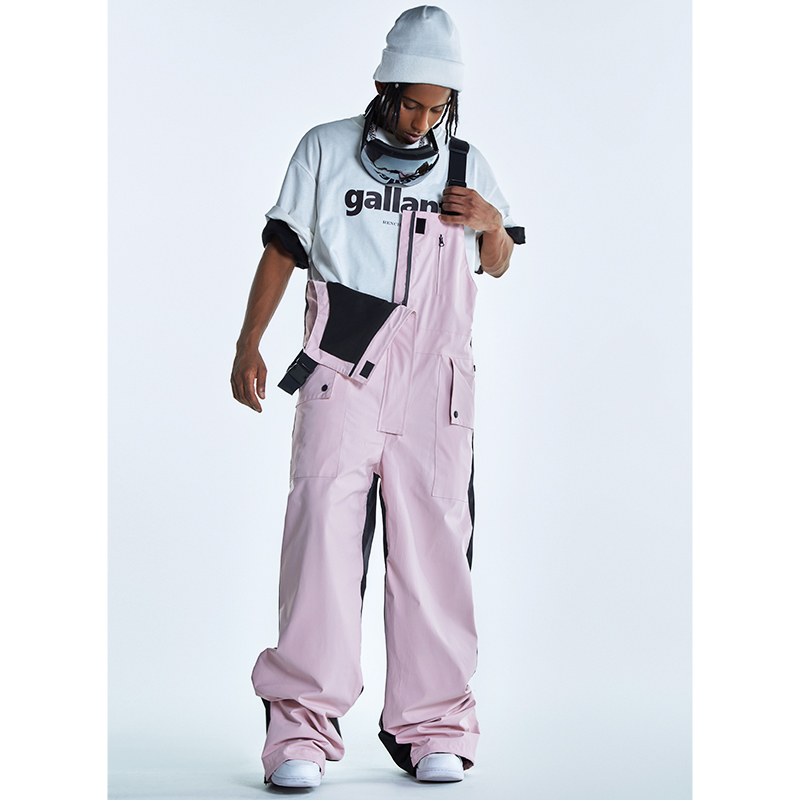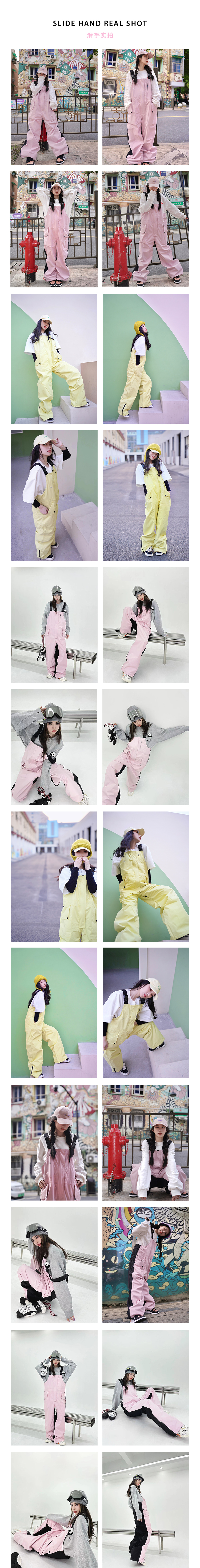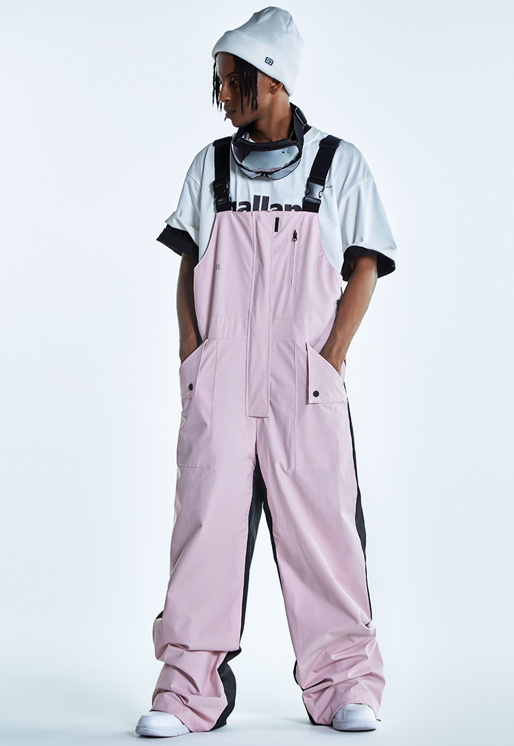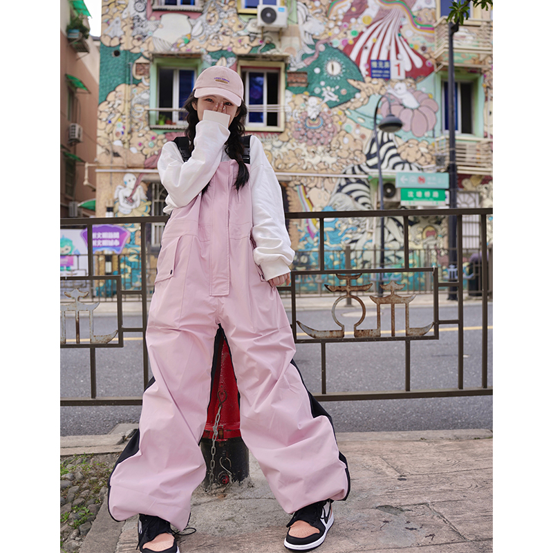 Ren刃川 現貨粉色連身滑雪服抱嬰袋褲小眾男女寬鬆防水加絨單雙板