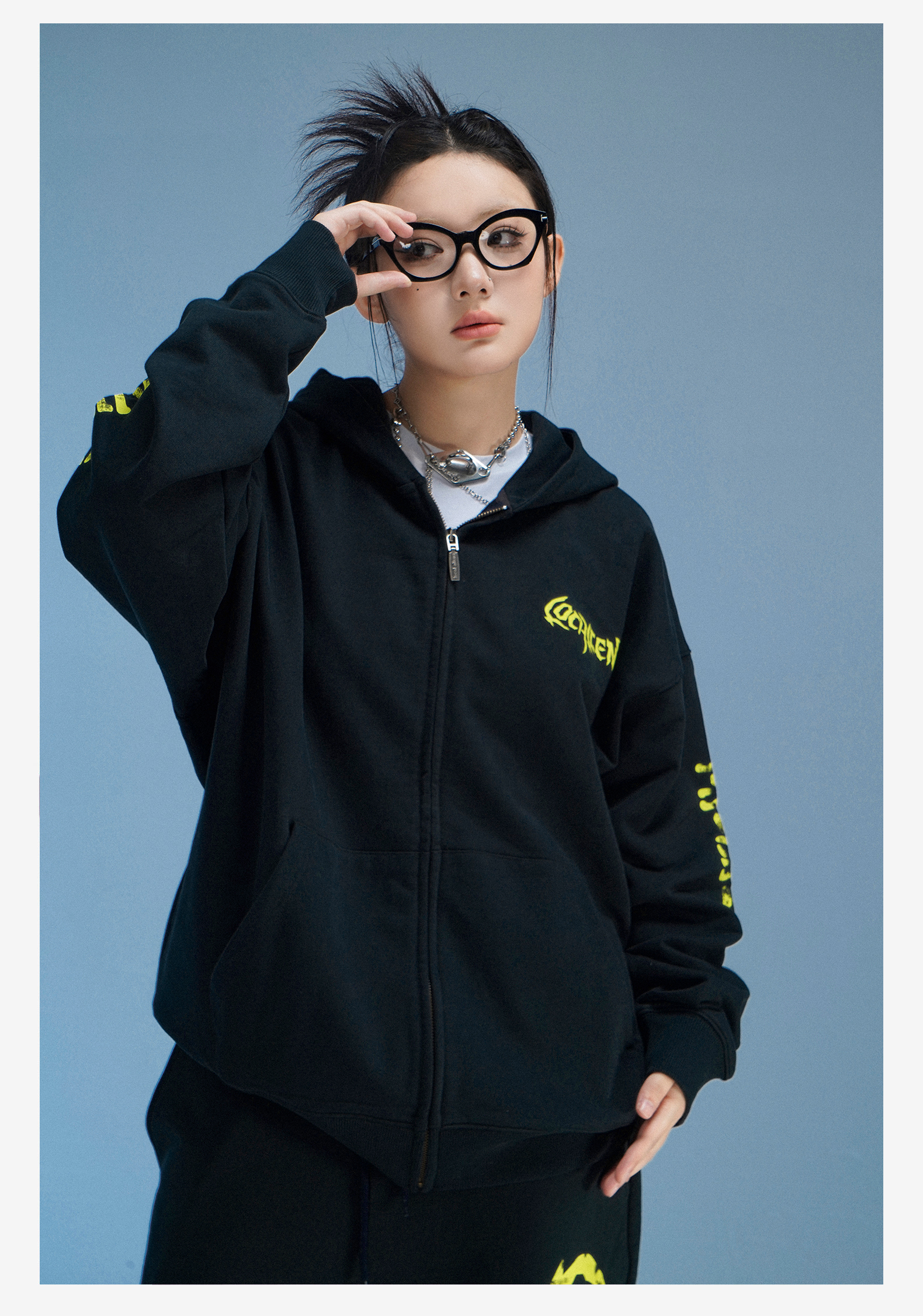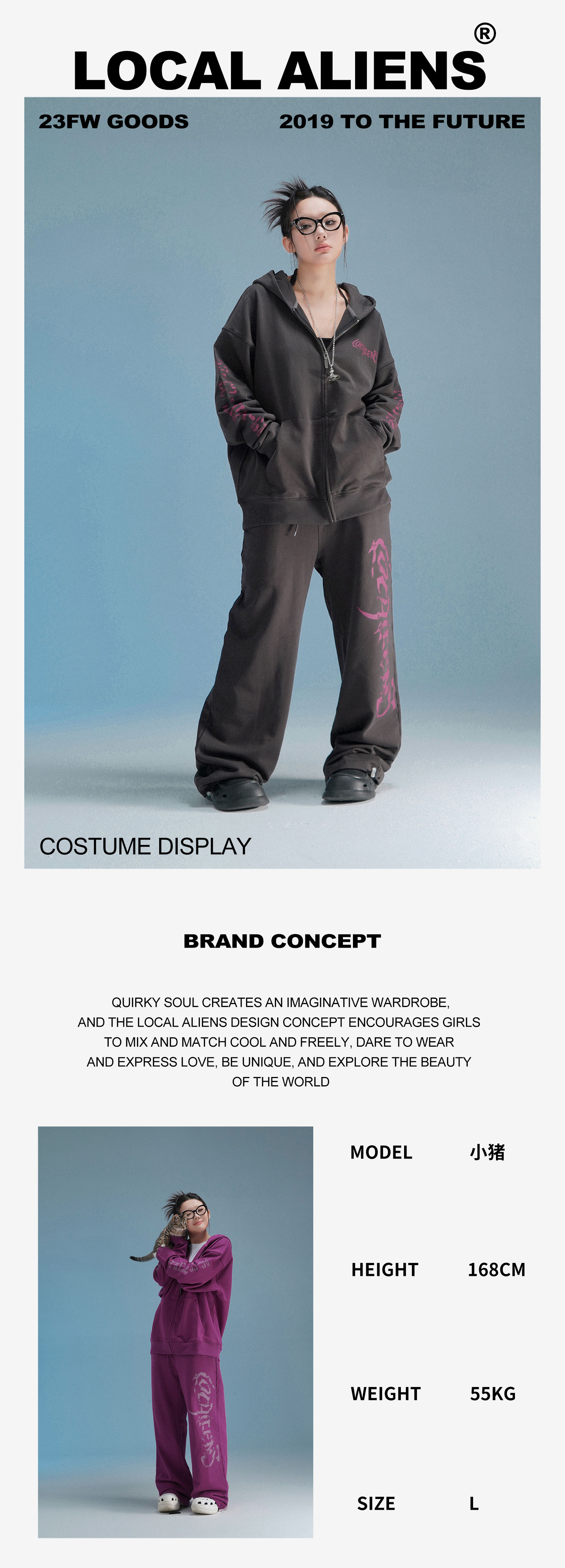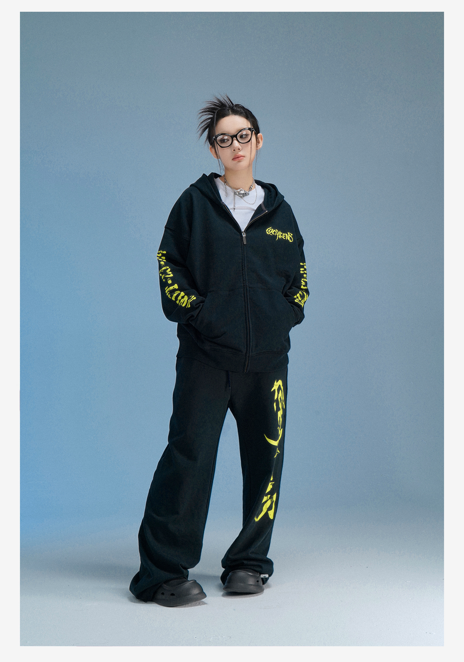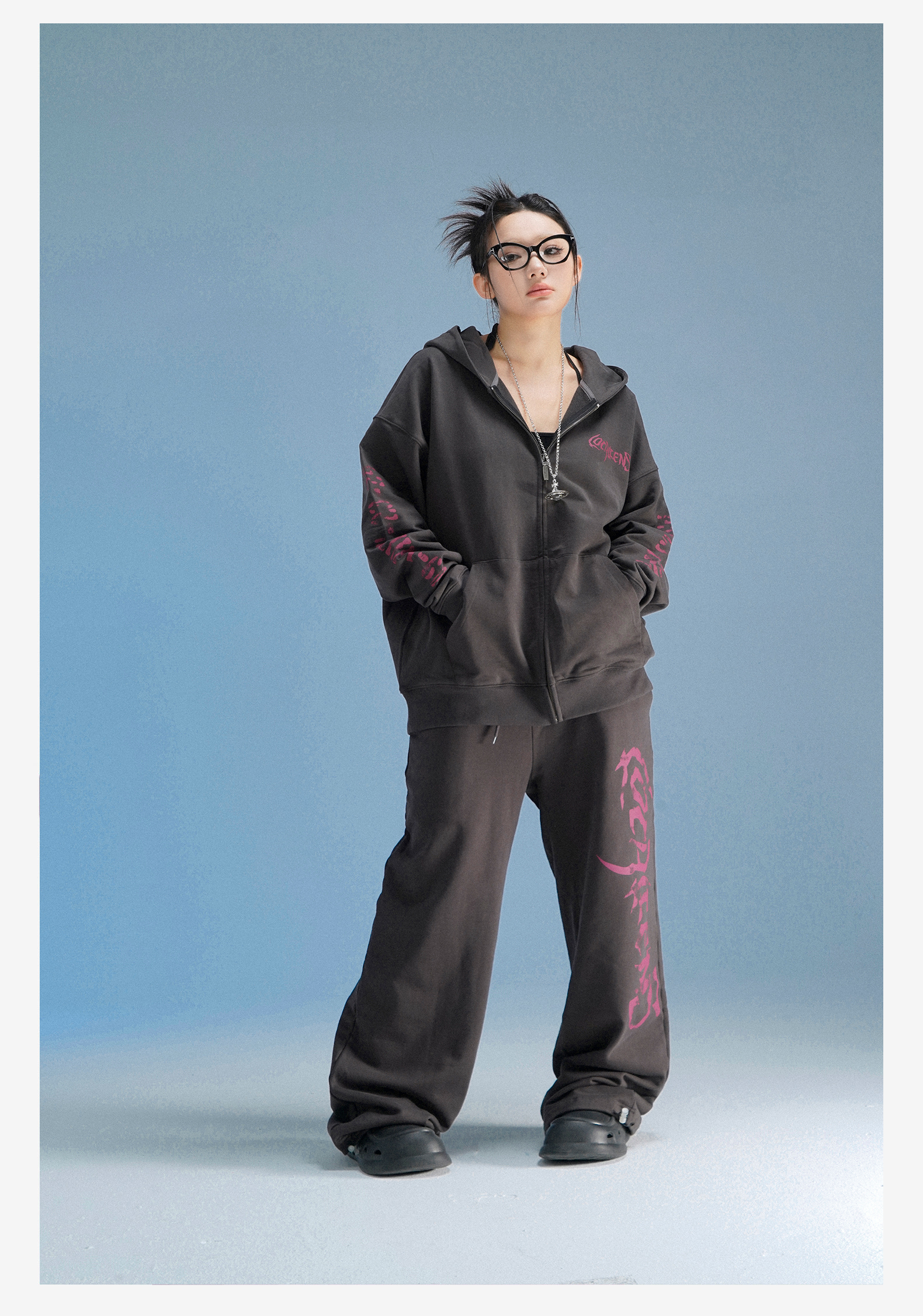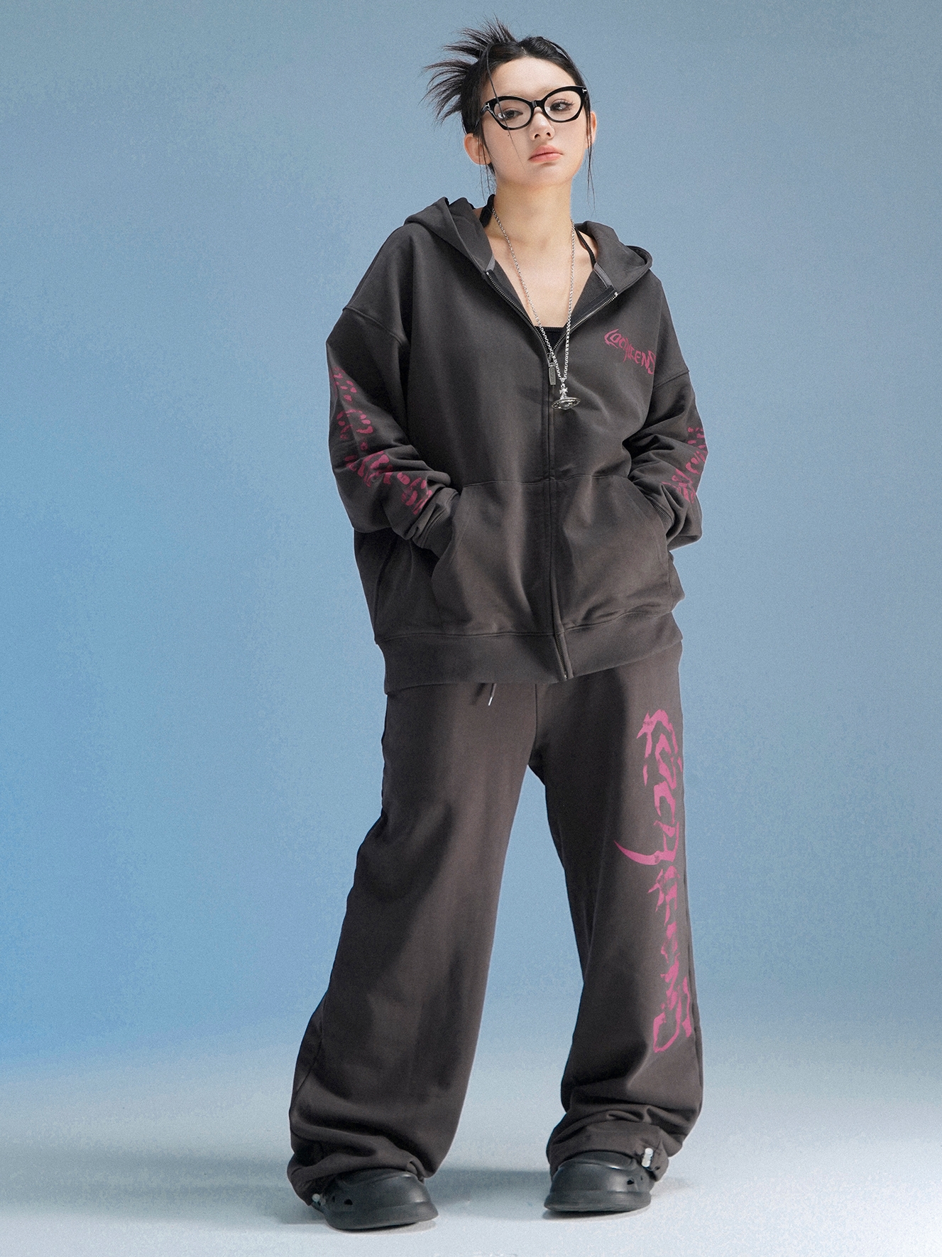 local aliens外星沙龍秋美式潮流拉鍊開衫厚棉T街頭休閒套裝長褲女