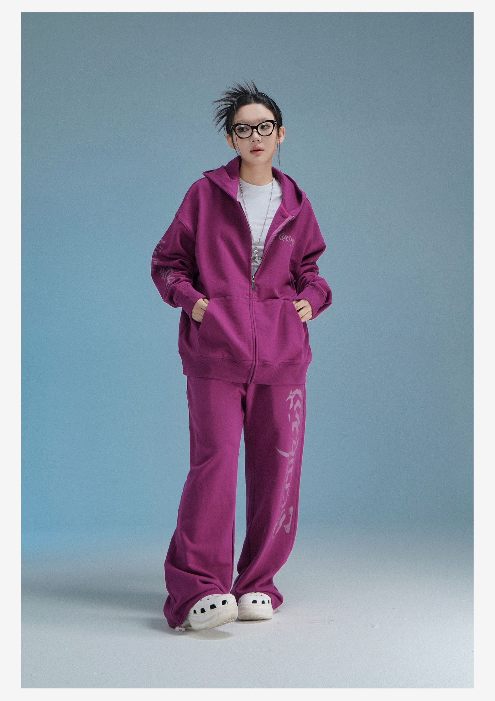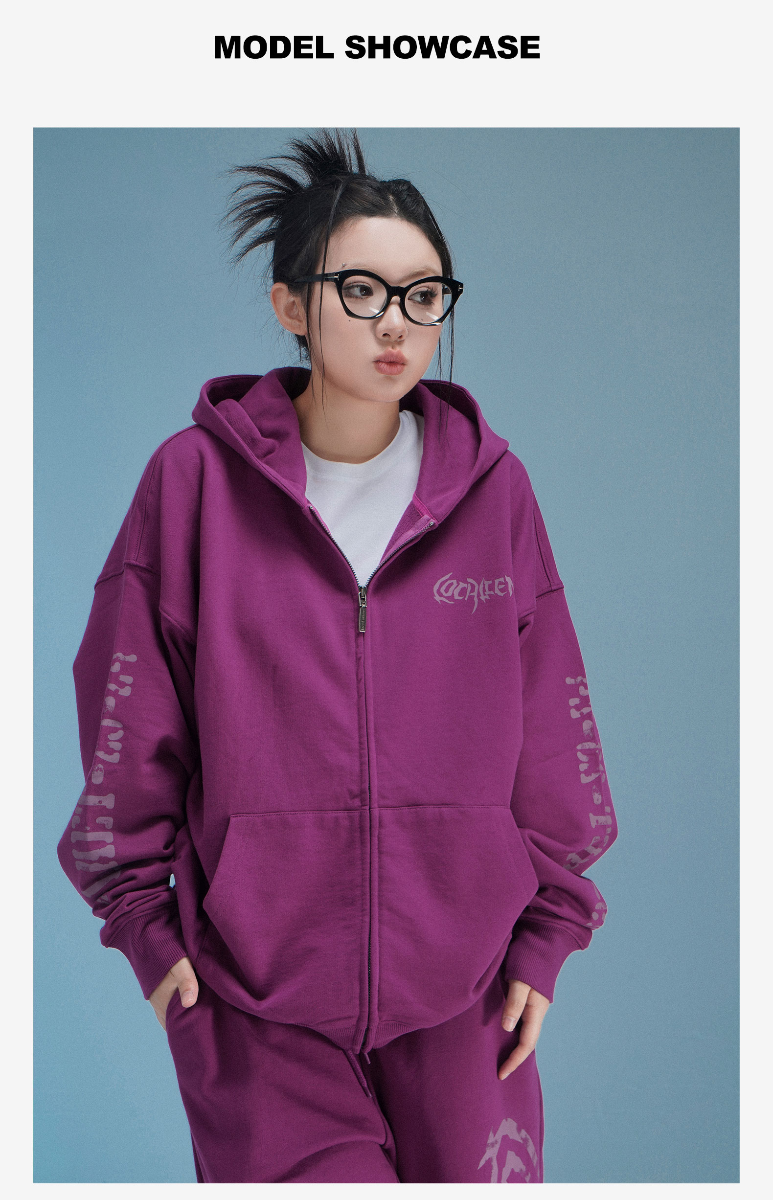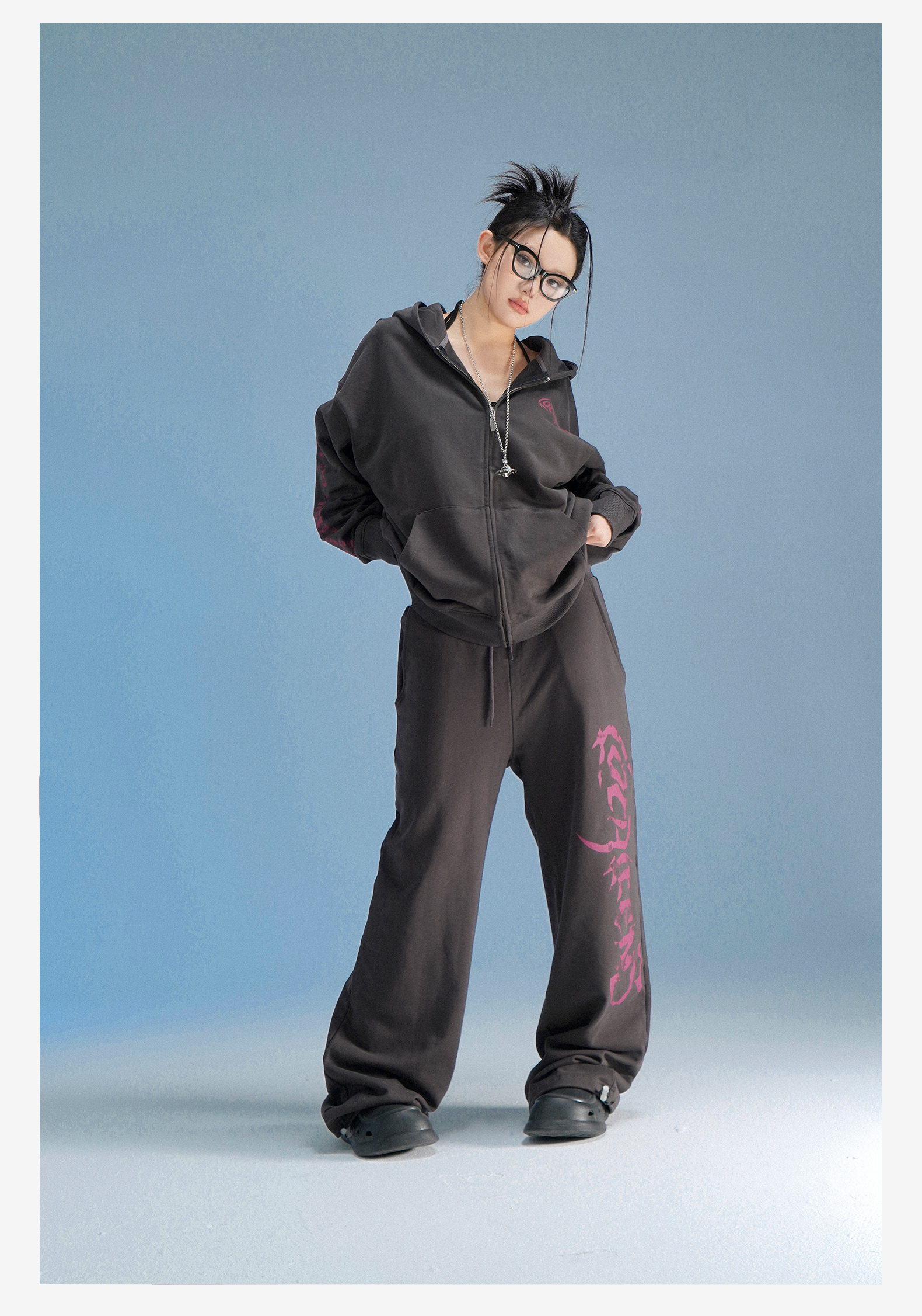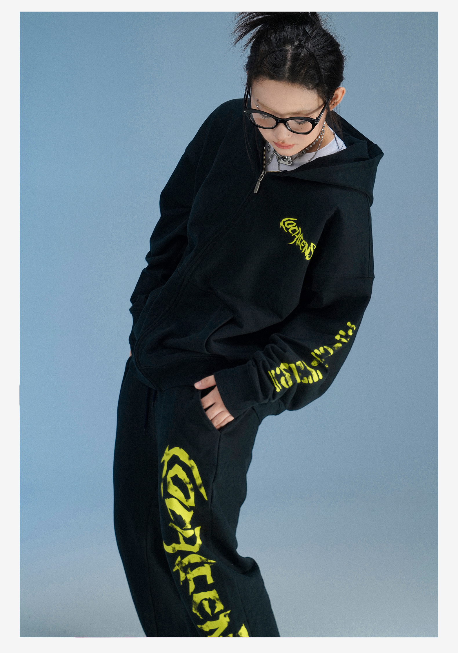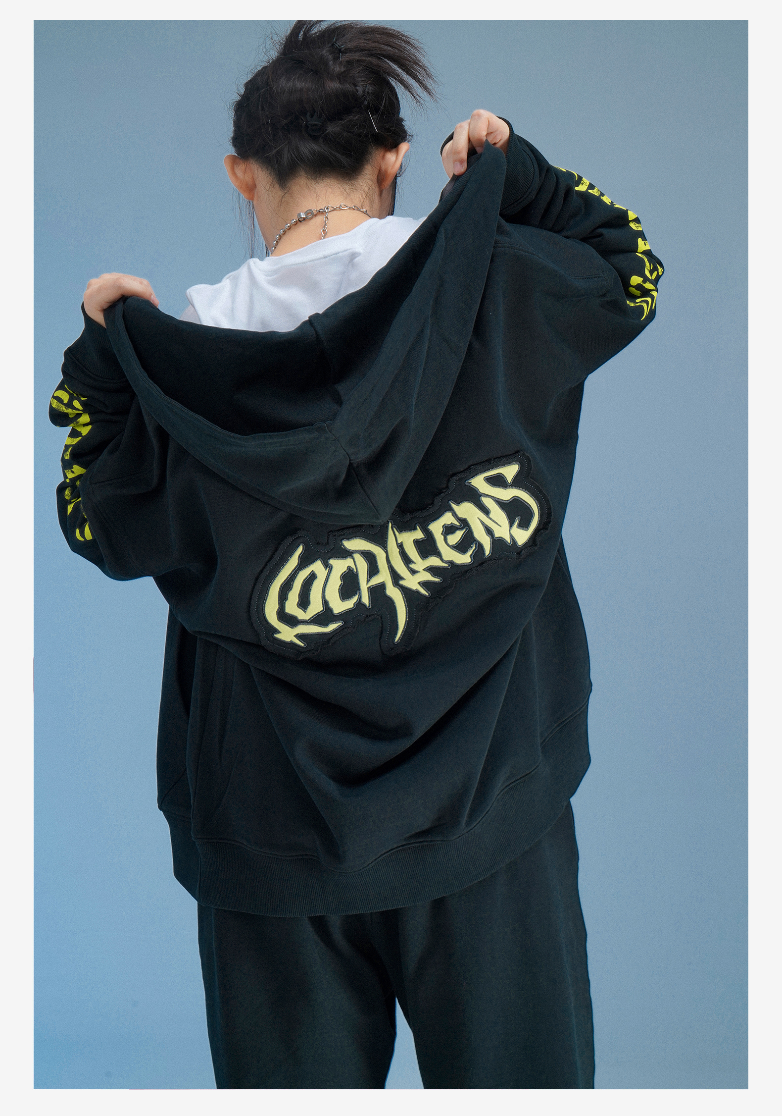 local aliens外星沙龍秋美式潮流拉鍊開衫厚棉T街頭休閒套裝長褲女