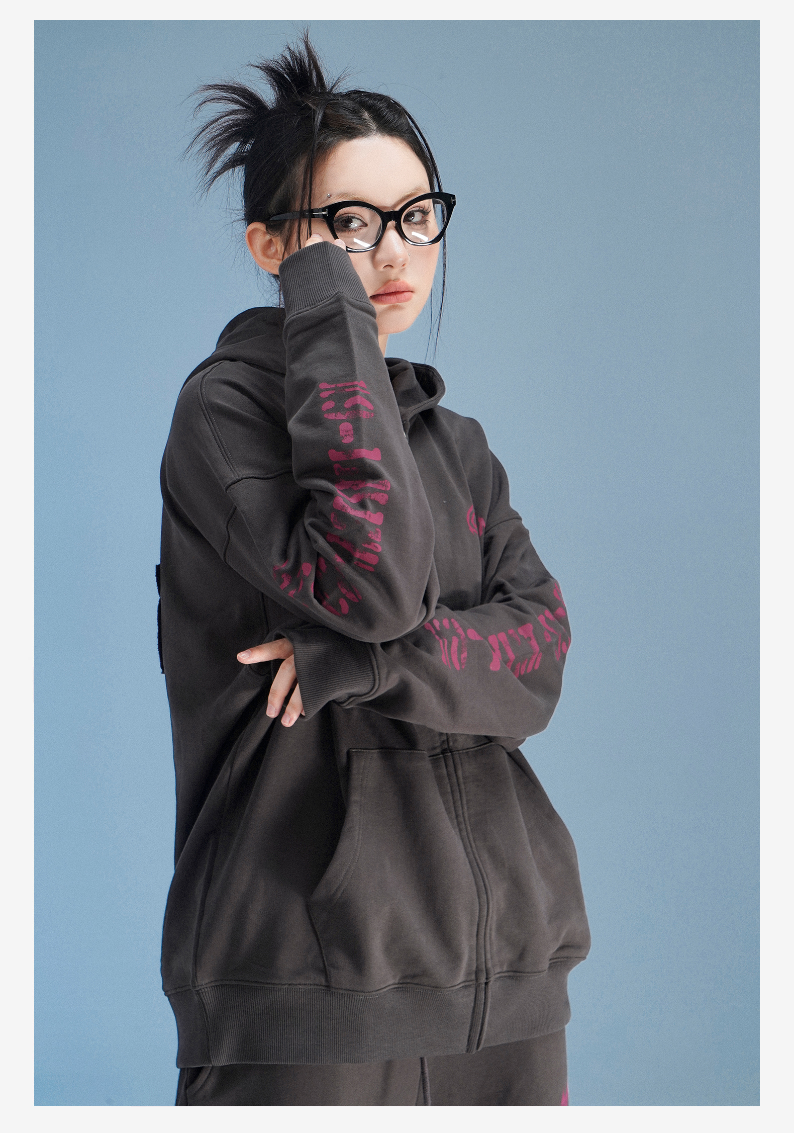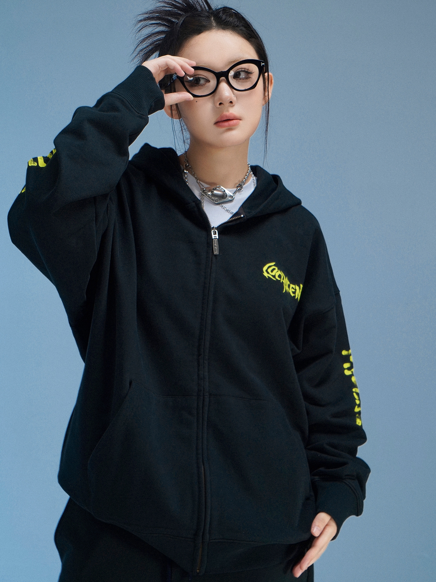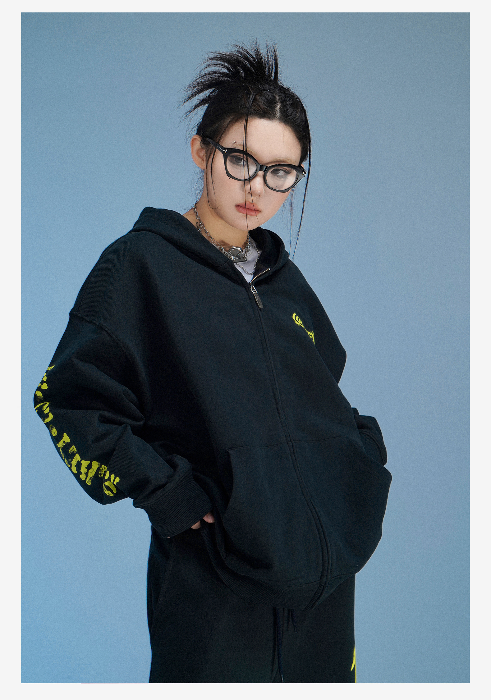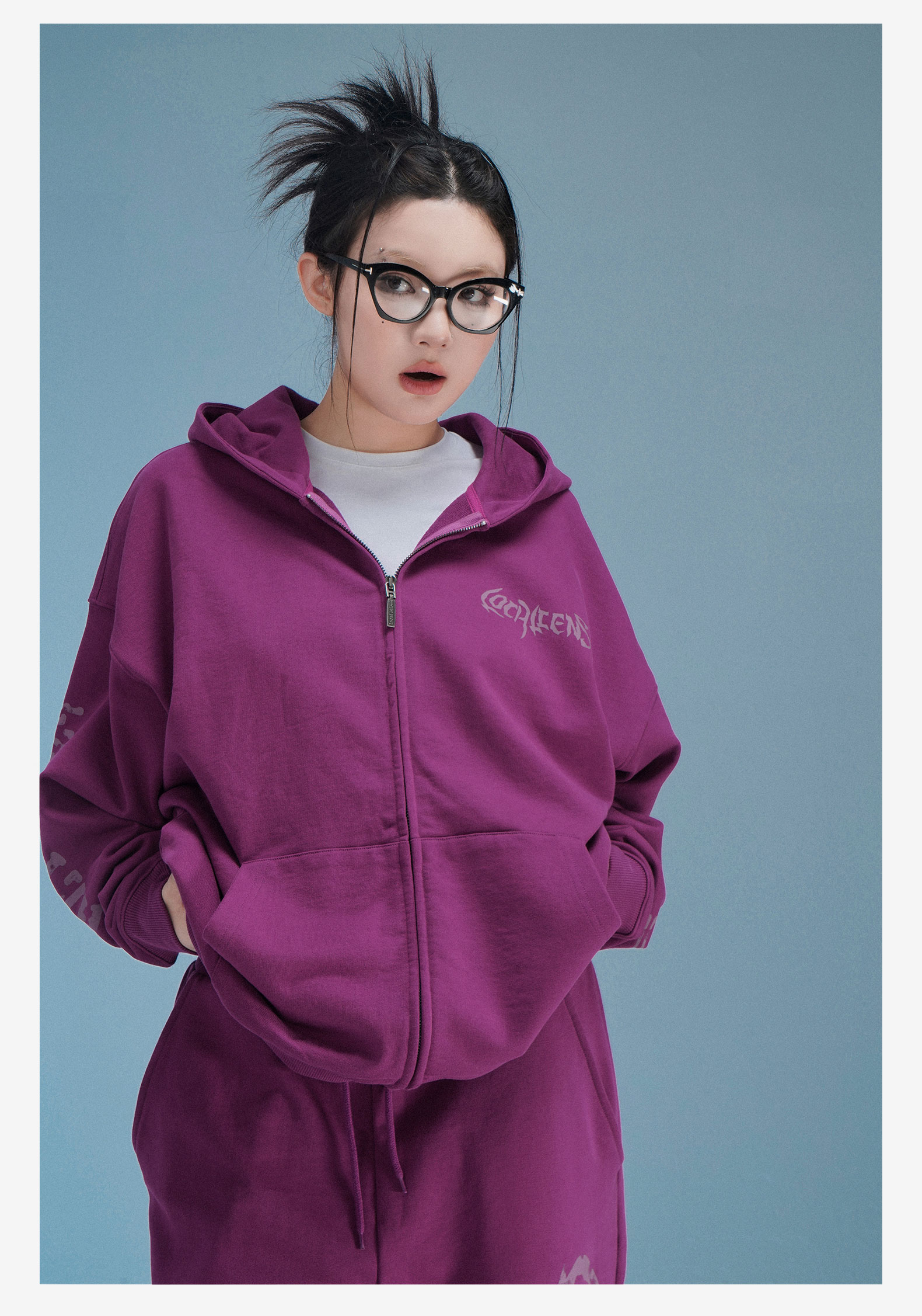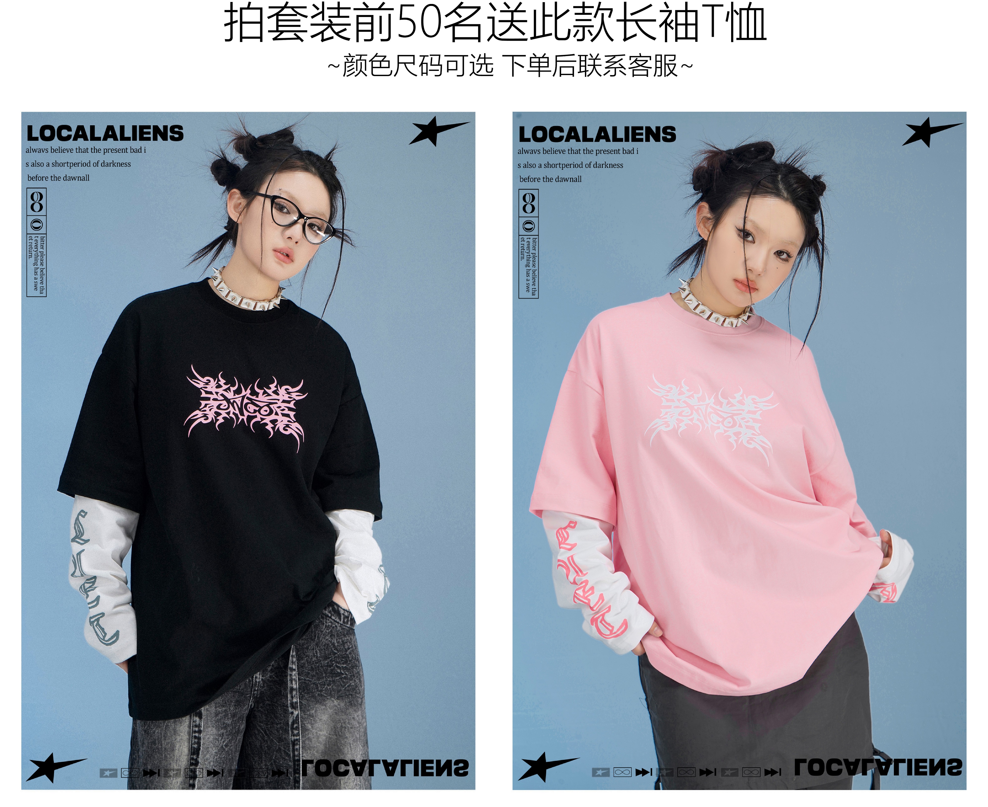 local aliens外星沙龍秋美式潮流拉鍊開衫厚棉T街頭休閒套裝長褲女