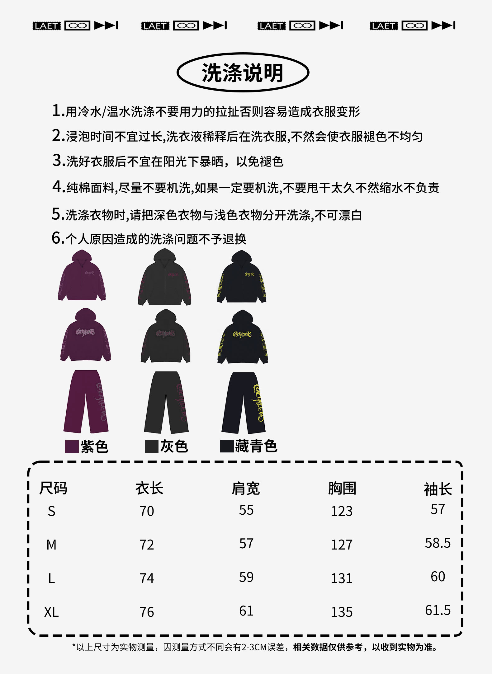 顏色分類 灰色上衣,灰色褲子,紫色上衣,紫色褲子,藏青色上衣,藏青色褲子,灰色套裝,紫色套裝,藏青色套裝,拍套裝上衣褲子可尺碼不同