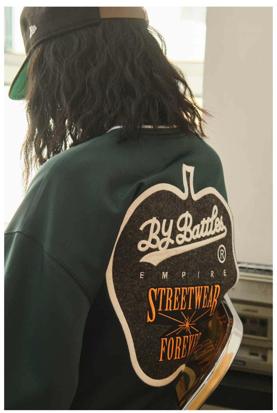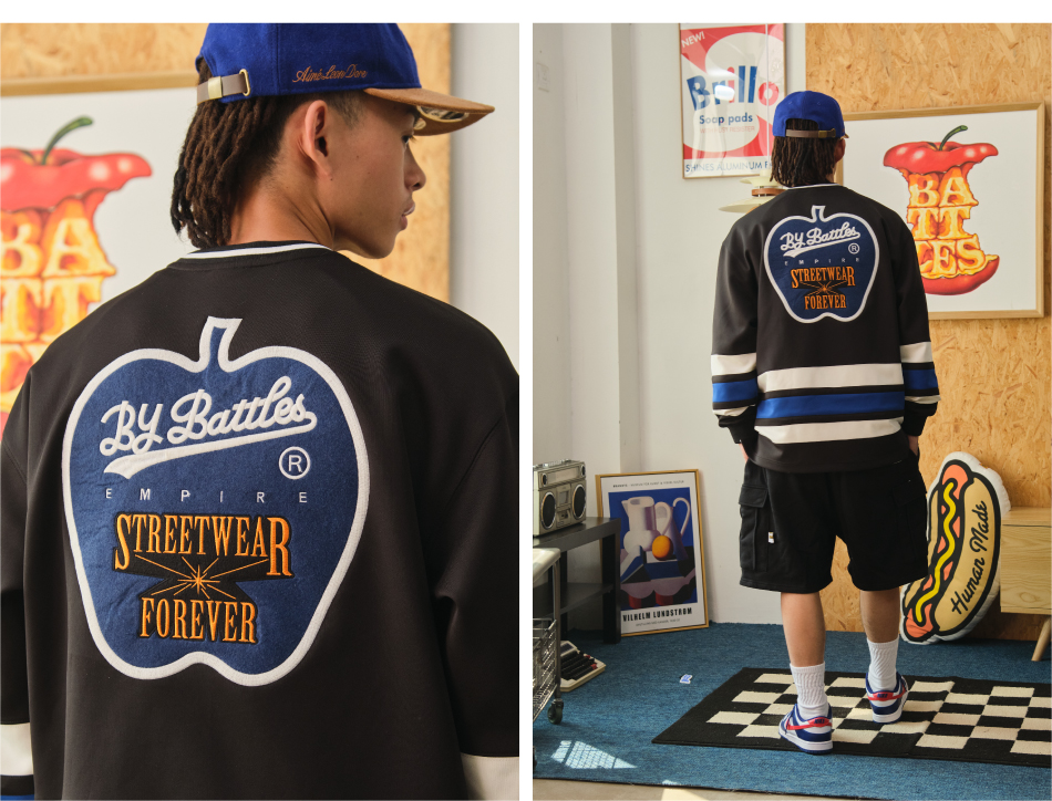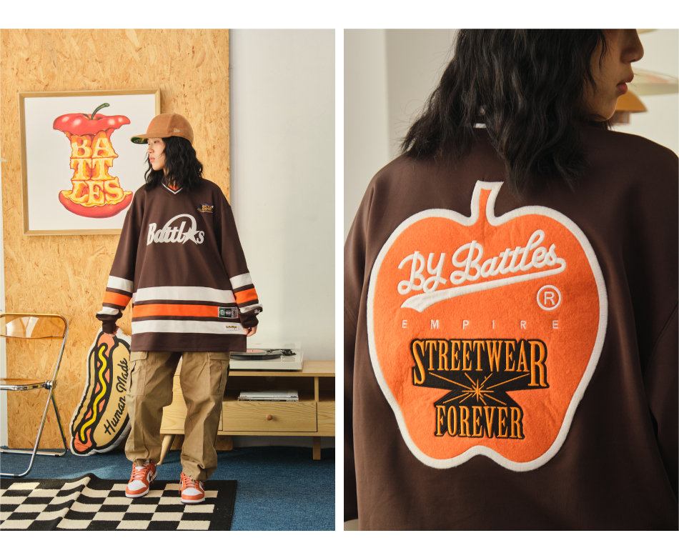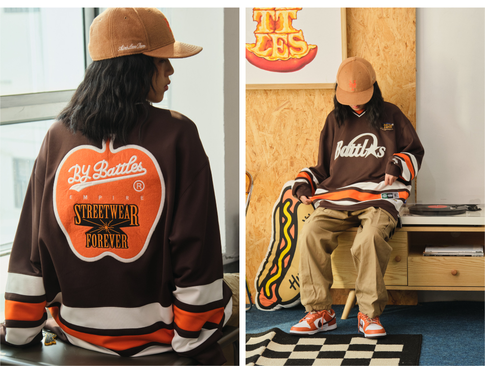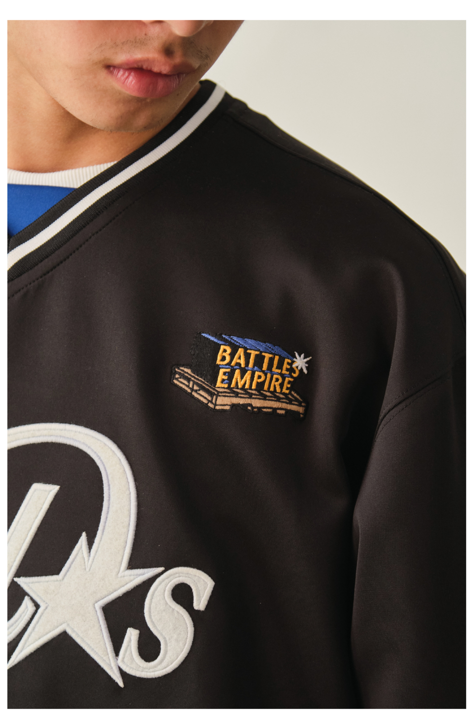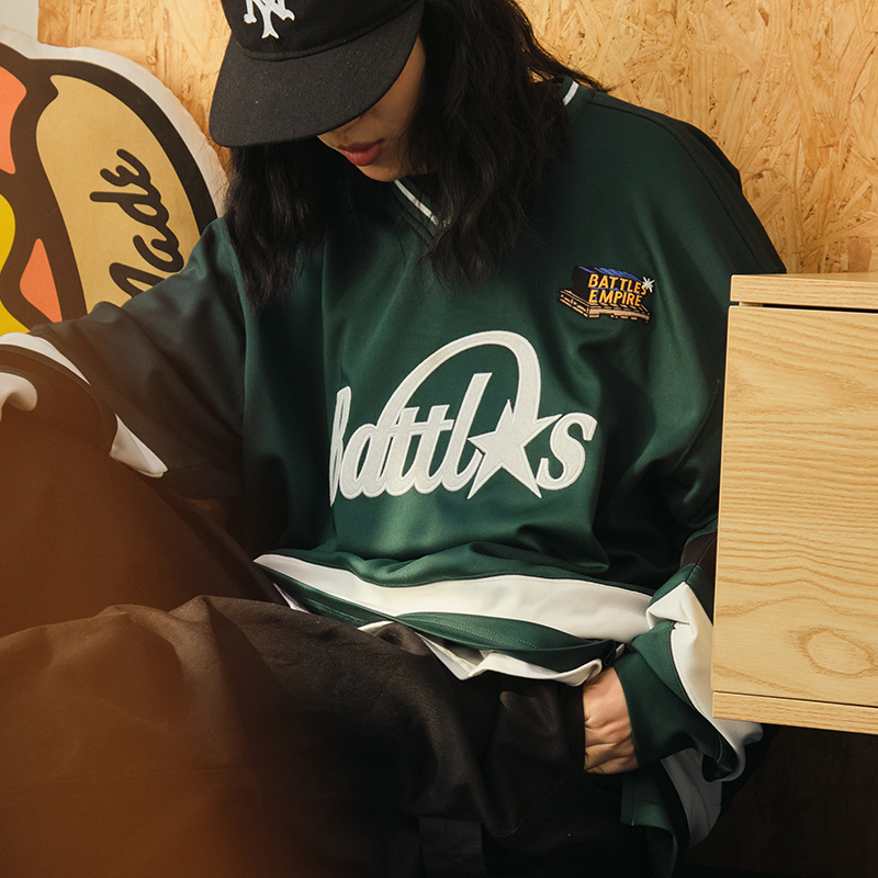 Battles秋冬美式復古重工刺繡梭織運動冰球服街頭寬鬆休閒長袖T恤
