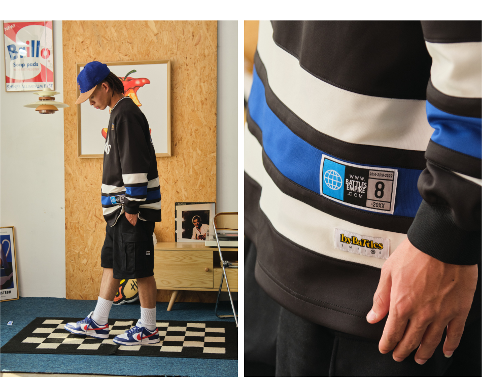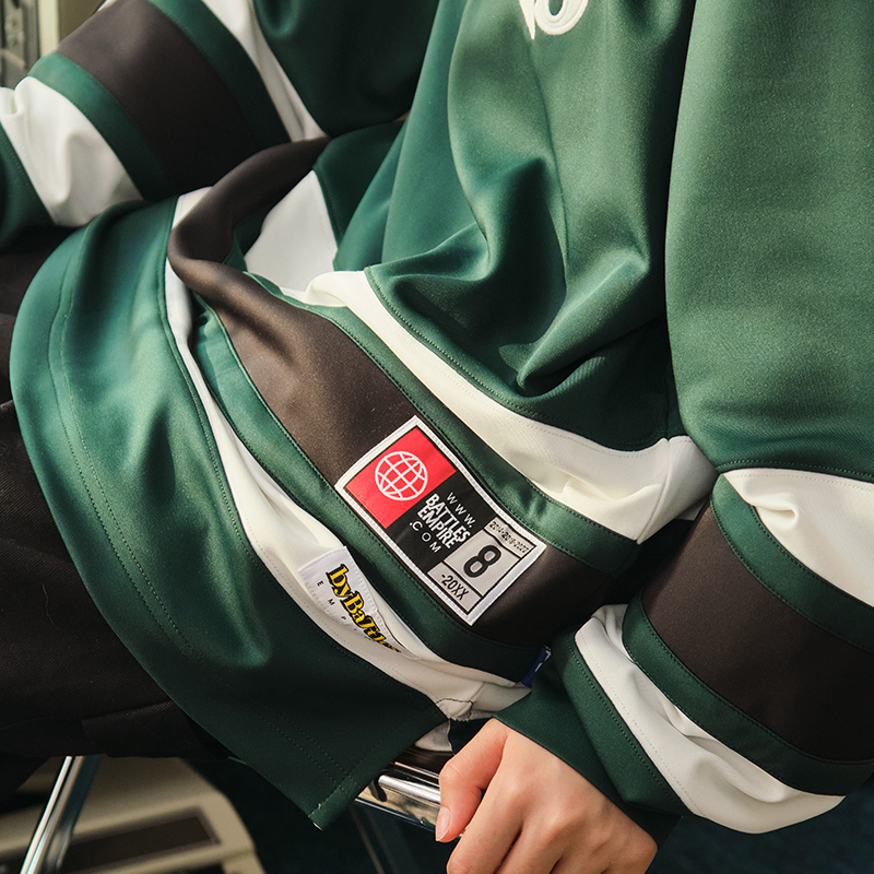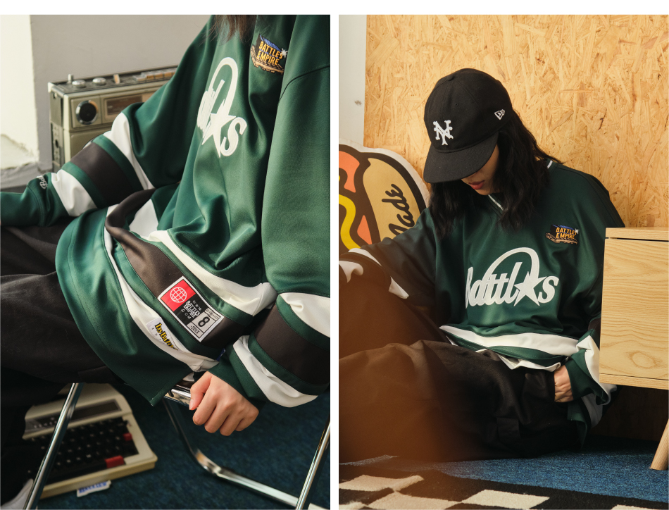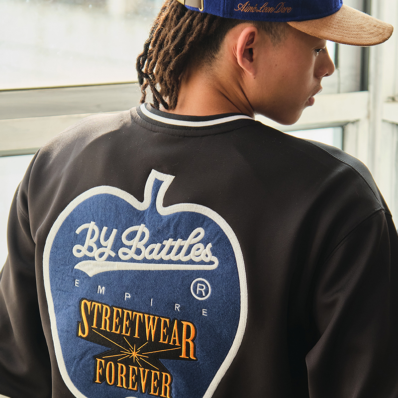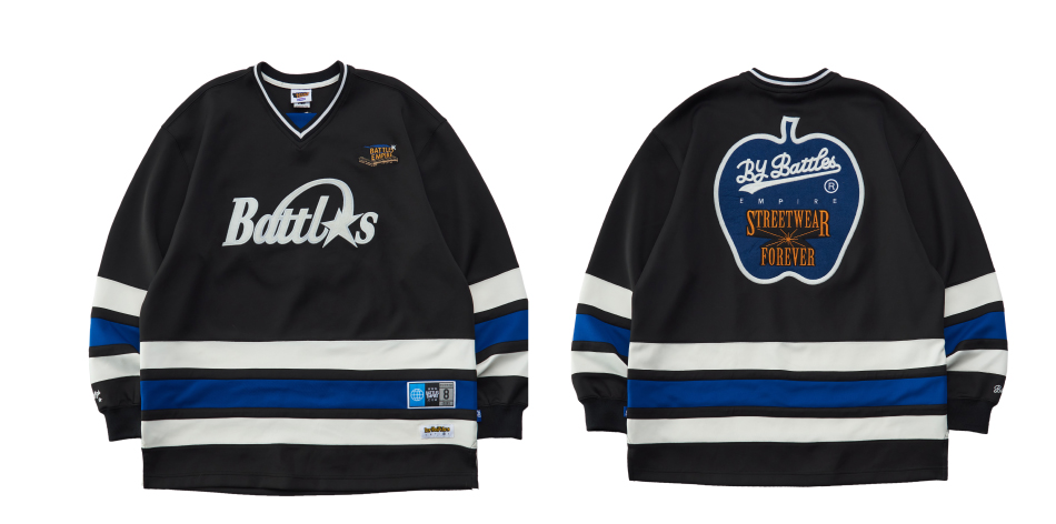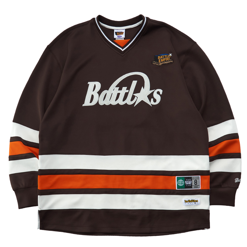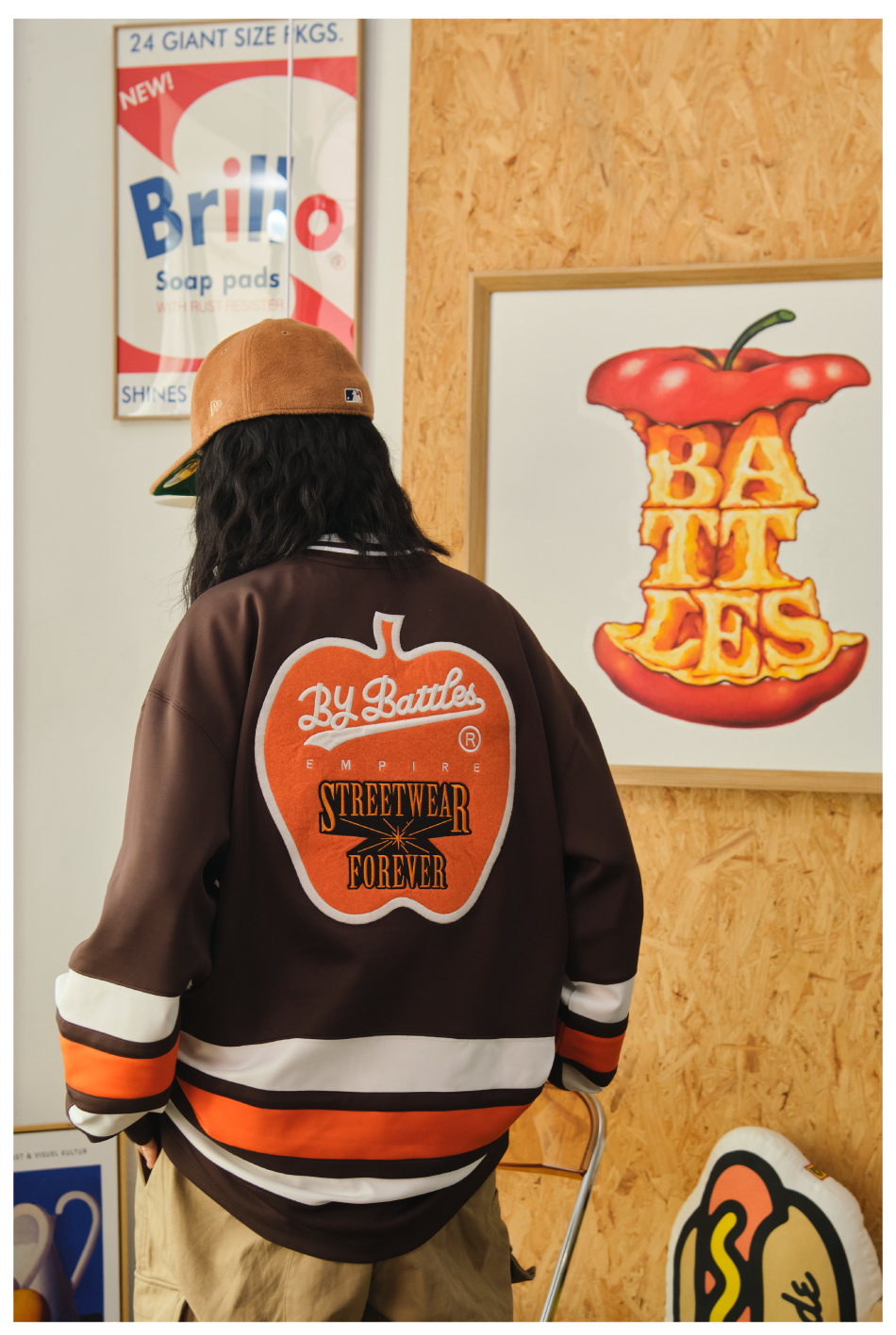 Battles秋冬美式復古重工刺繡梭織運動冰球服街頭寬鬆休閒長袖T恤