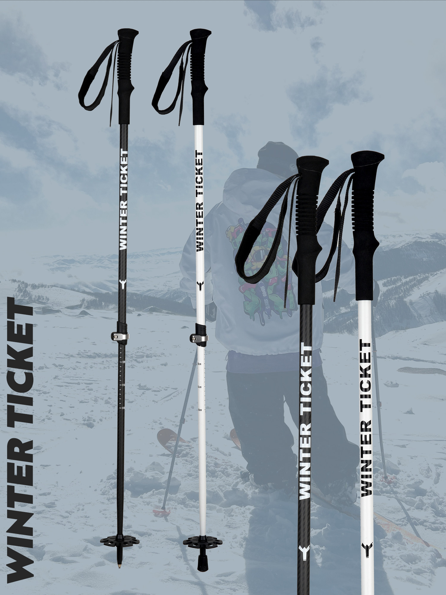 WinterTicket2324野雪大雪拖全碳纖維輕伸縮桿自由式雪仗配x2鋁杆