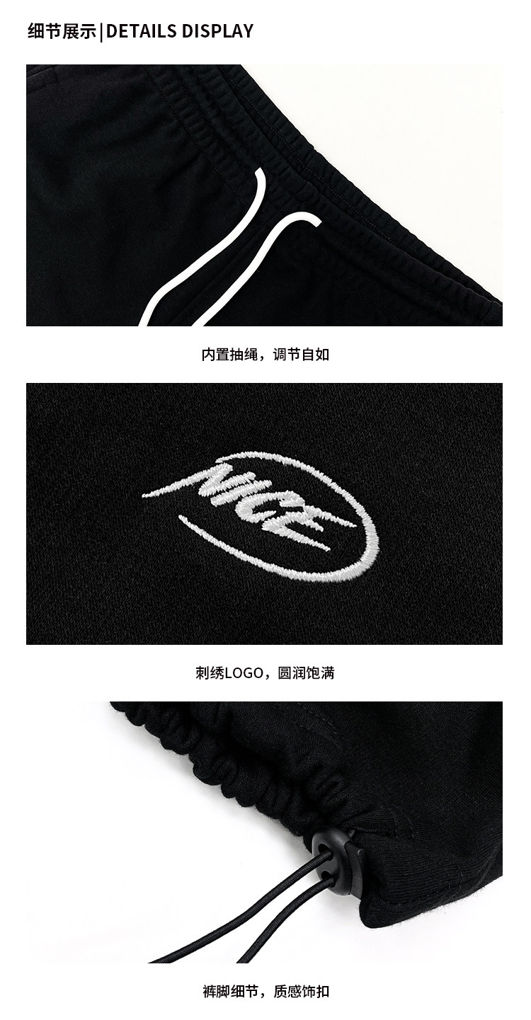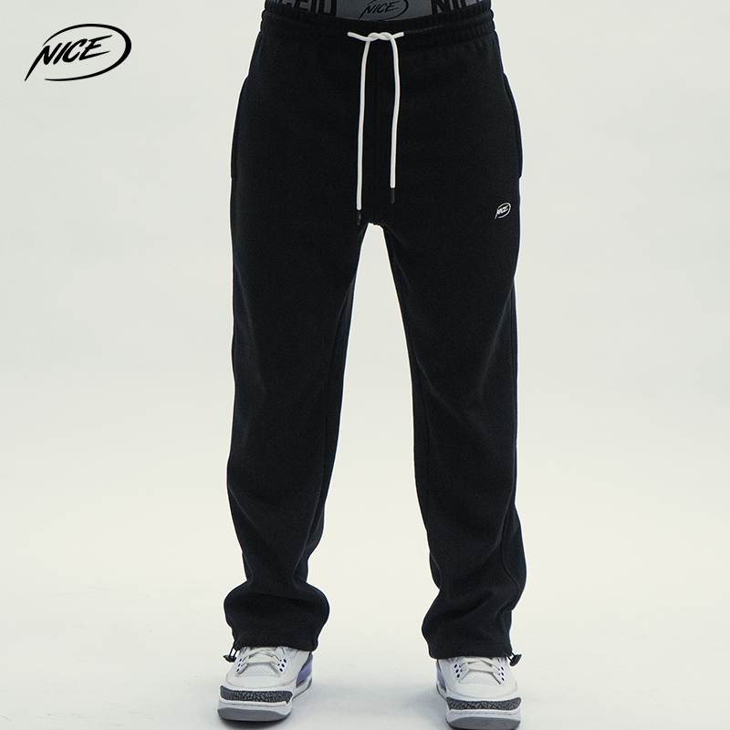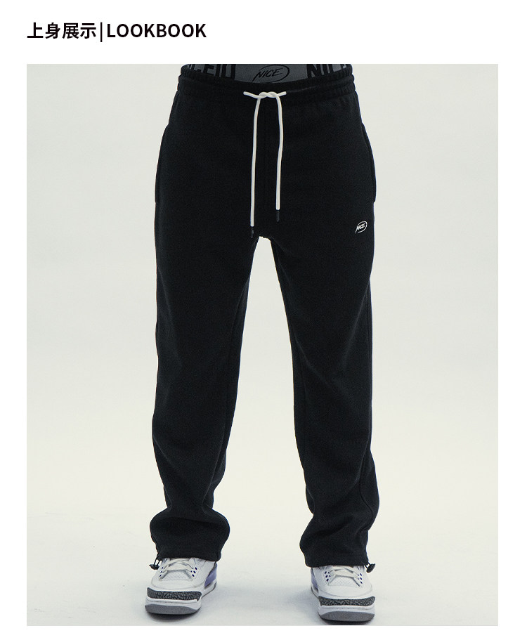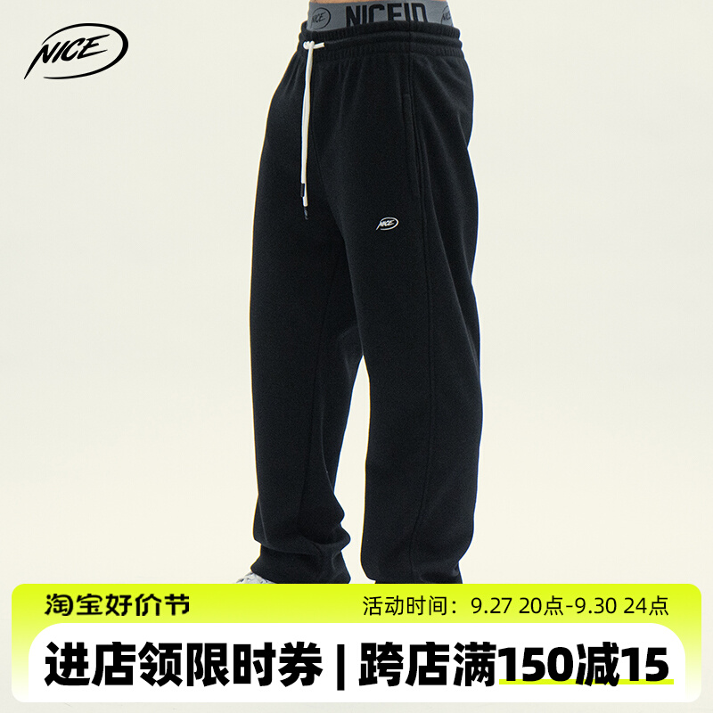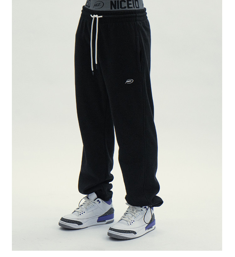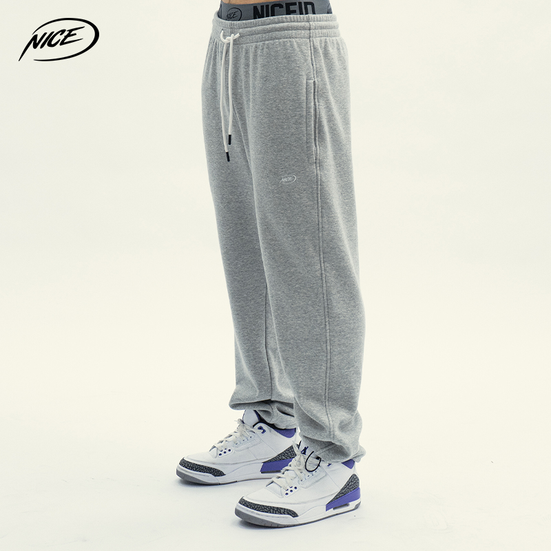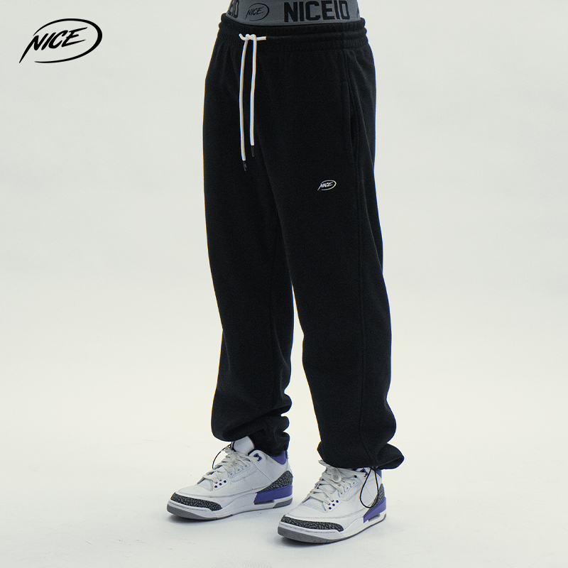 NICEID NICE秋冬加厚運動籃球衛褲寬鬆束腳字母刺繡訓練長褲