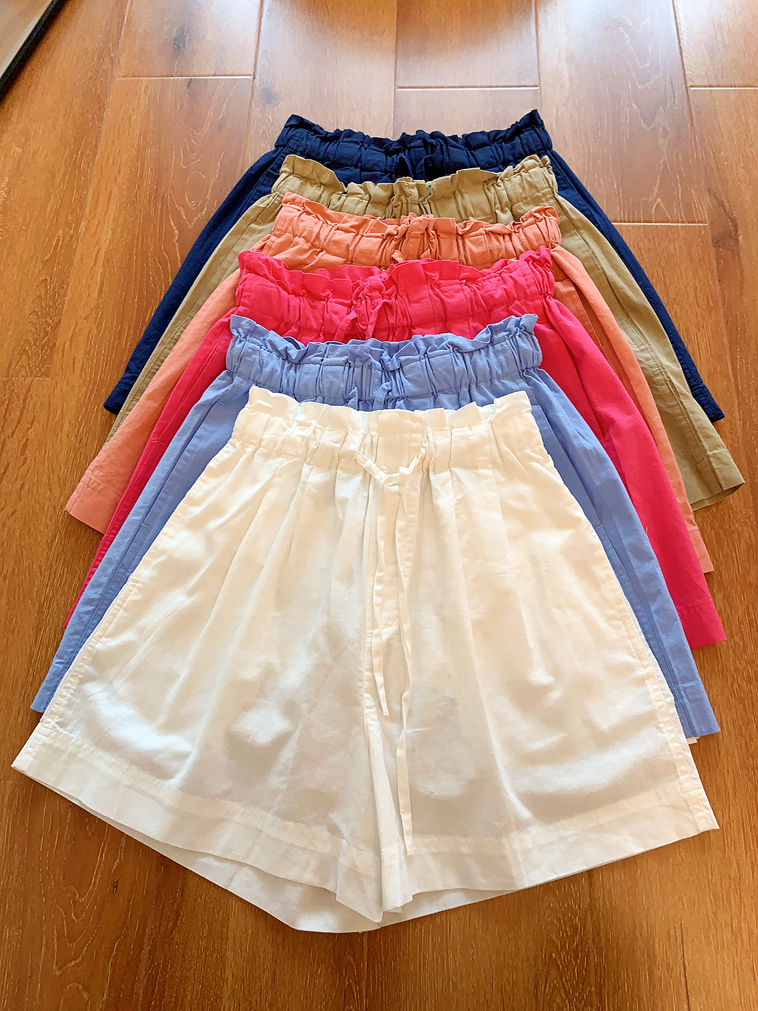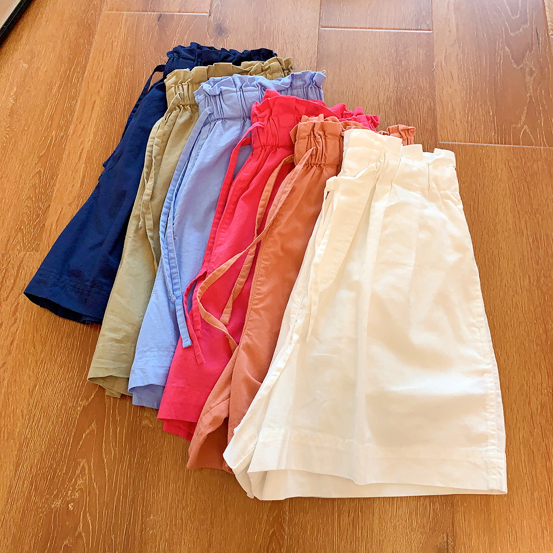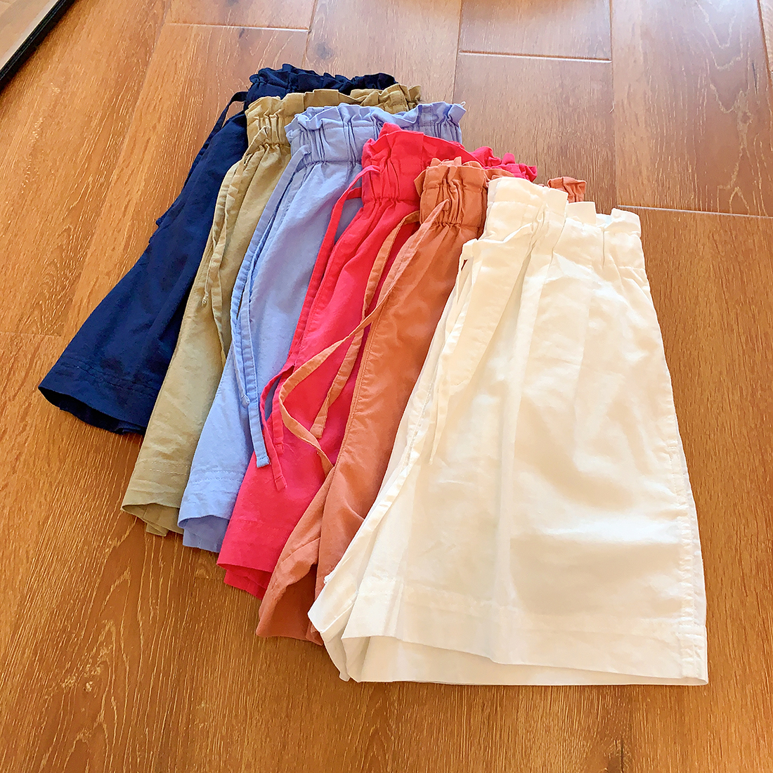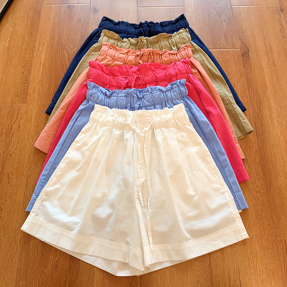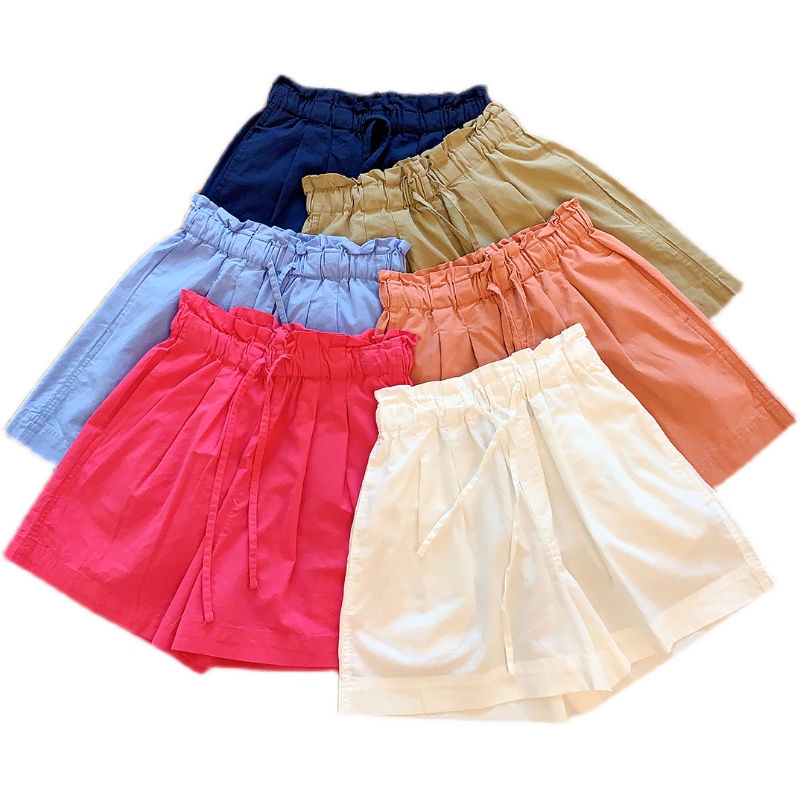 U+式衣間!出品~棉麻花苞腰闊腿短褲女夏百搭鬆緊腰a字休閒中褲