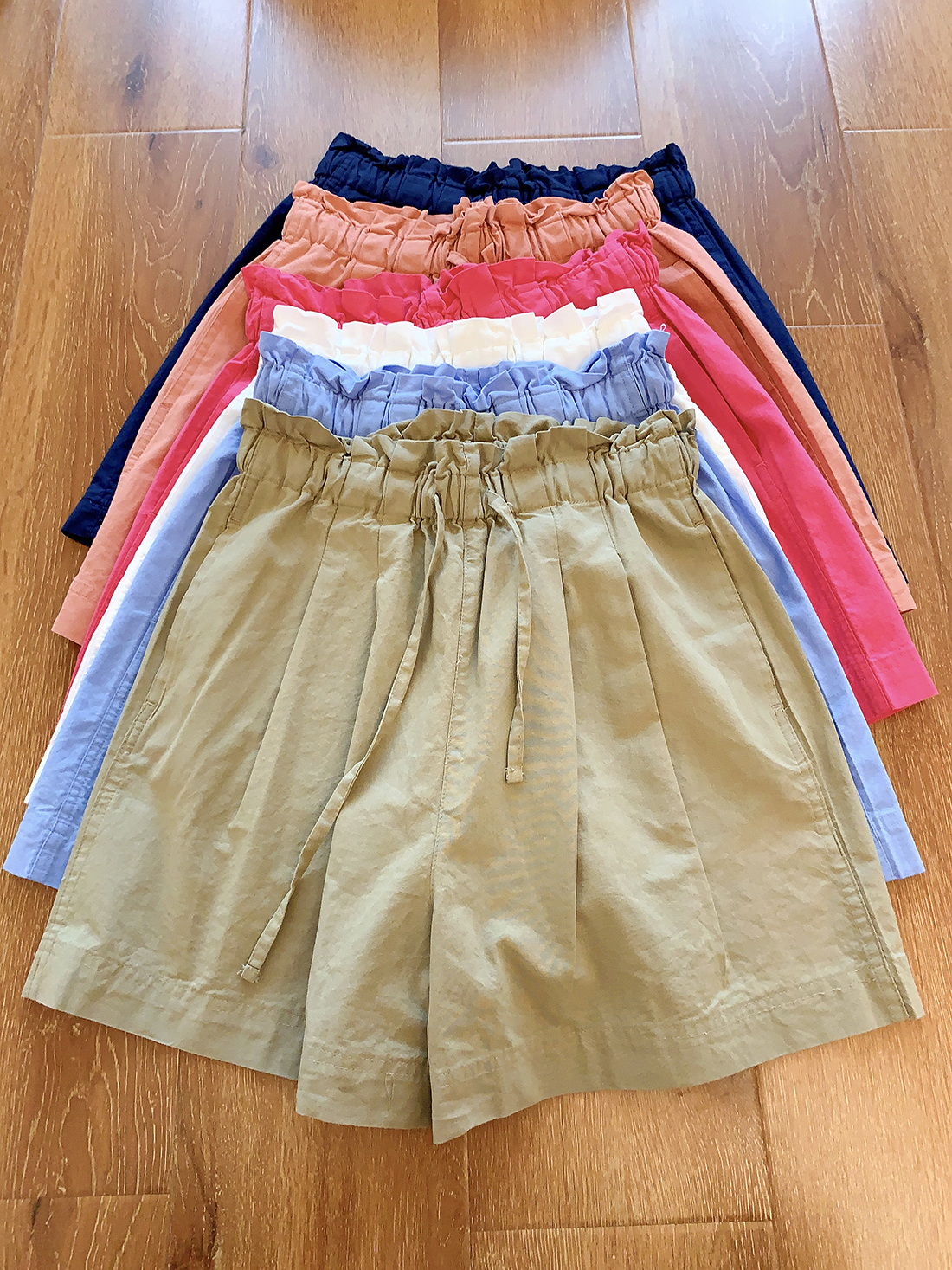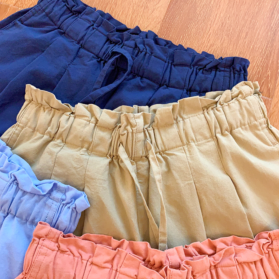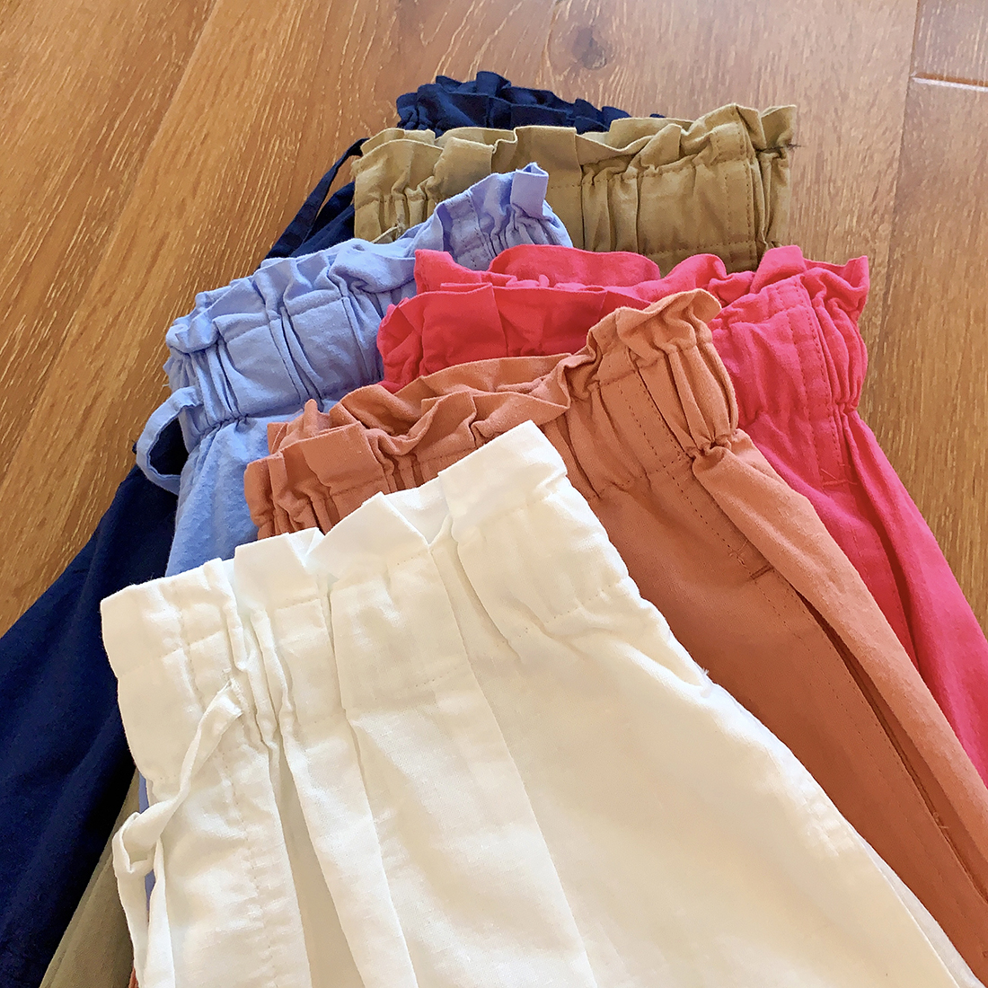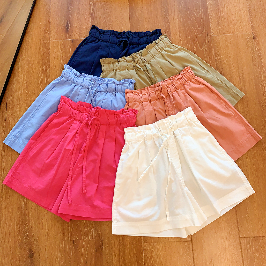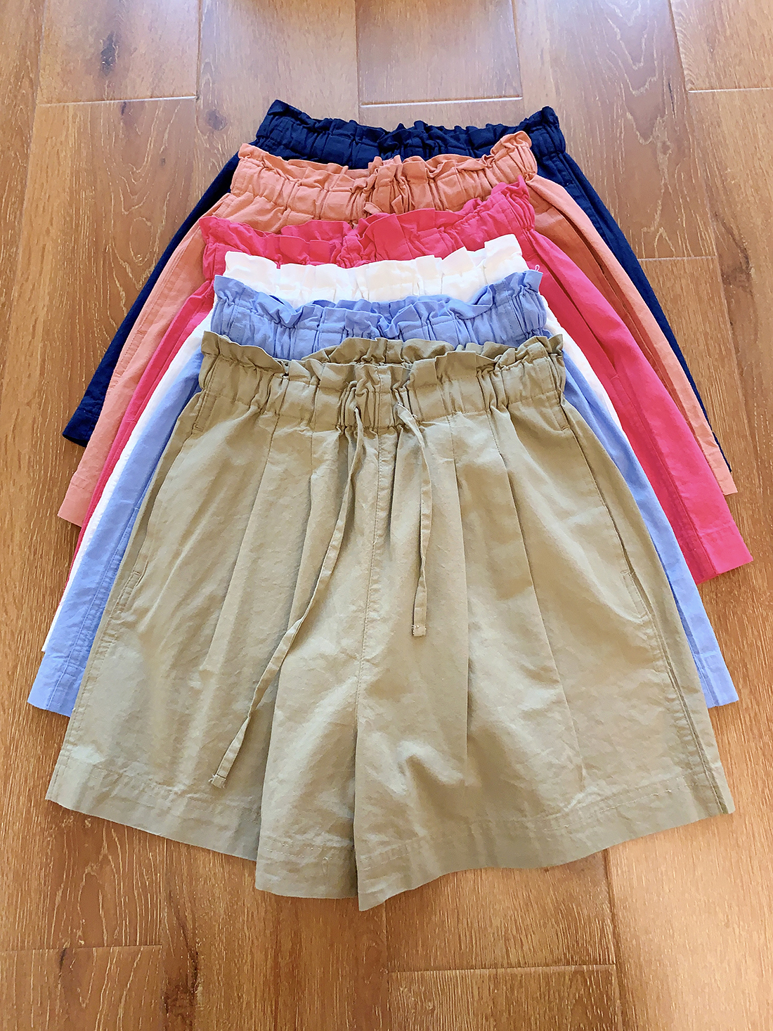 U+式衣間!出品~棉麻花苞腰闊腿短褲女夏百搭鬆緊腰a字休閒中褲