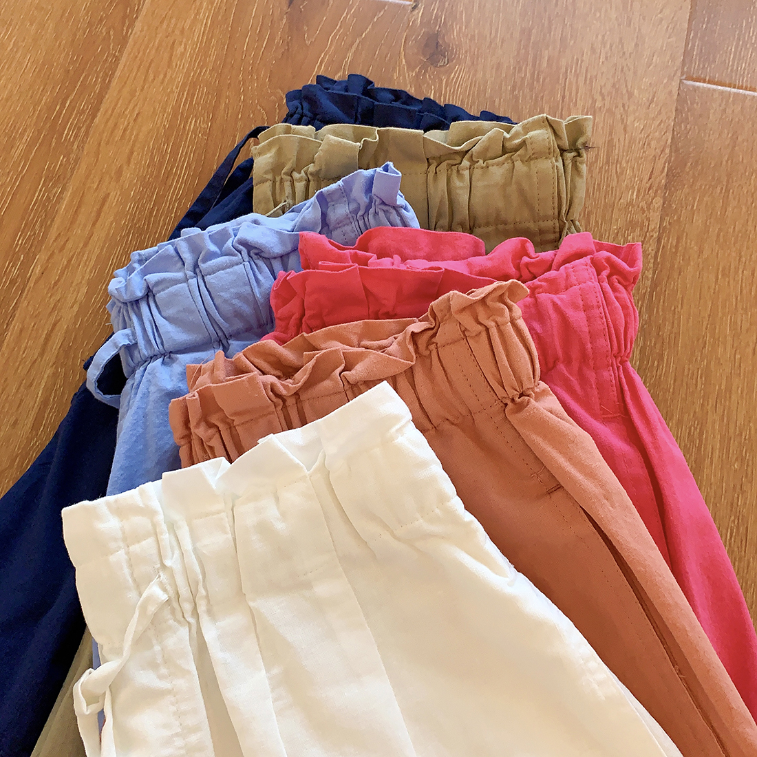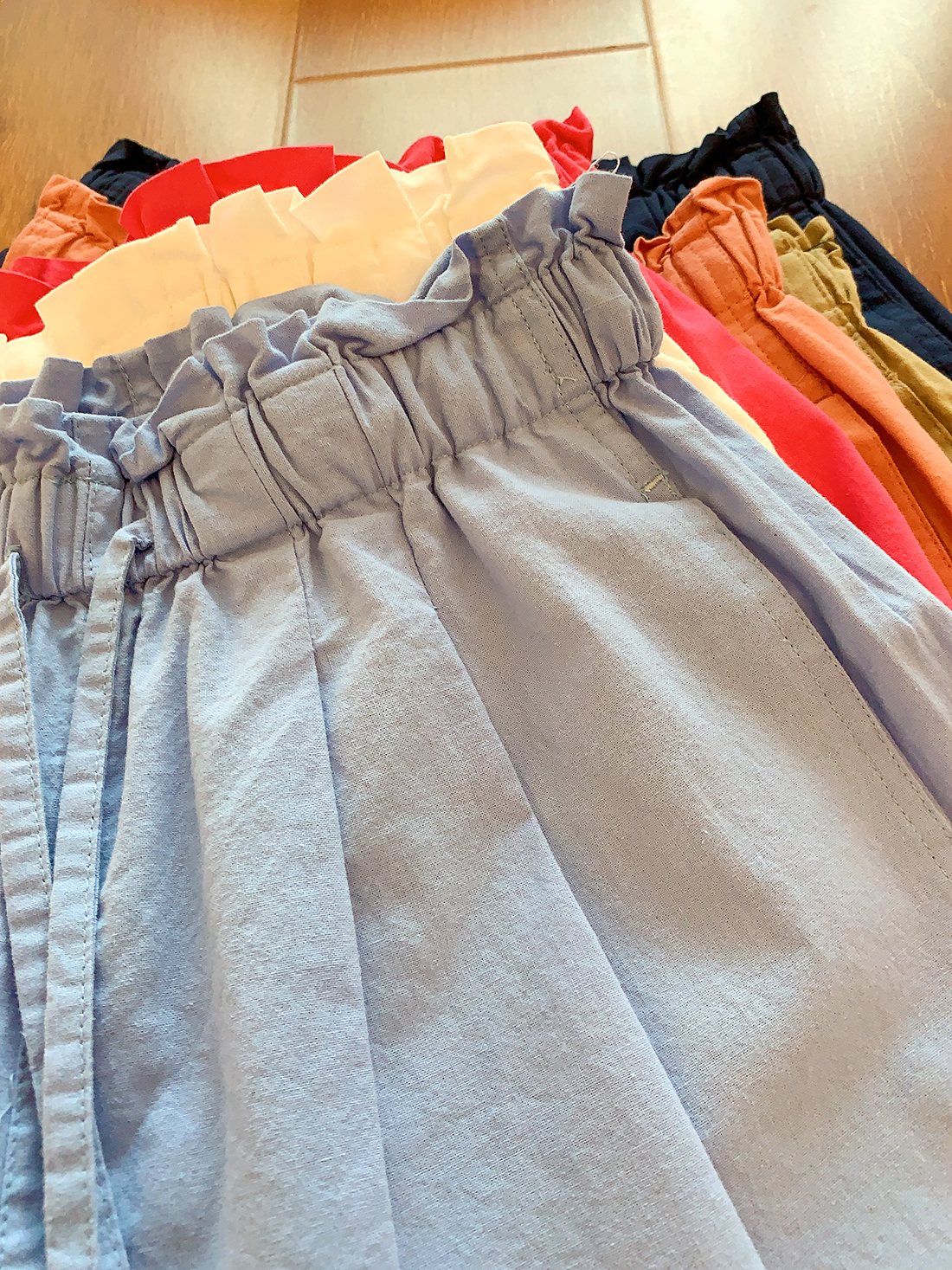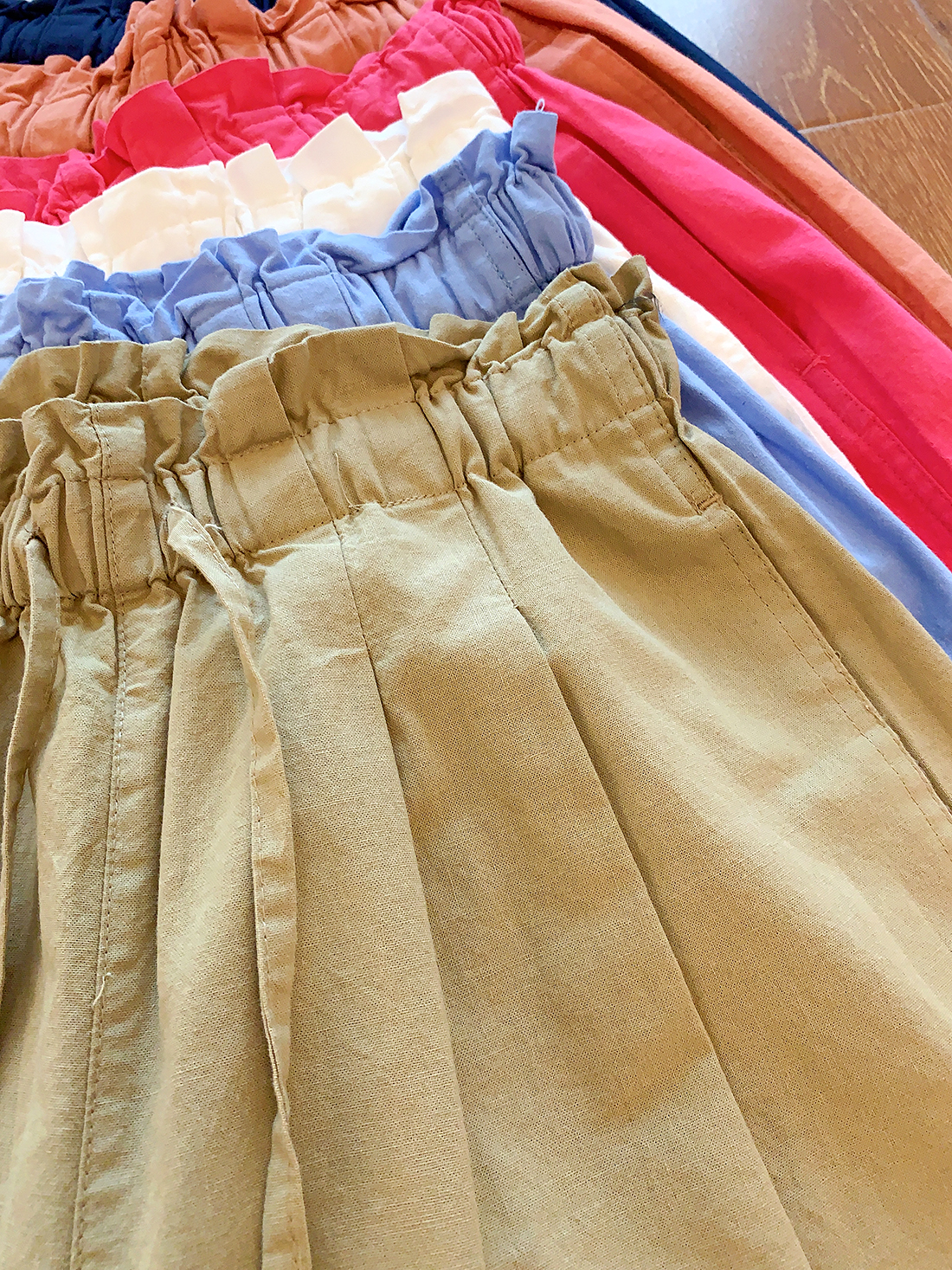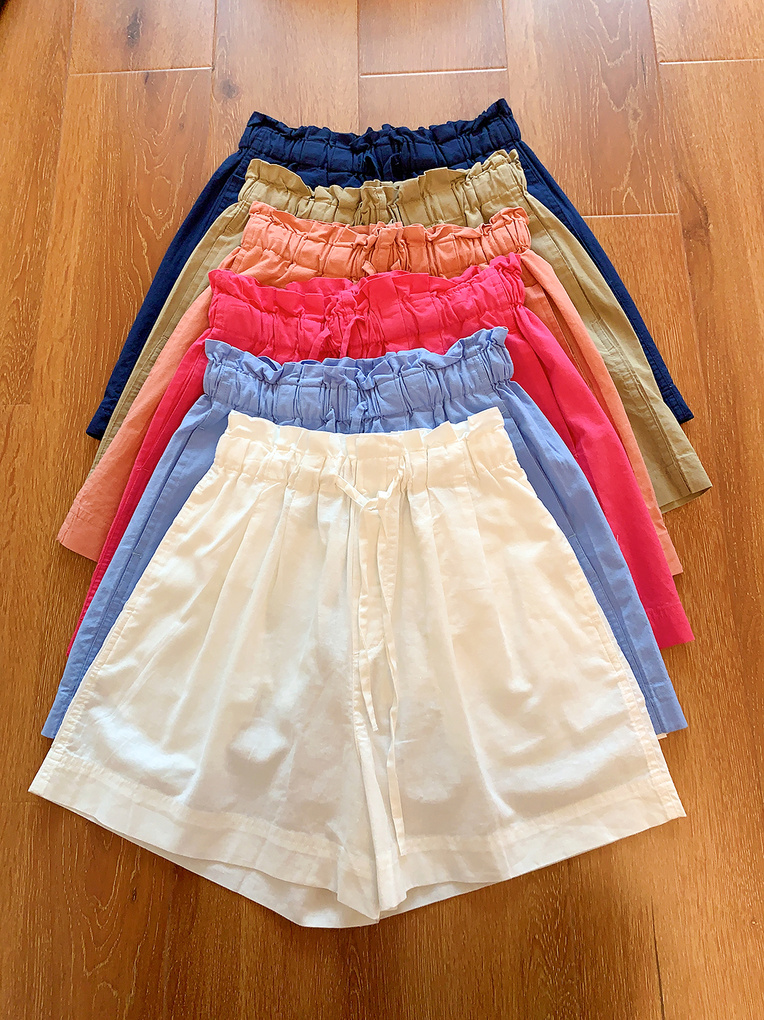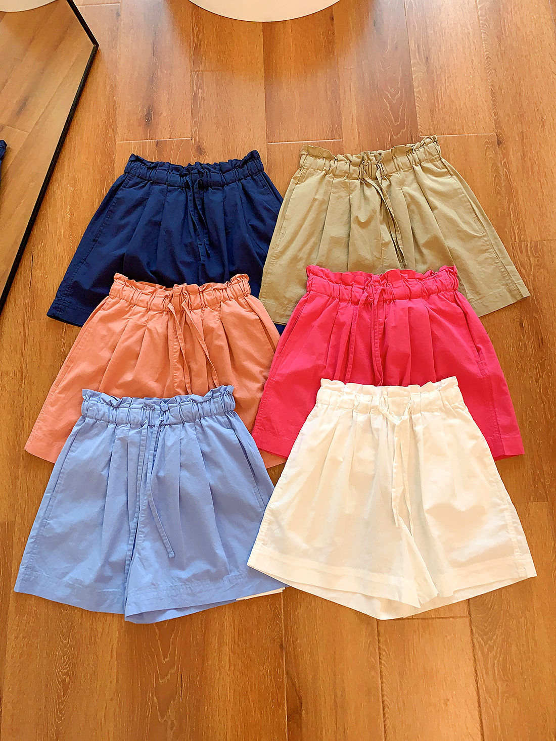 U+式衣間!出品~棉麻花苞腰闊腿短褲女夏百搭鬆緊腰a字休閒中褲