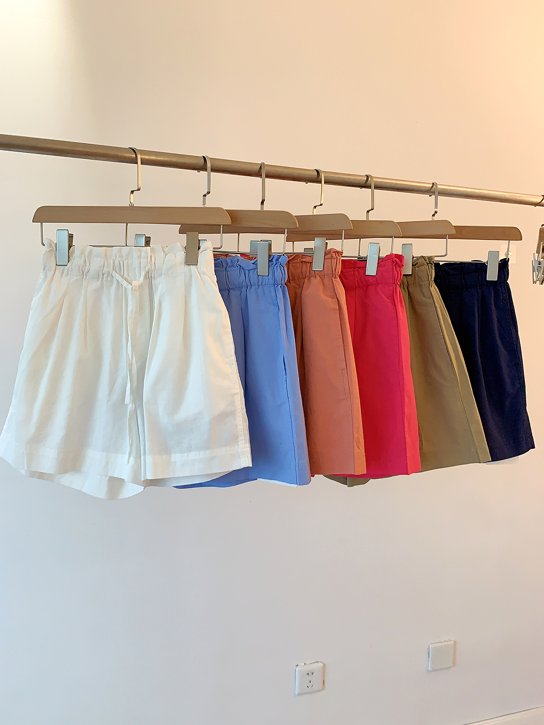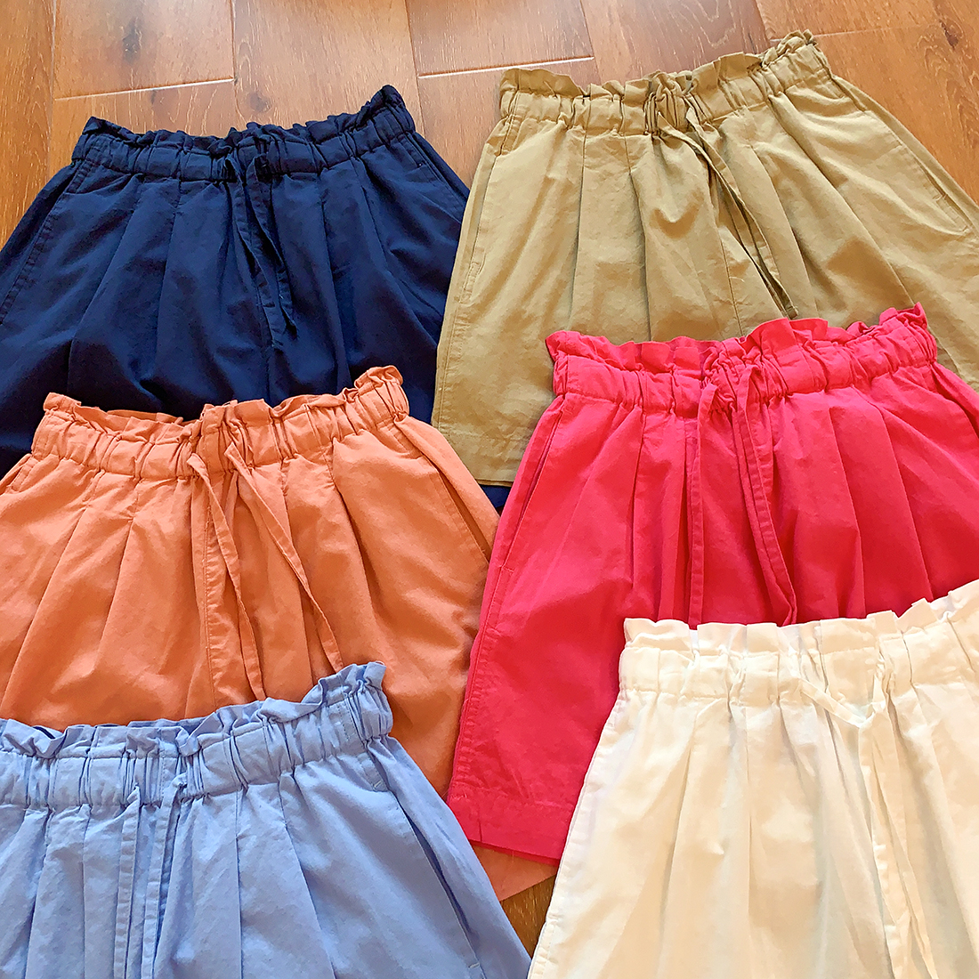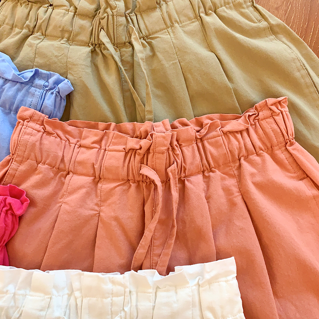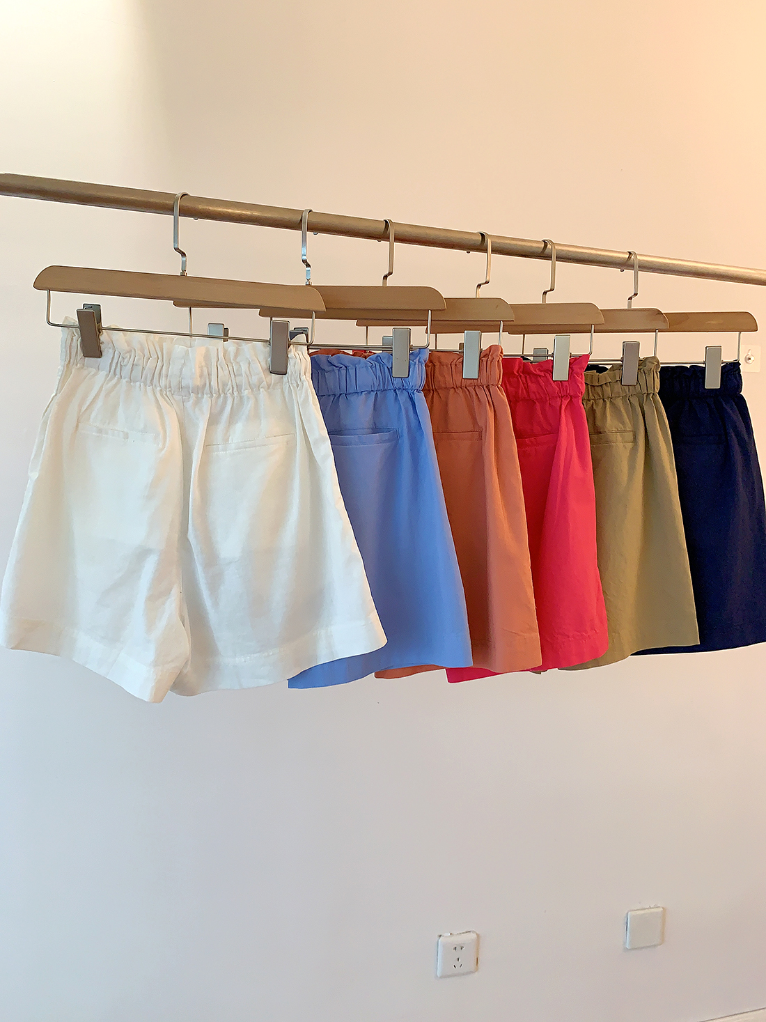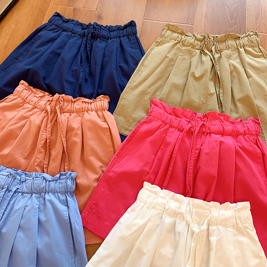 U+式衣間!出品~棉麻花苞腰闊腿短褲女夏百搭鬆緊腰a字休閒中褲