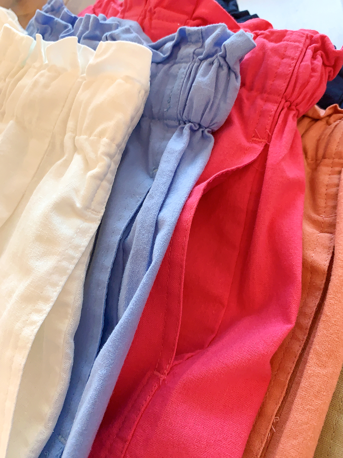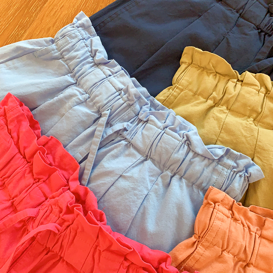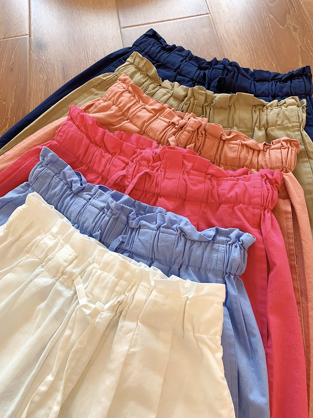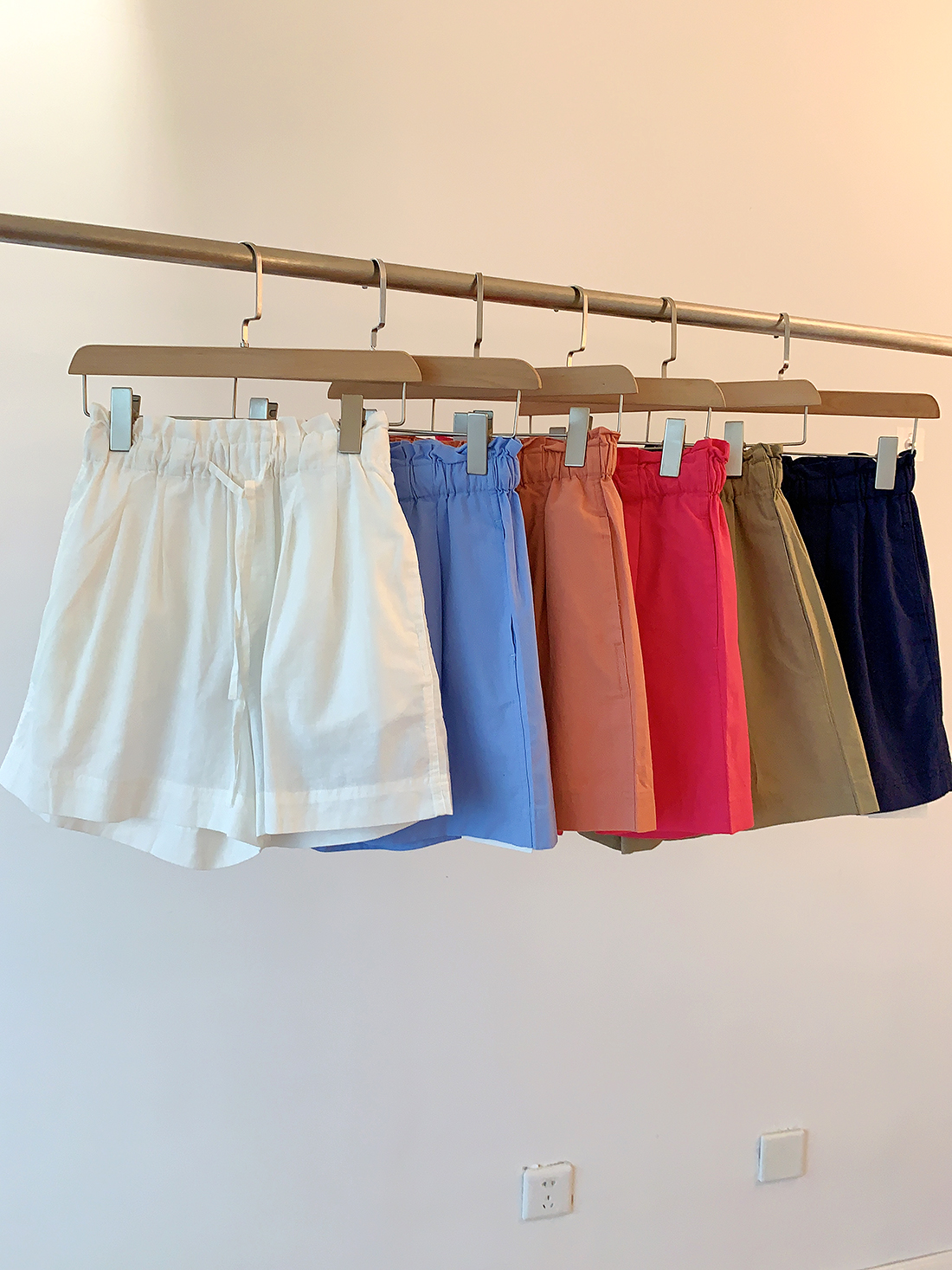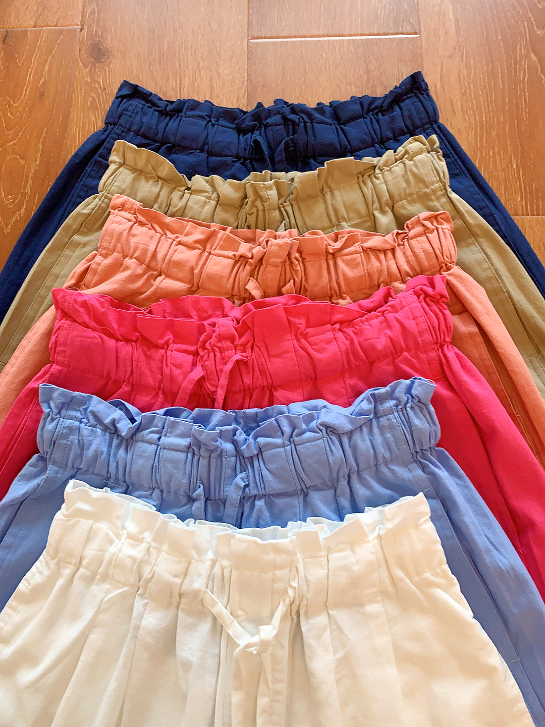 U+式衣間!出品~棉麻花苞腰闊腿短褲女夏百搭鬆緊腰a字休閒中褲