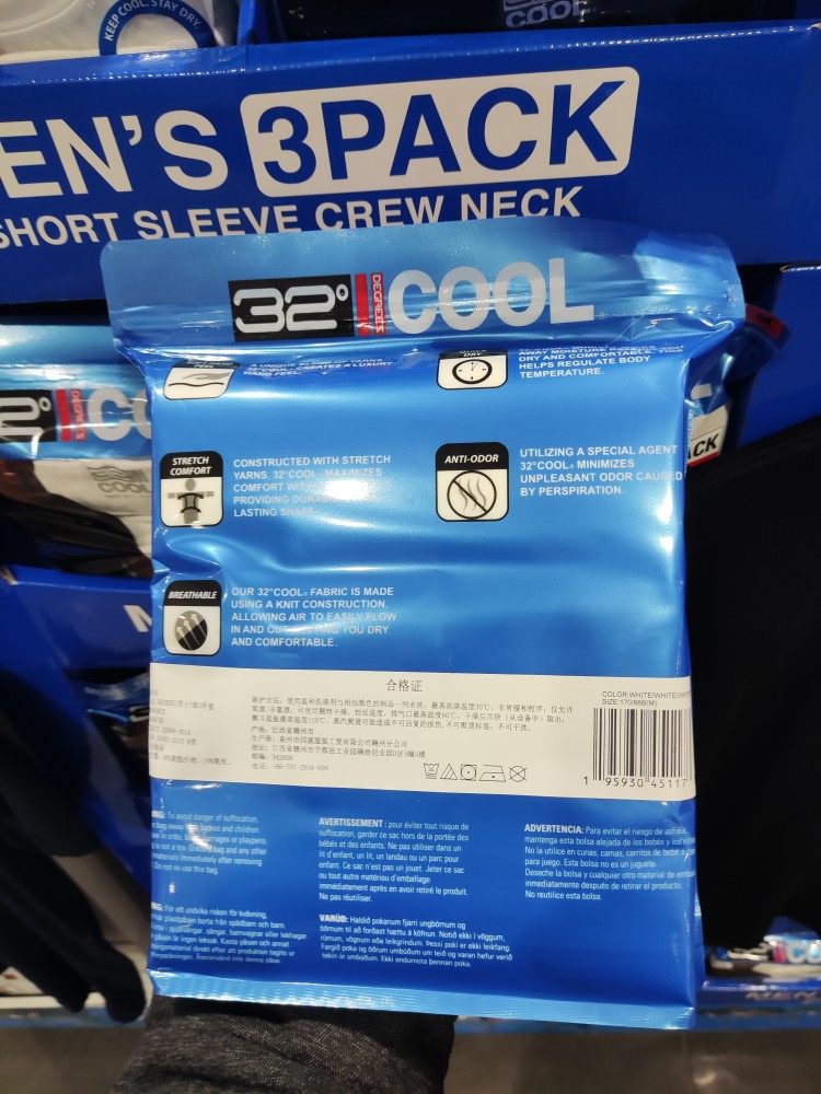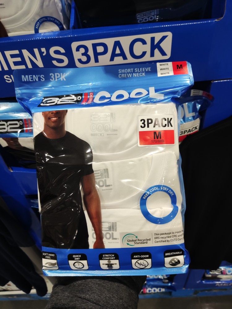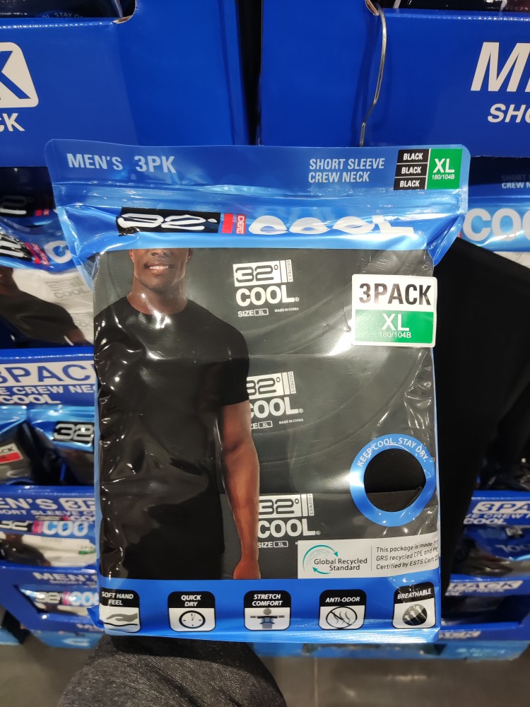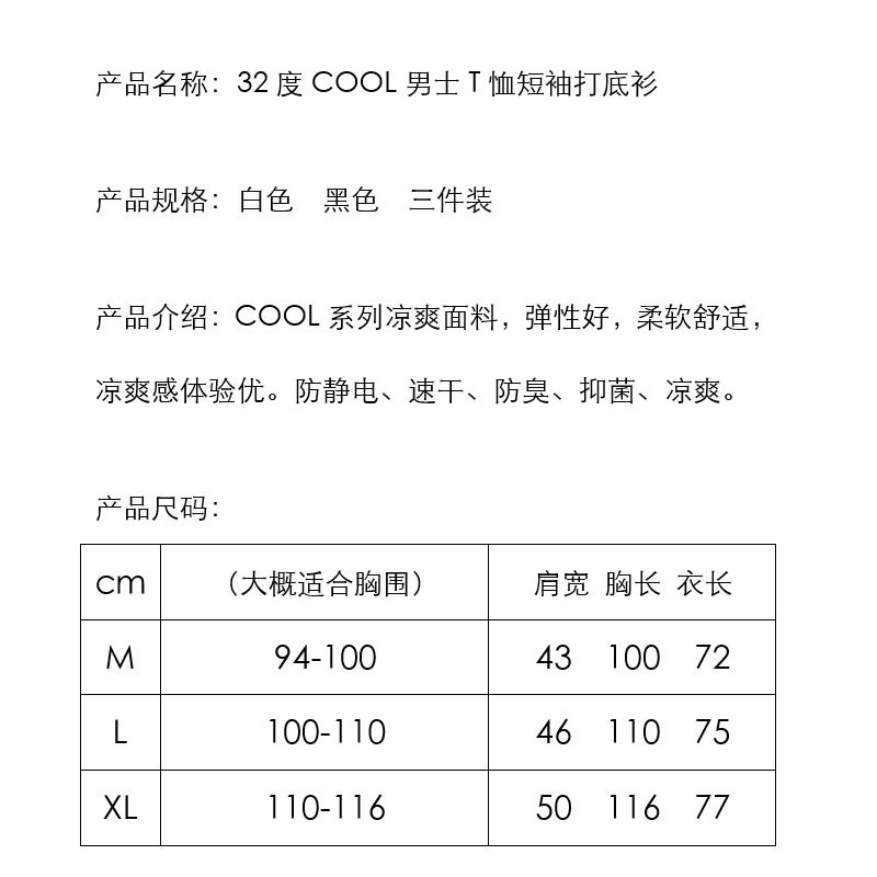 32度COOL男士透氣T恤3件快乾清涼彈力修身圓領短袖32D 上海costco