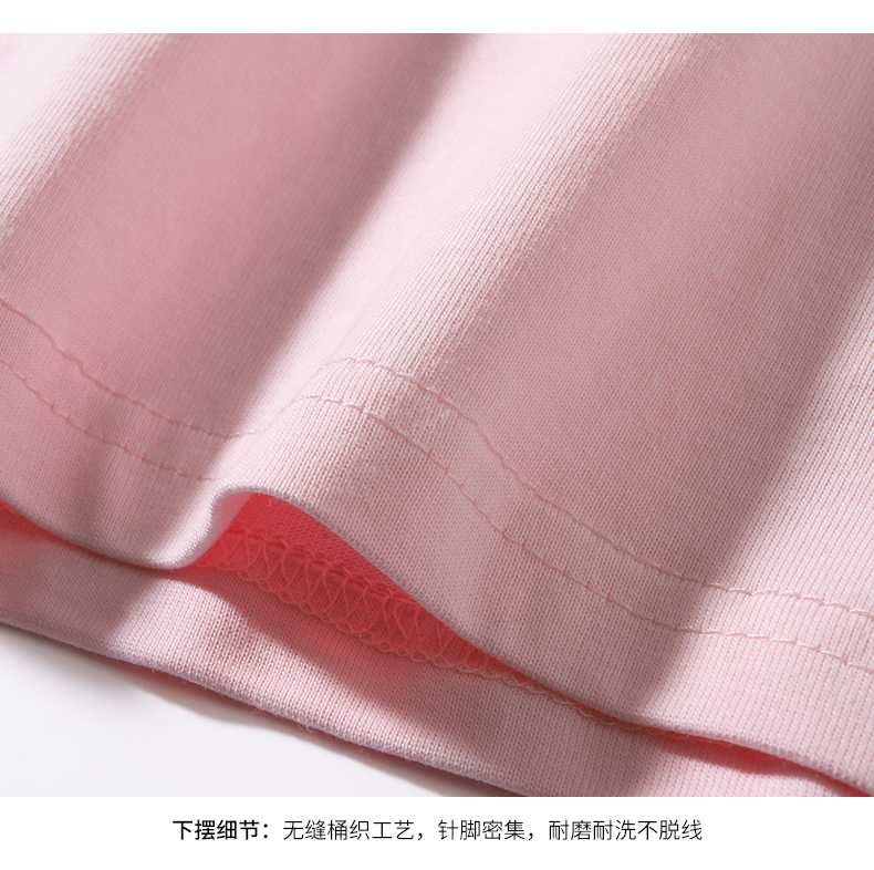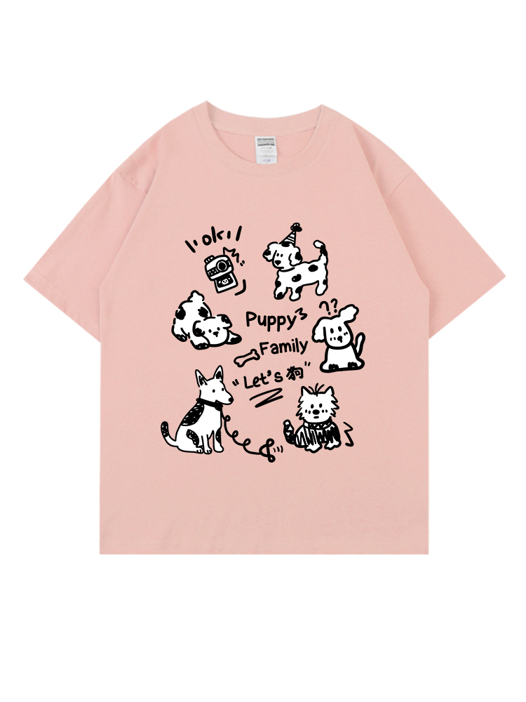 high rain 卡通狗狗家族落肩短袖男女粉色T恤休閒寬鬆情侶上衣夏