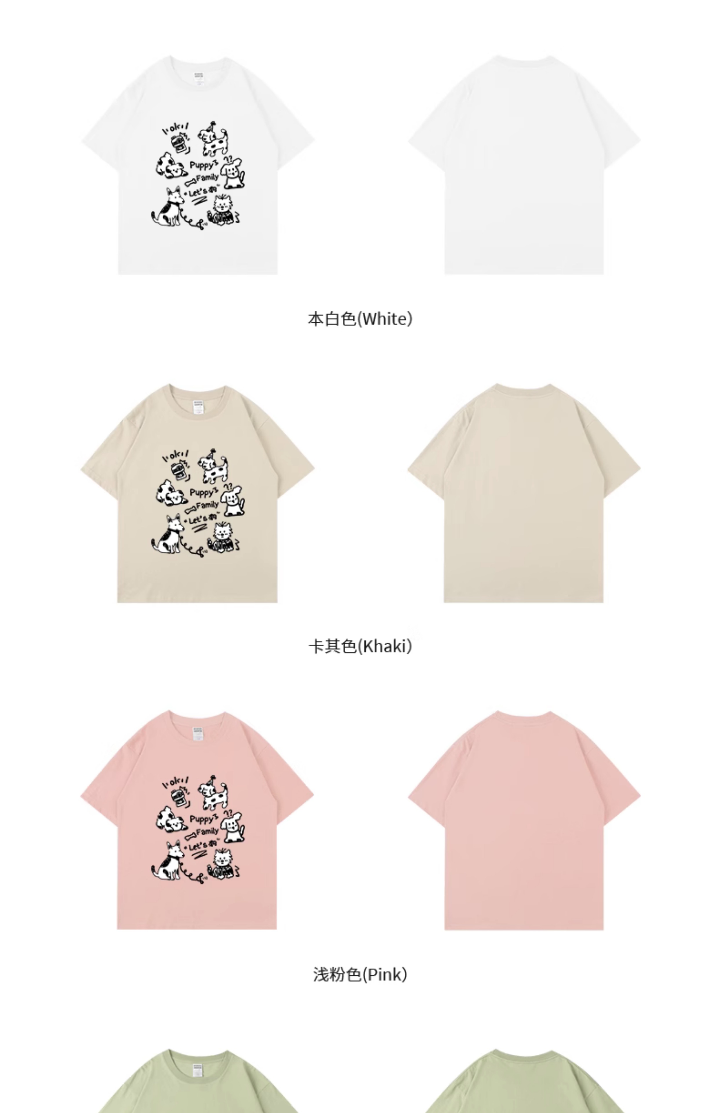 主要顏色 240g純棉-淺粉,240g純棉-白色,240g純棉-暗夜灰,240g純棉-卡其,240g純棉-霧霾藍,240g純棉-淺棕,240g純棉-淺綠,240g純棉-淺黃,240g純棉-奶粉
