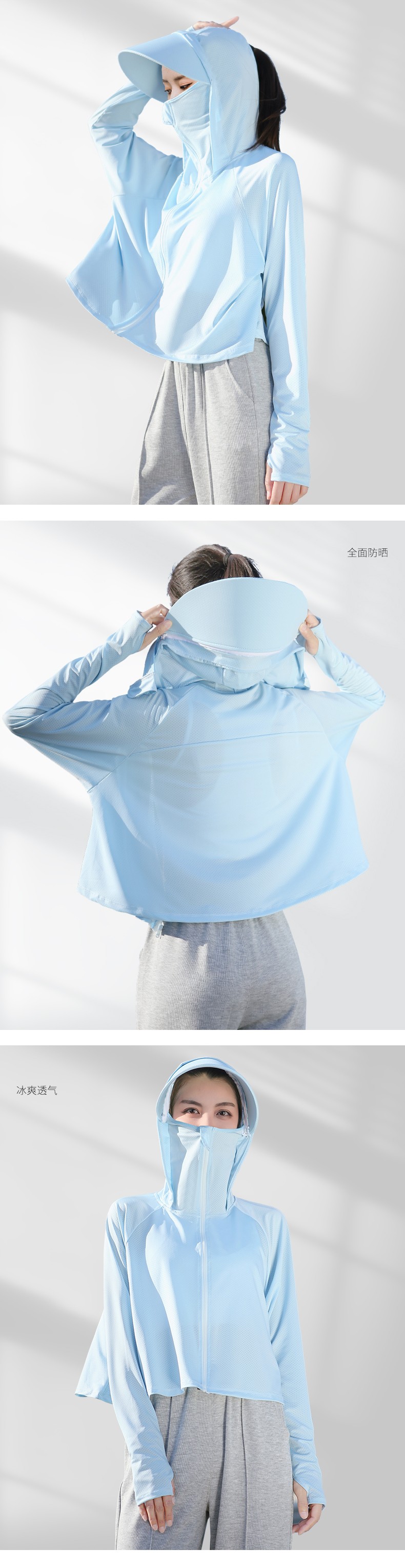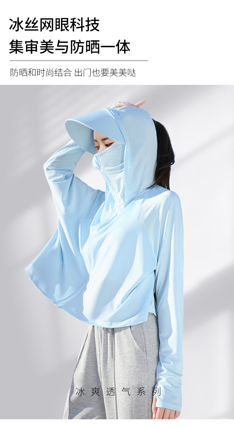 焦下冰絲防曬衣服遮陽面罩夏季裝備衣帽一體女騎行電動車護臉透氣
