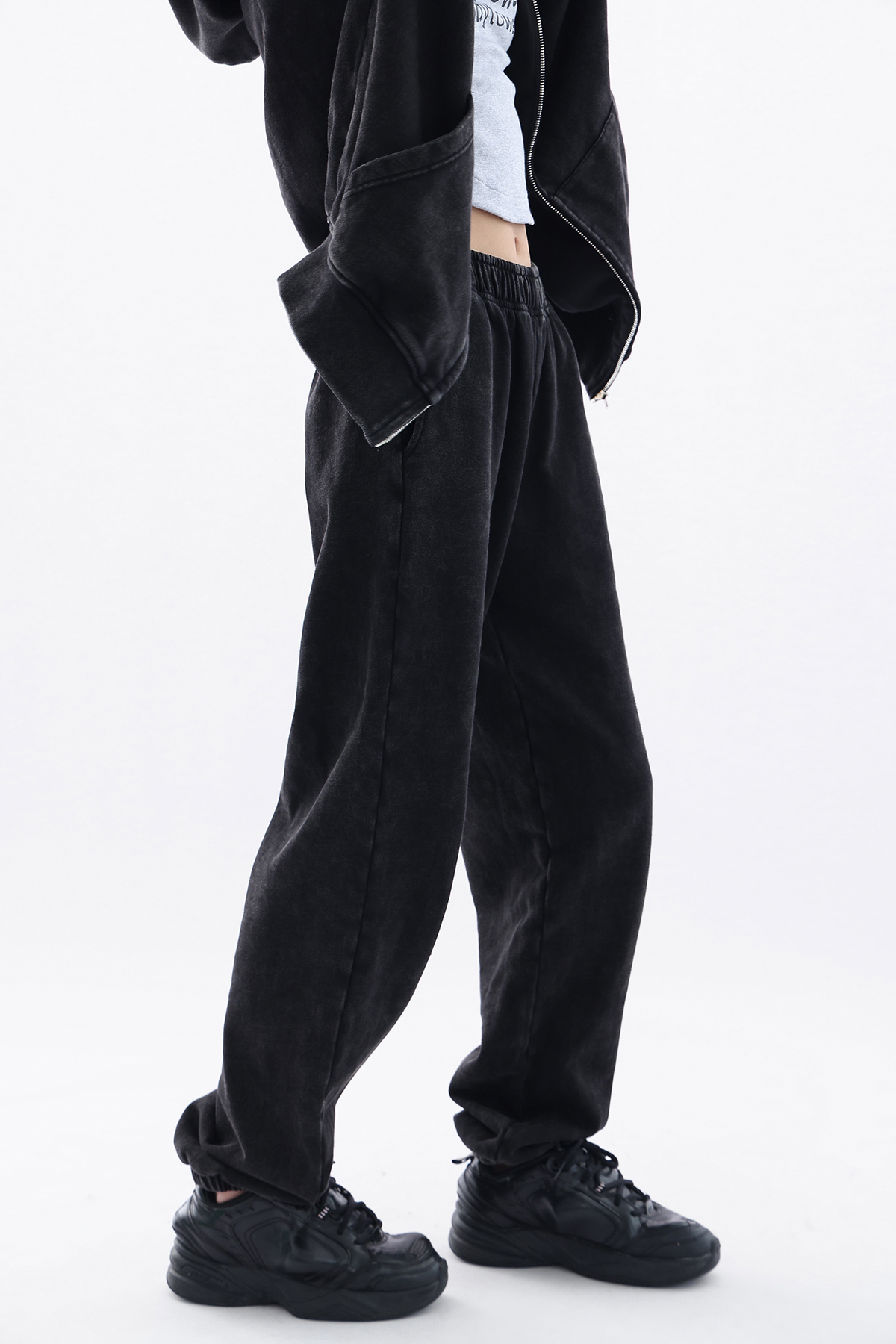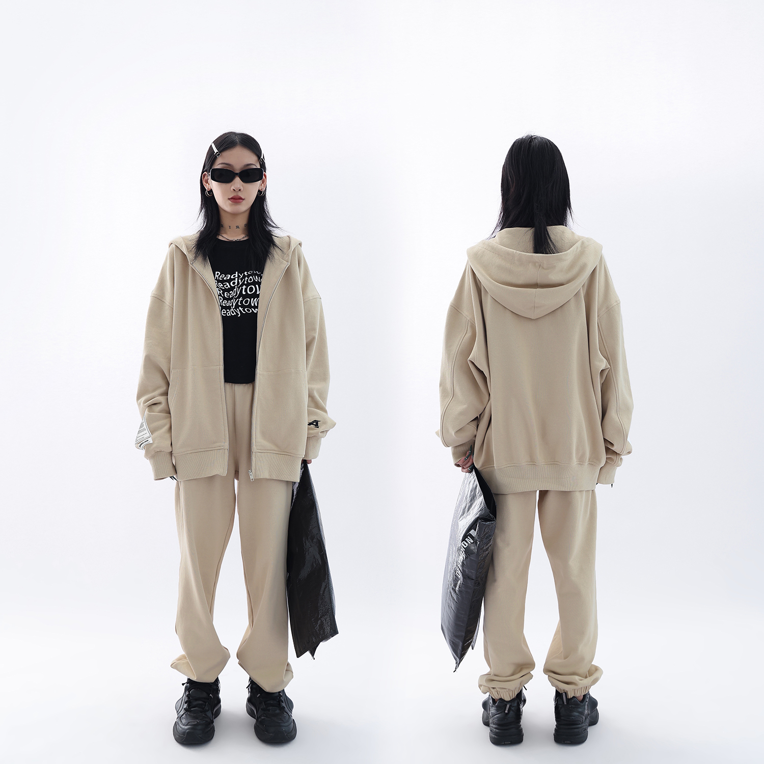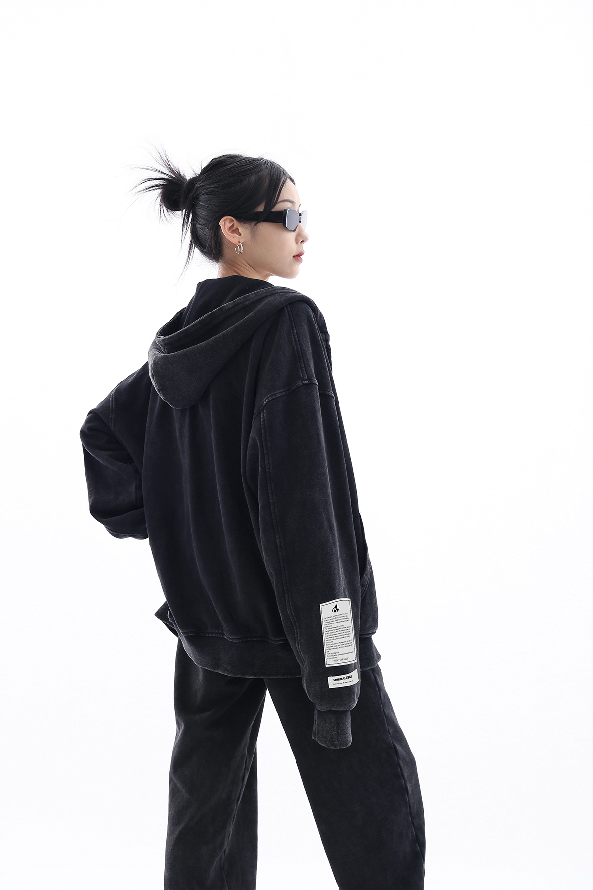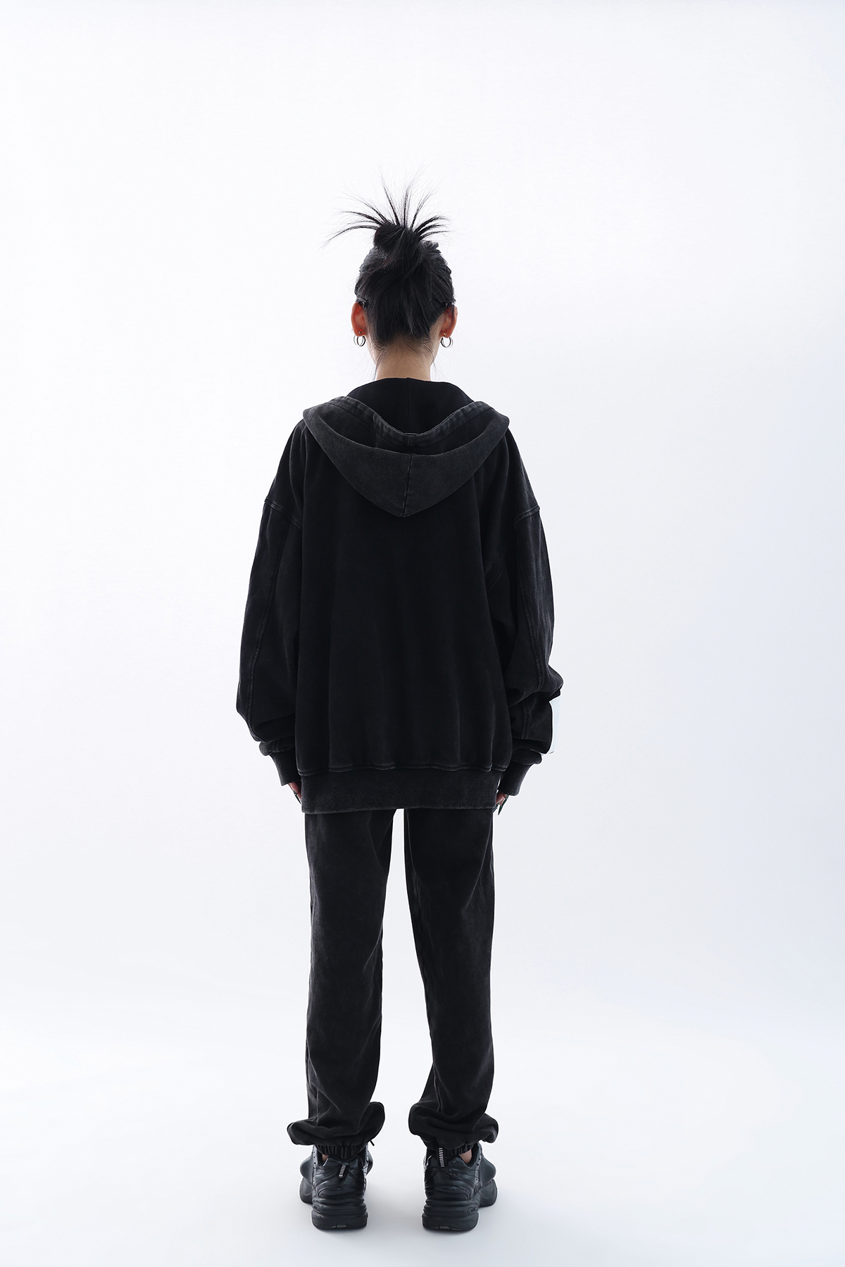 Acestudios 洗水炒色黑色開衫厚棉T+衛褲2件套女2023秋季新款套裝