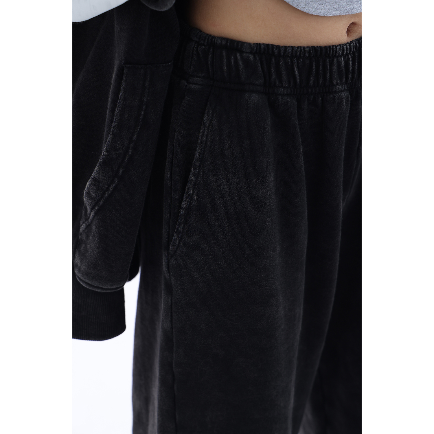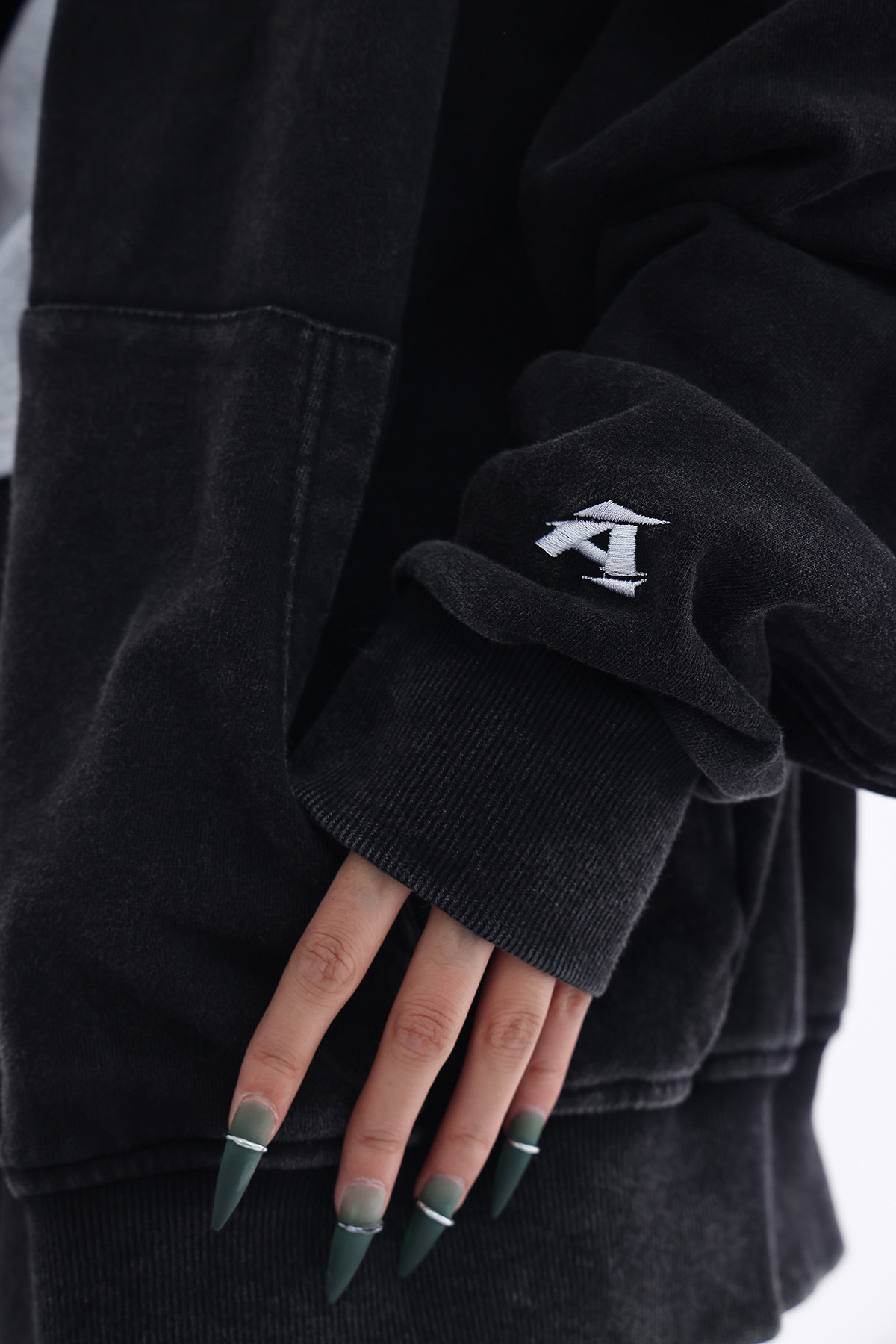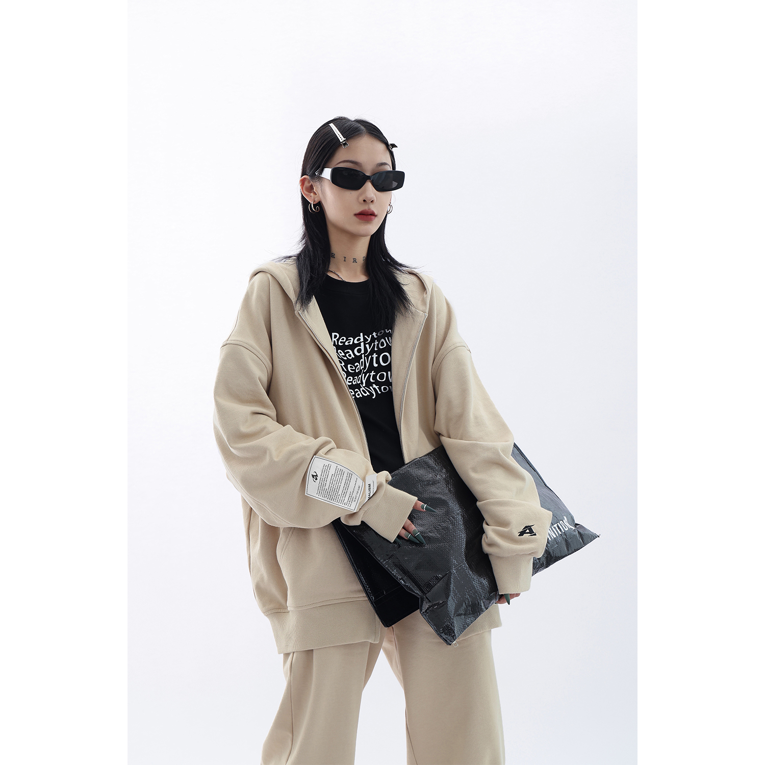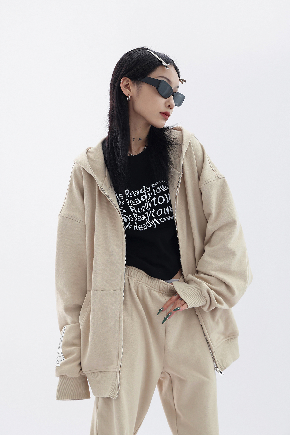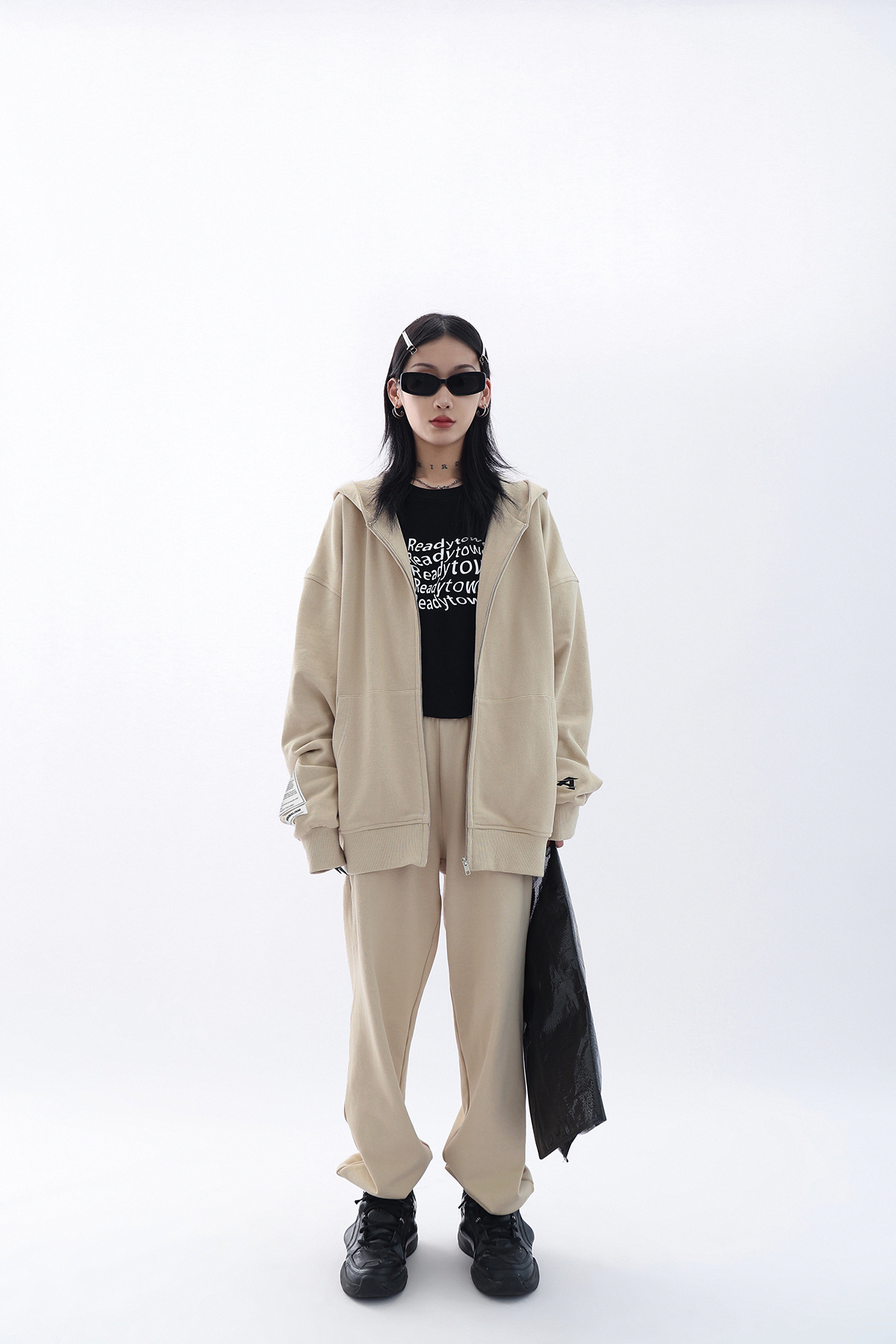 Acestudios 洗水炒色黑色開衫厚棉T+衛褲2件套女2023秋季新款套裝