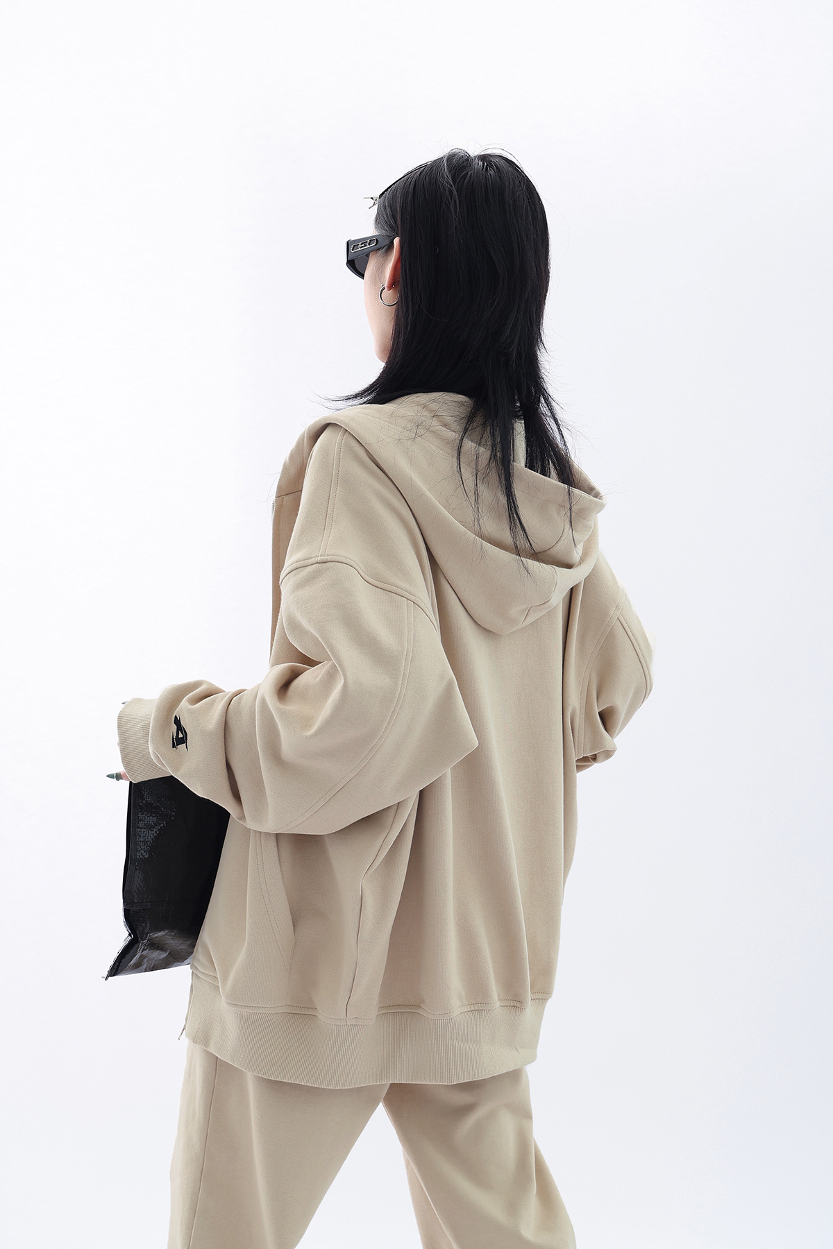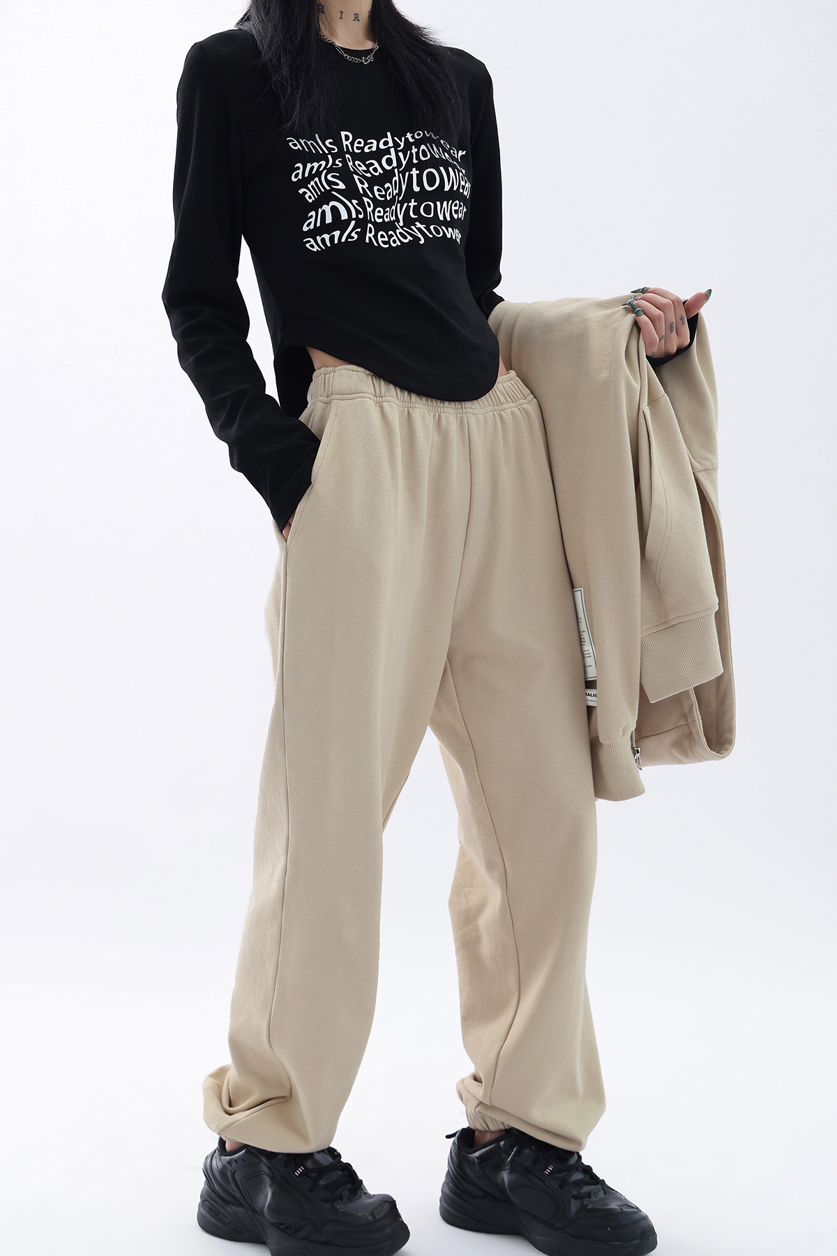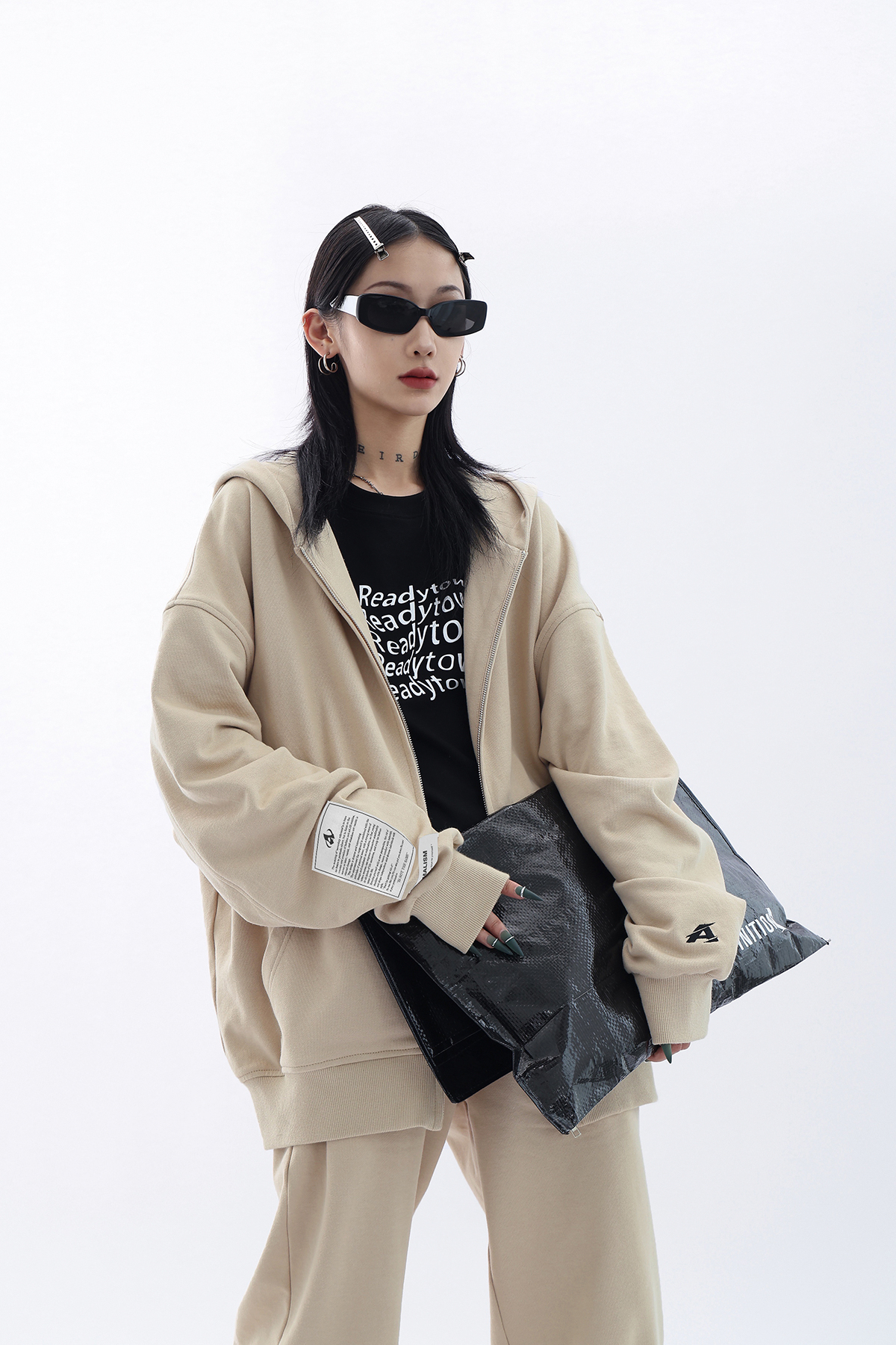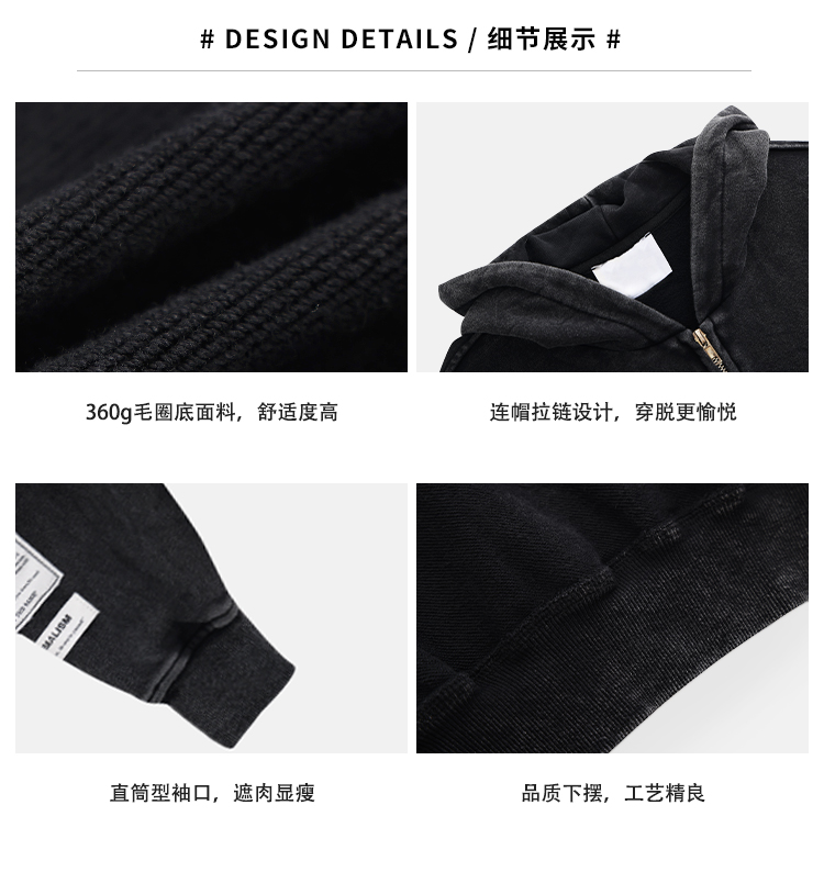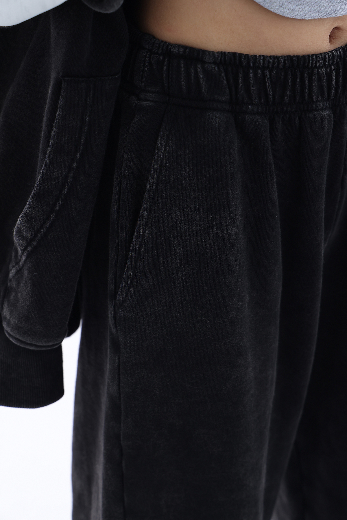 Acestudios 洗水炒色黑色開衫厚棉T+衛褲2件套女2023秋季新款套裝