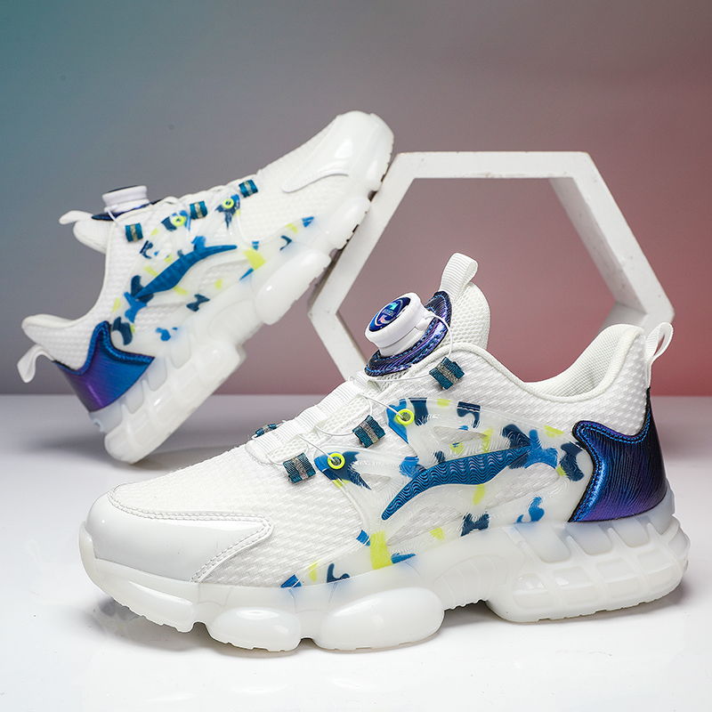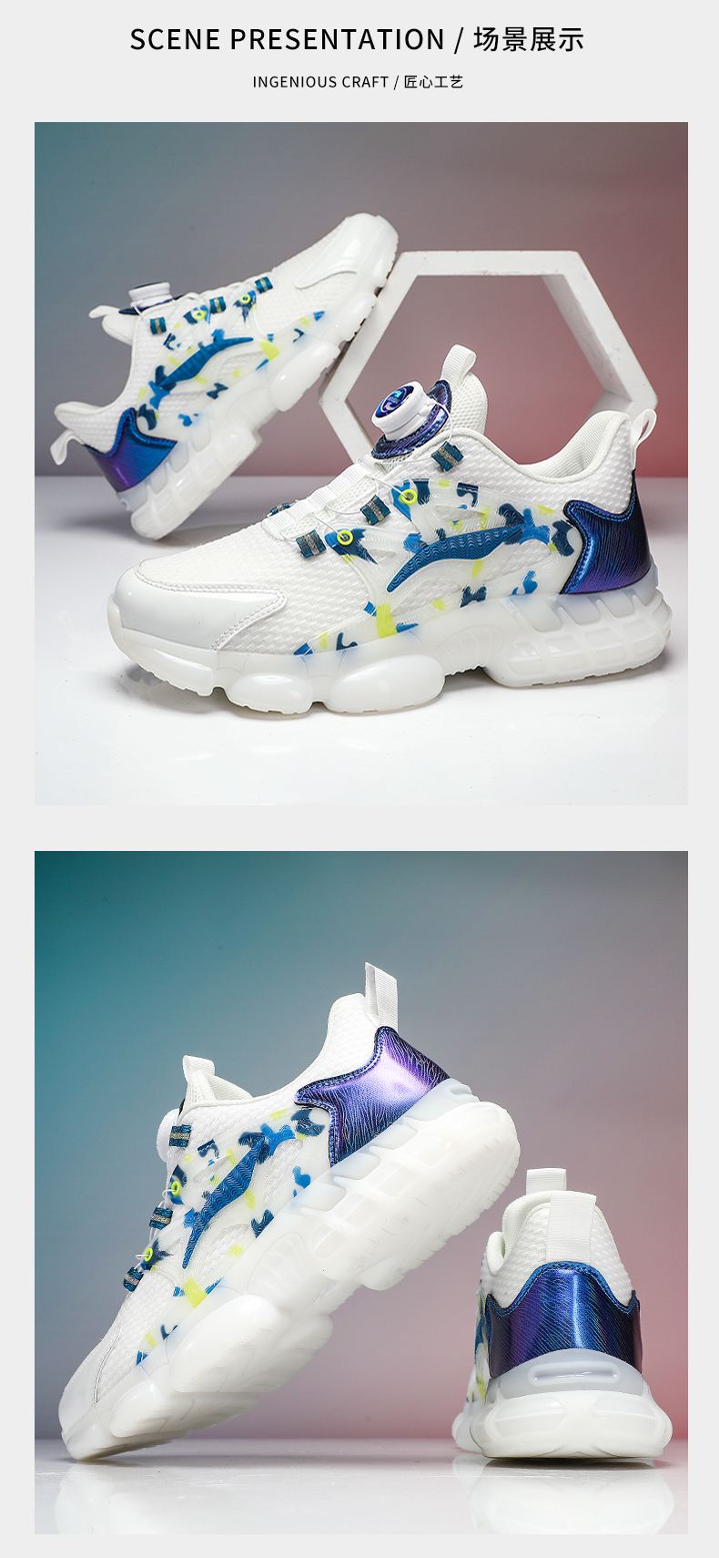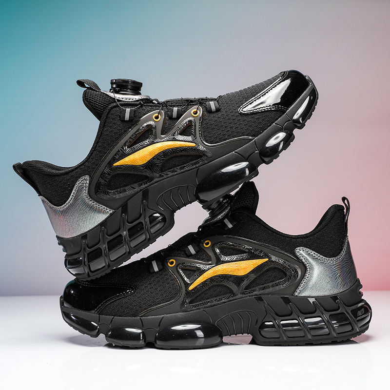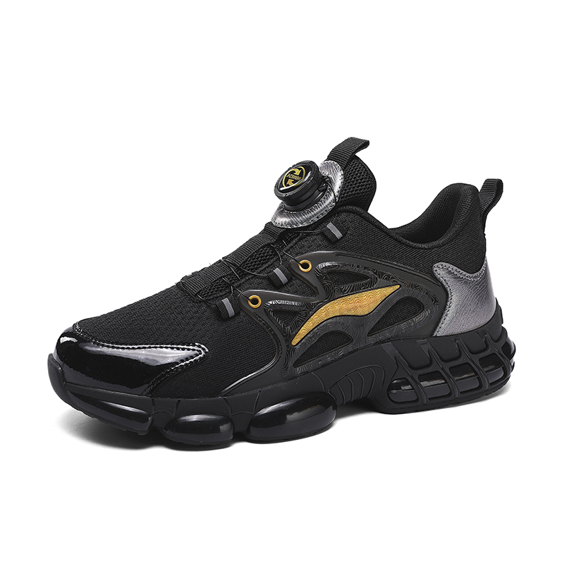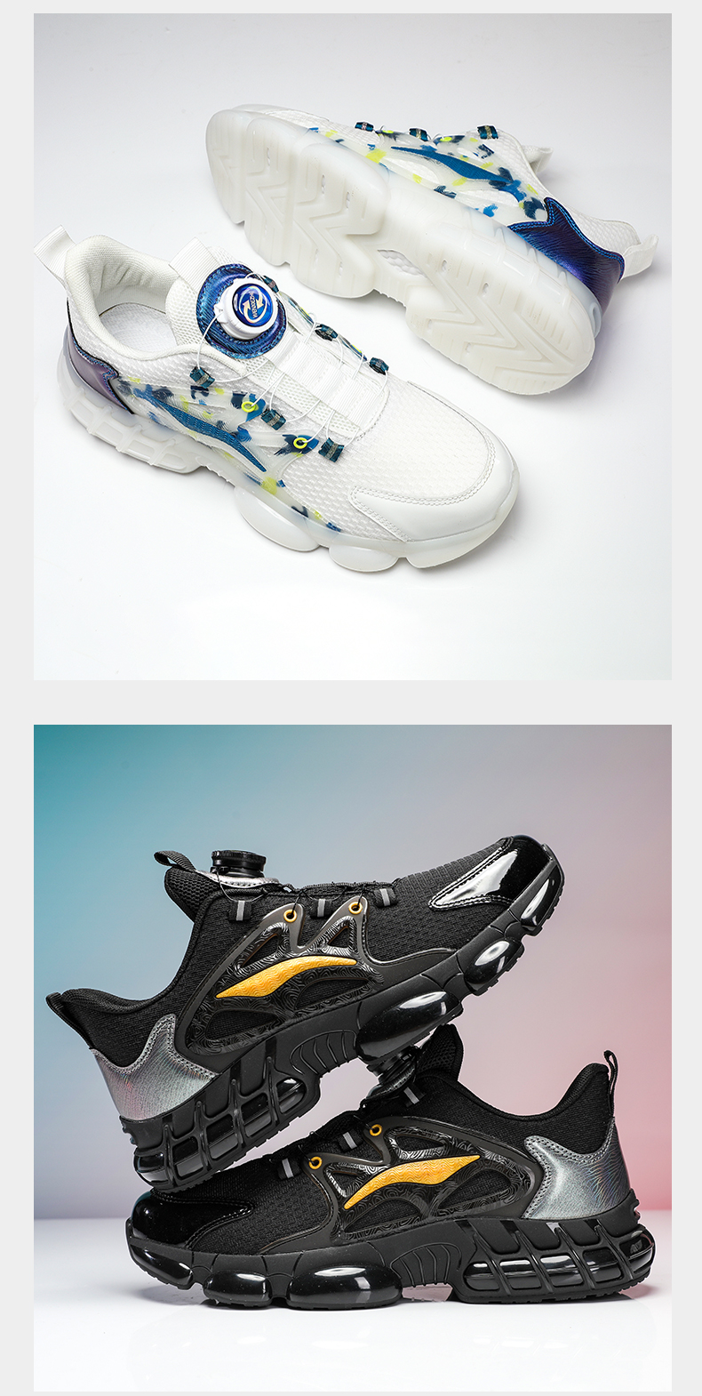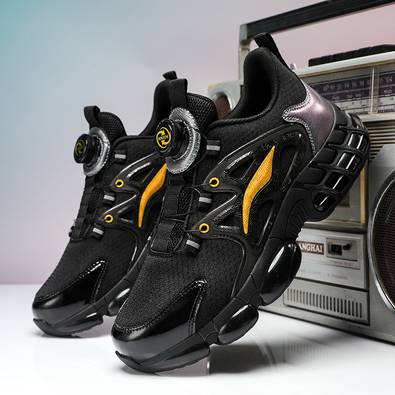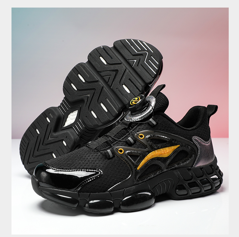 夏季潮牌男鞋網面透氣運動鞋男旋轉鈕釦免系鞋帶軟底百搭跑步鞋男