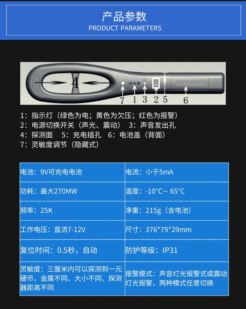 产品特点:方便携带、轻巧灵活、检测灵敏、多种频率可选