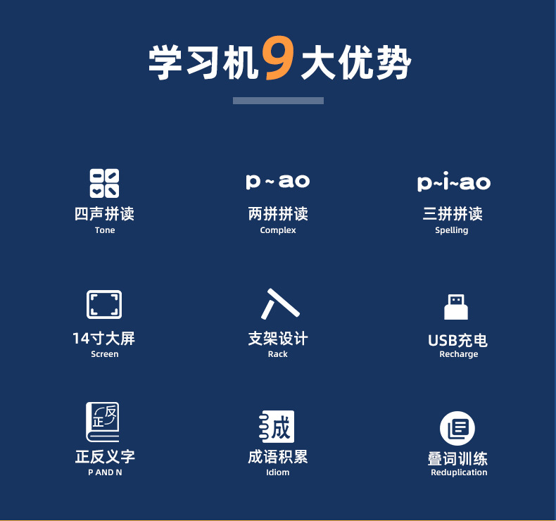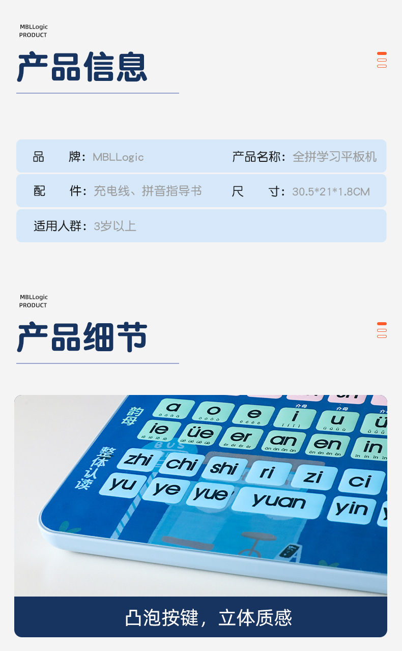 猫贝乐儿童拼音学习机 自由拼读一年级早教机 拼音平板学习机批发