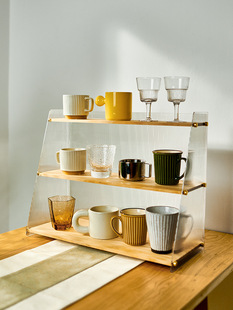 亚克力杯架置物架水吧台面水杯茶杯架咖啡杯桌面收纳展示柜实木