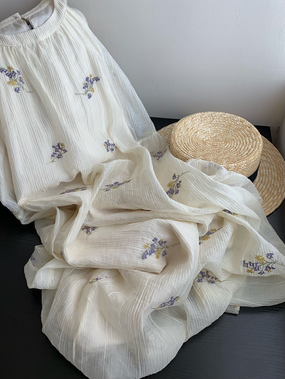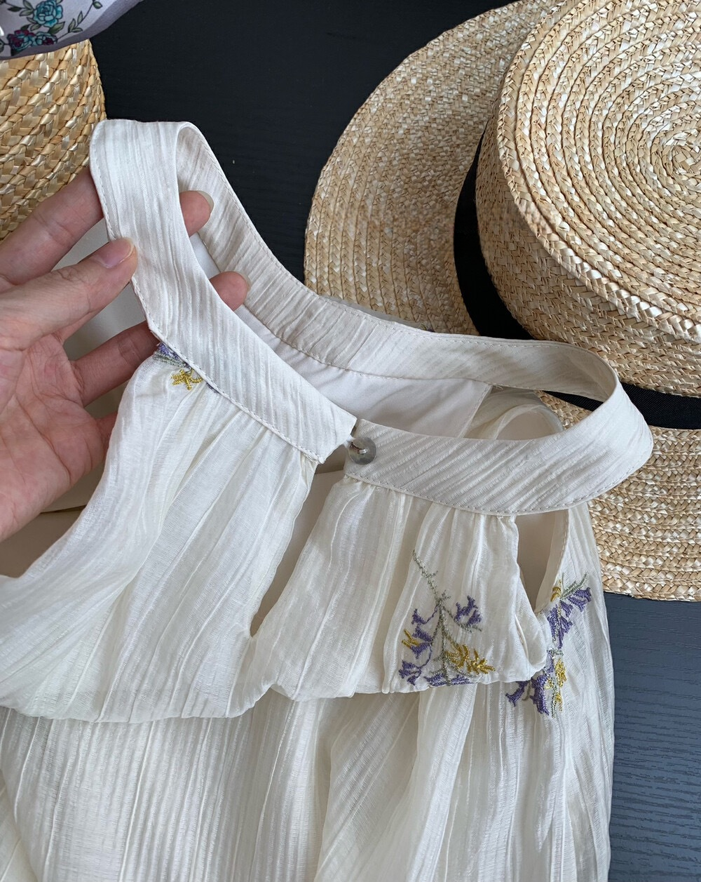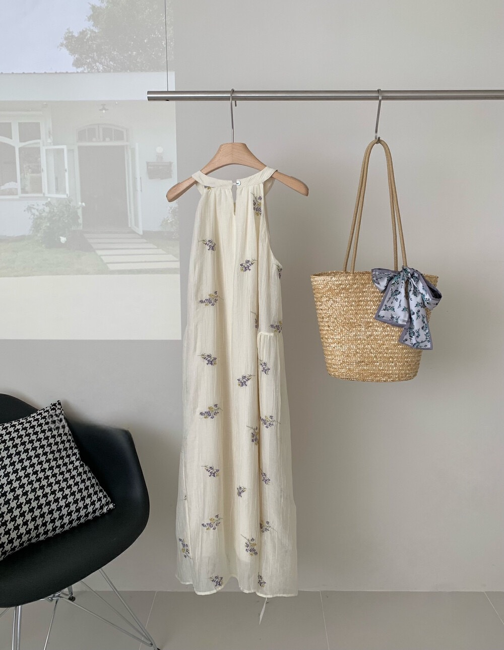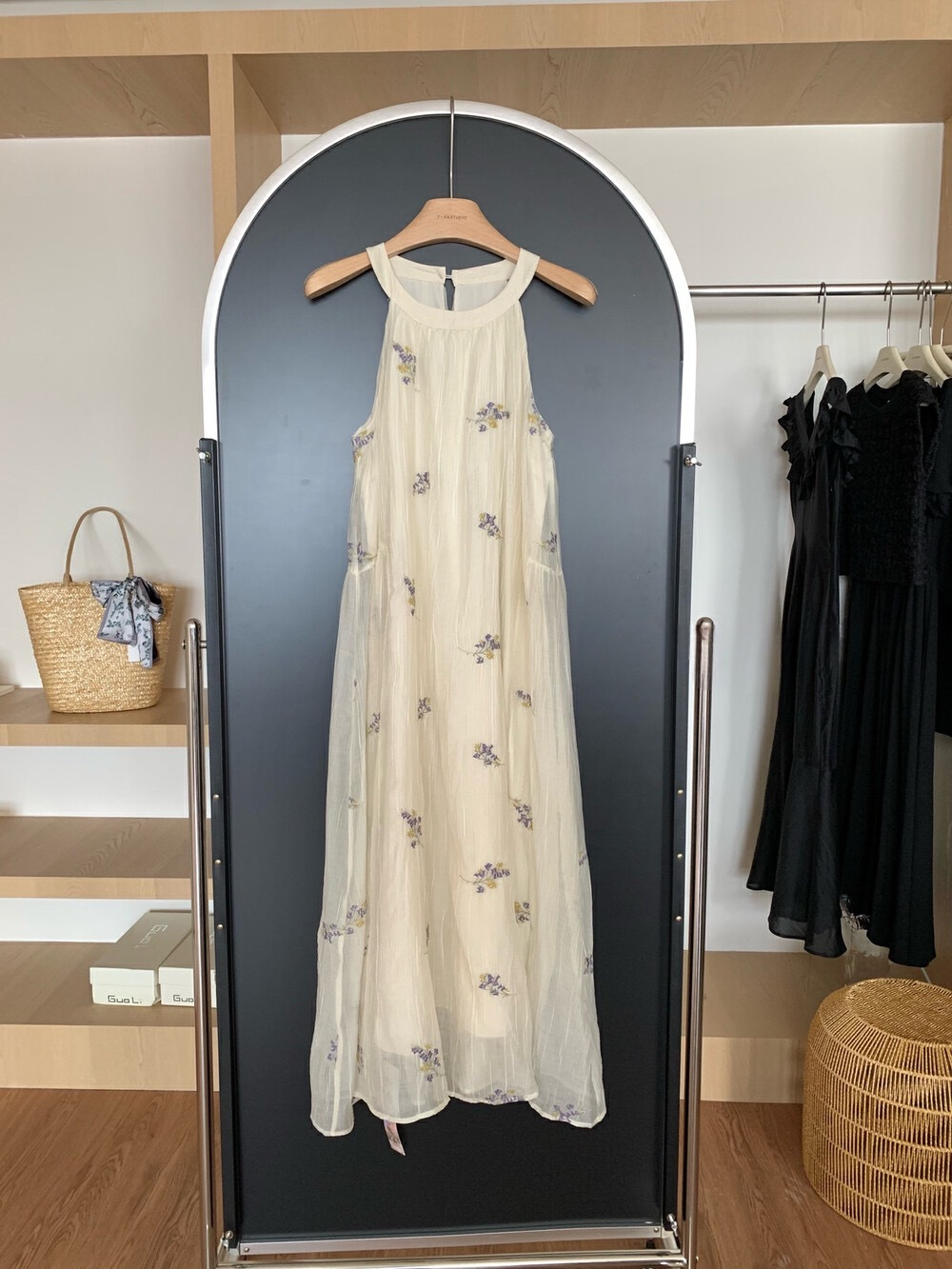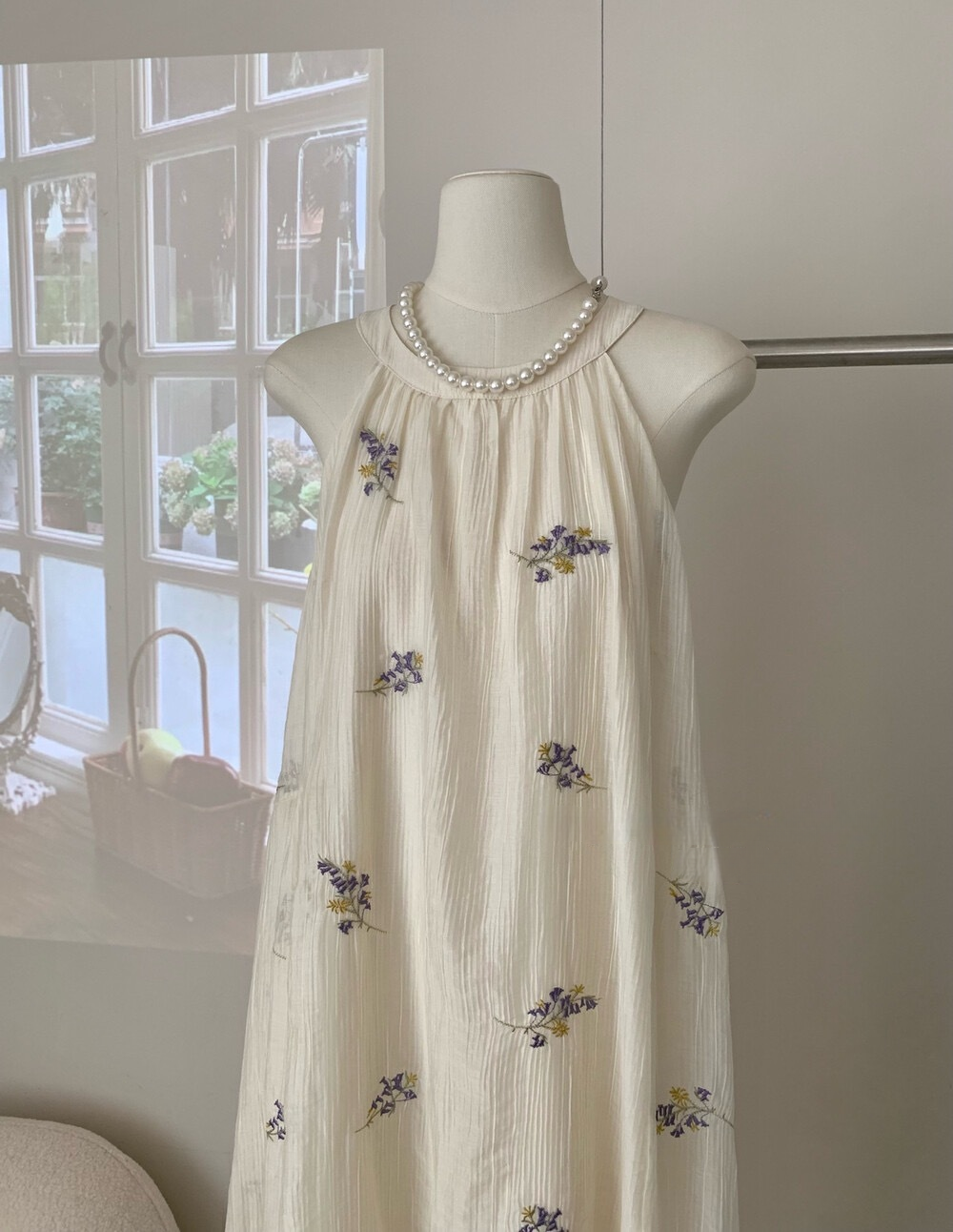 宛宛類卿 鈴蘭花刺繡掛頸洋裝女度假海邊無袖長裙
