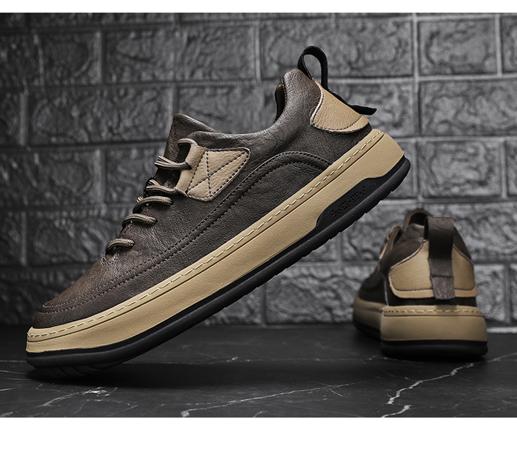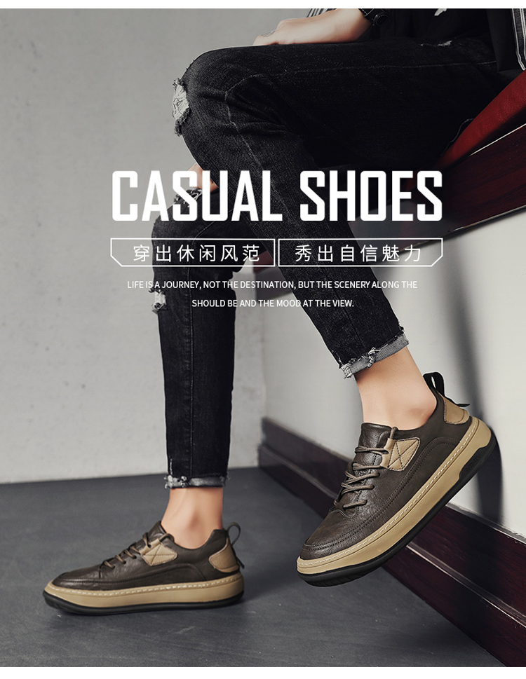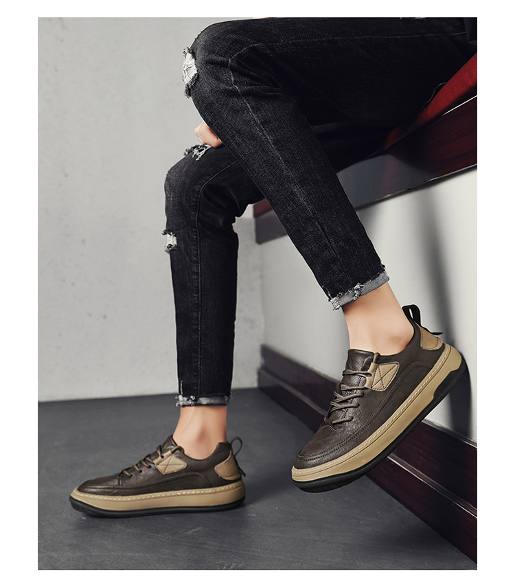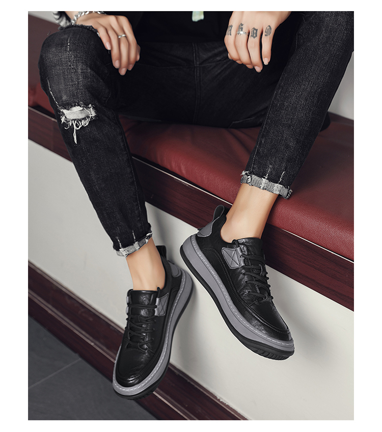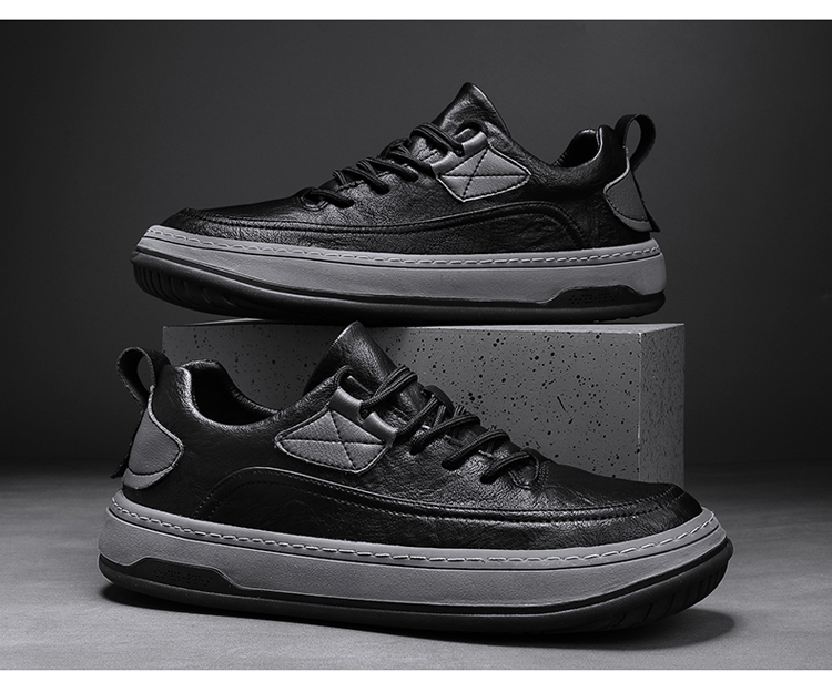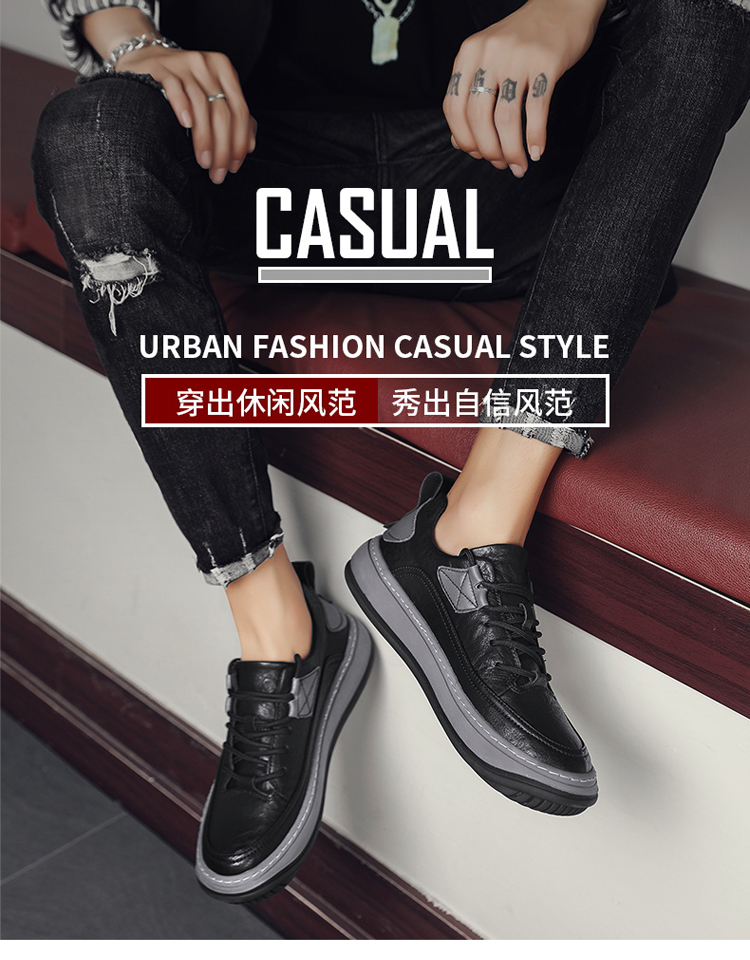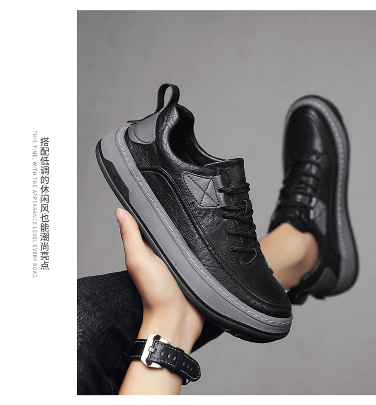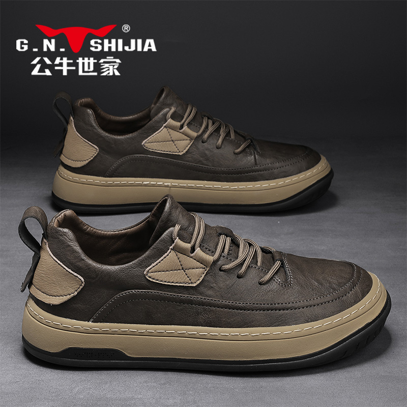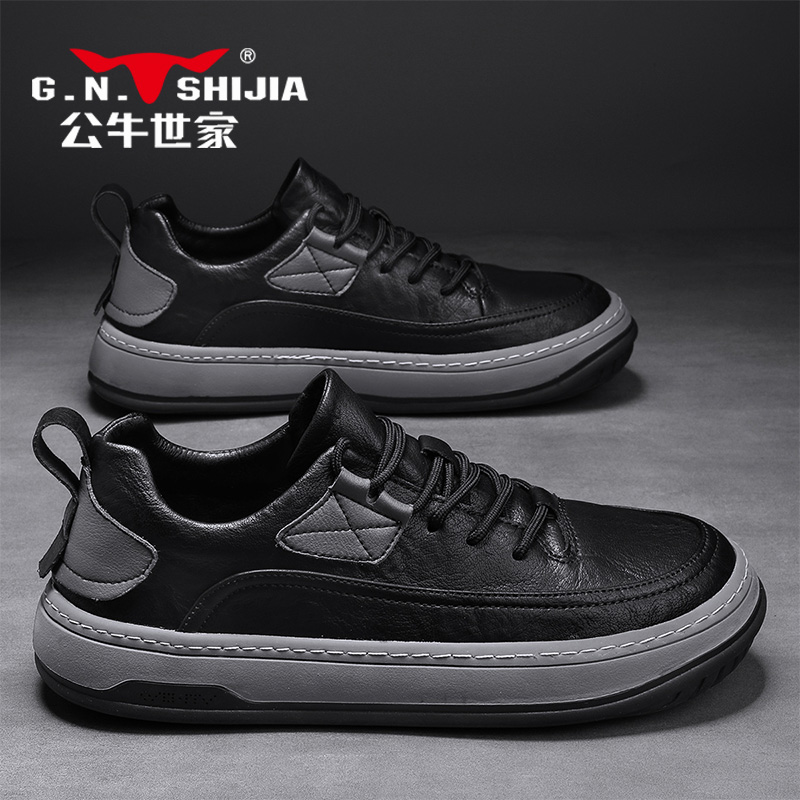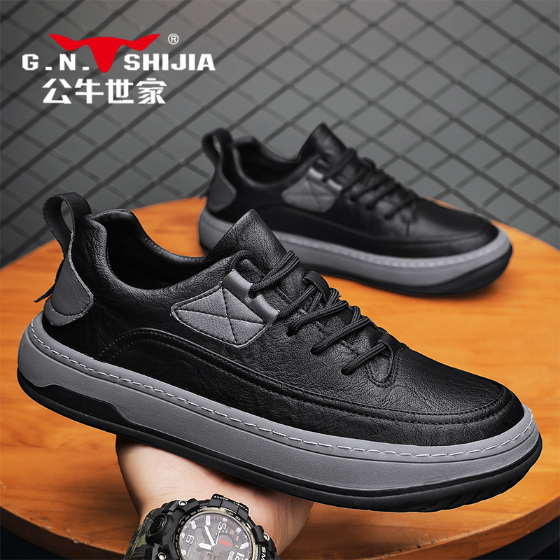 公牛世家男鞋春秋真皮休閒板鞋男款2023新款厚底增高運動男士皮鞋