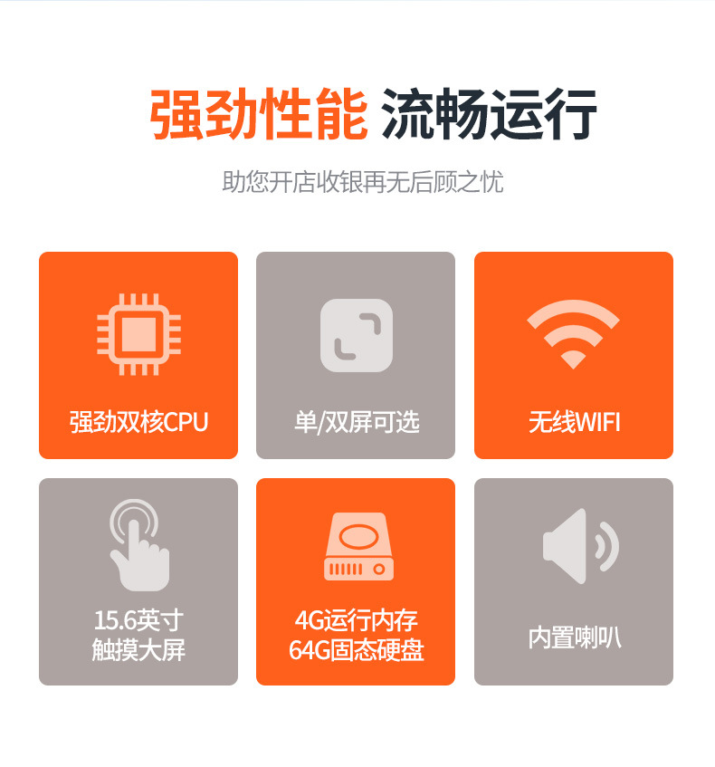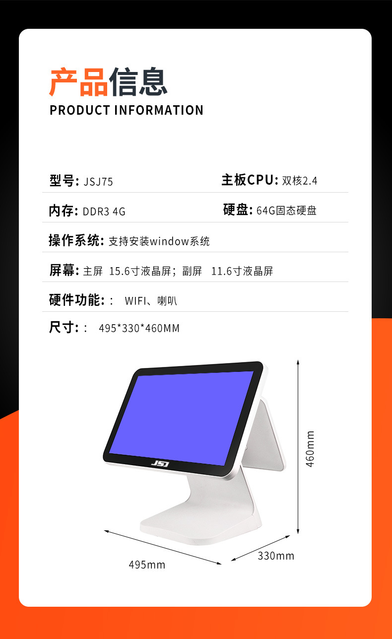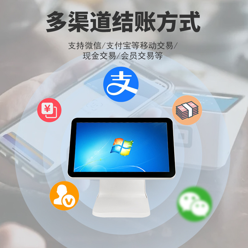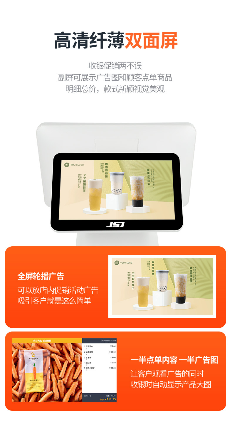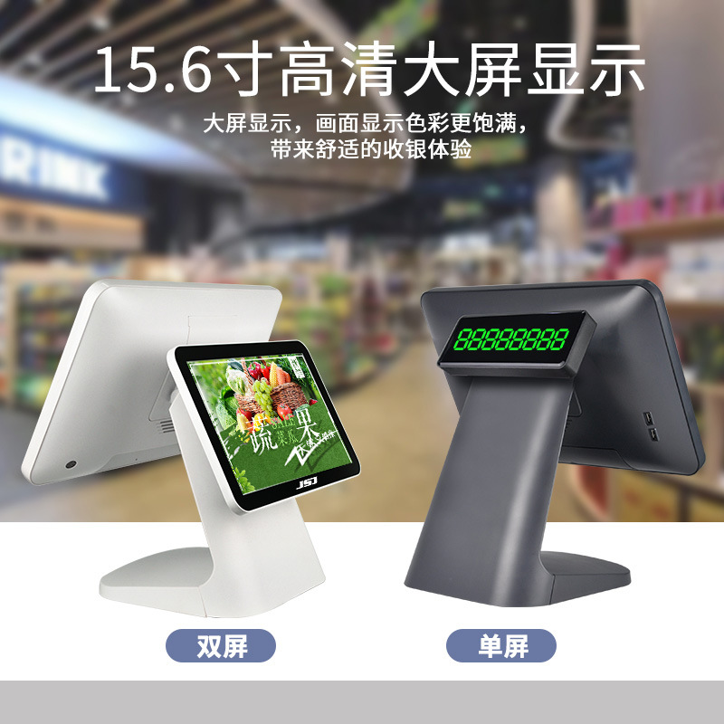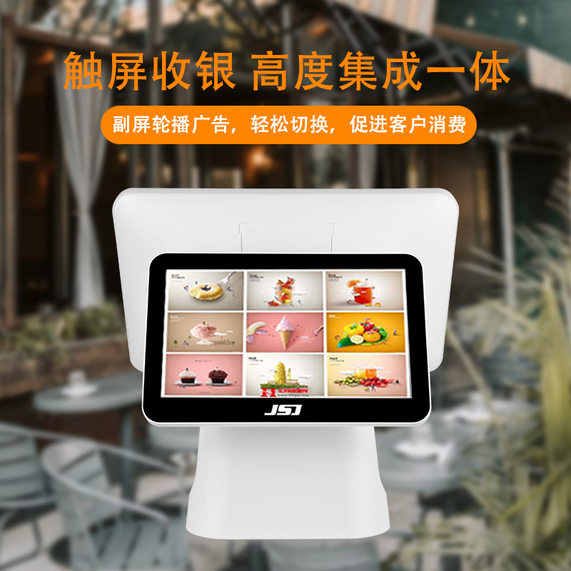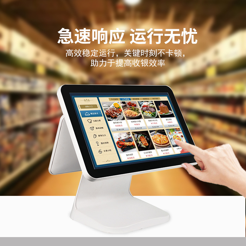 奶茶店餐饮餐厅收银设备收银系统美团英文版双屏智能触摸屏收银机
